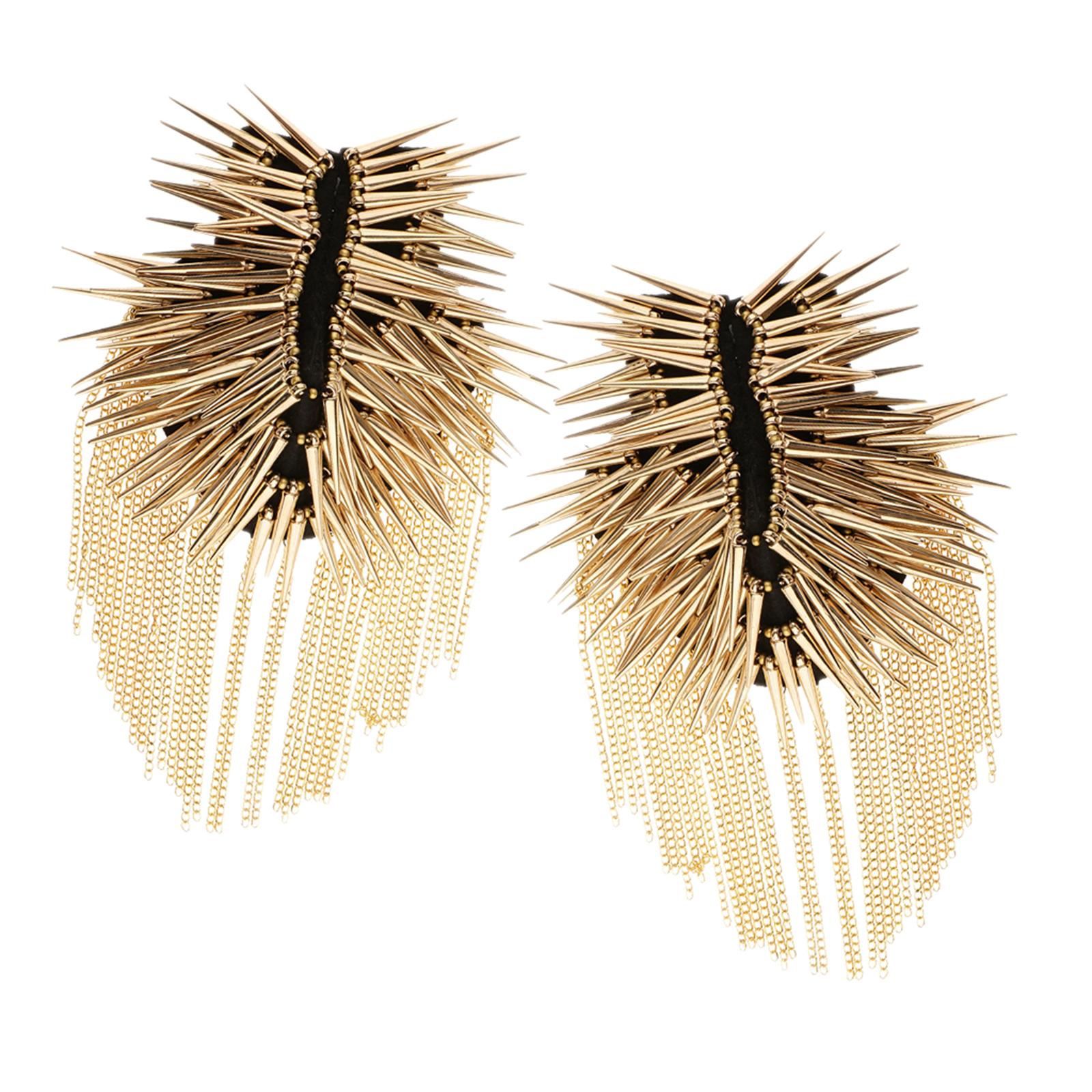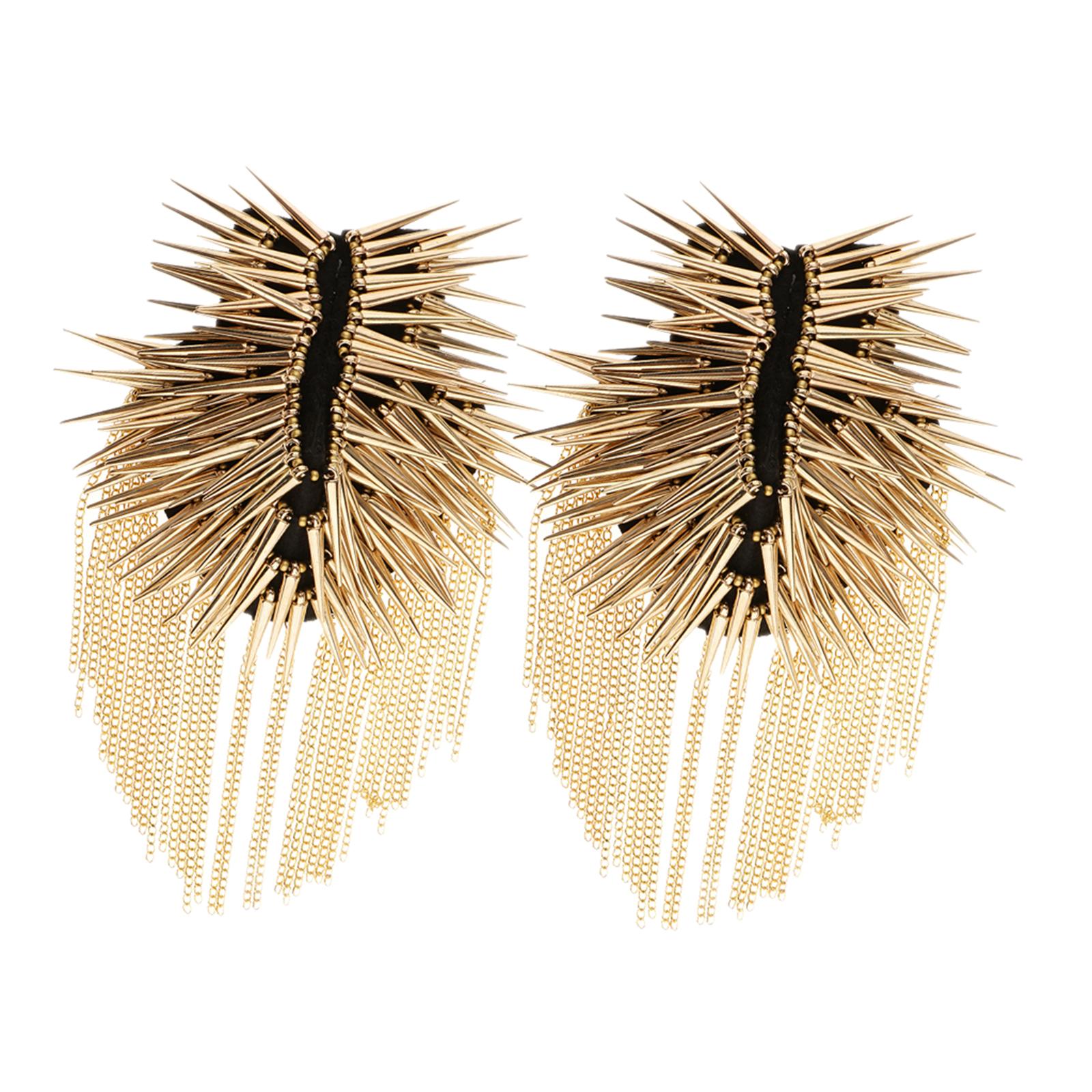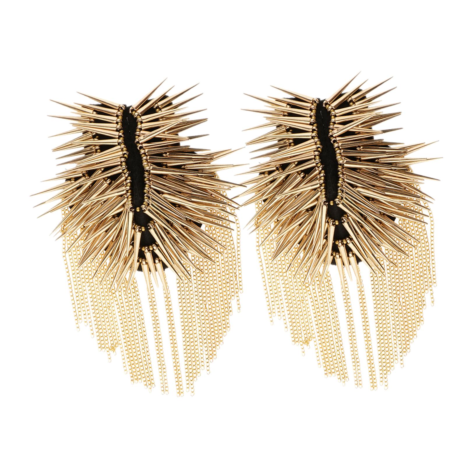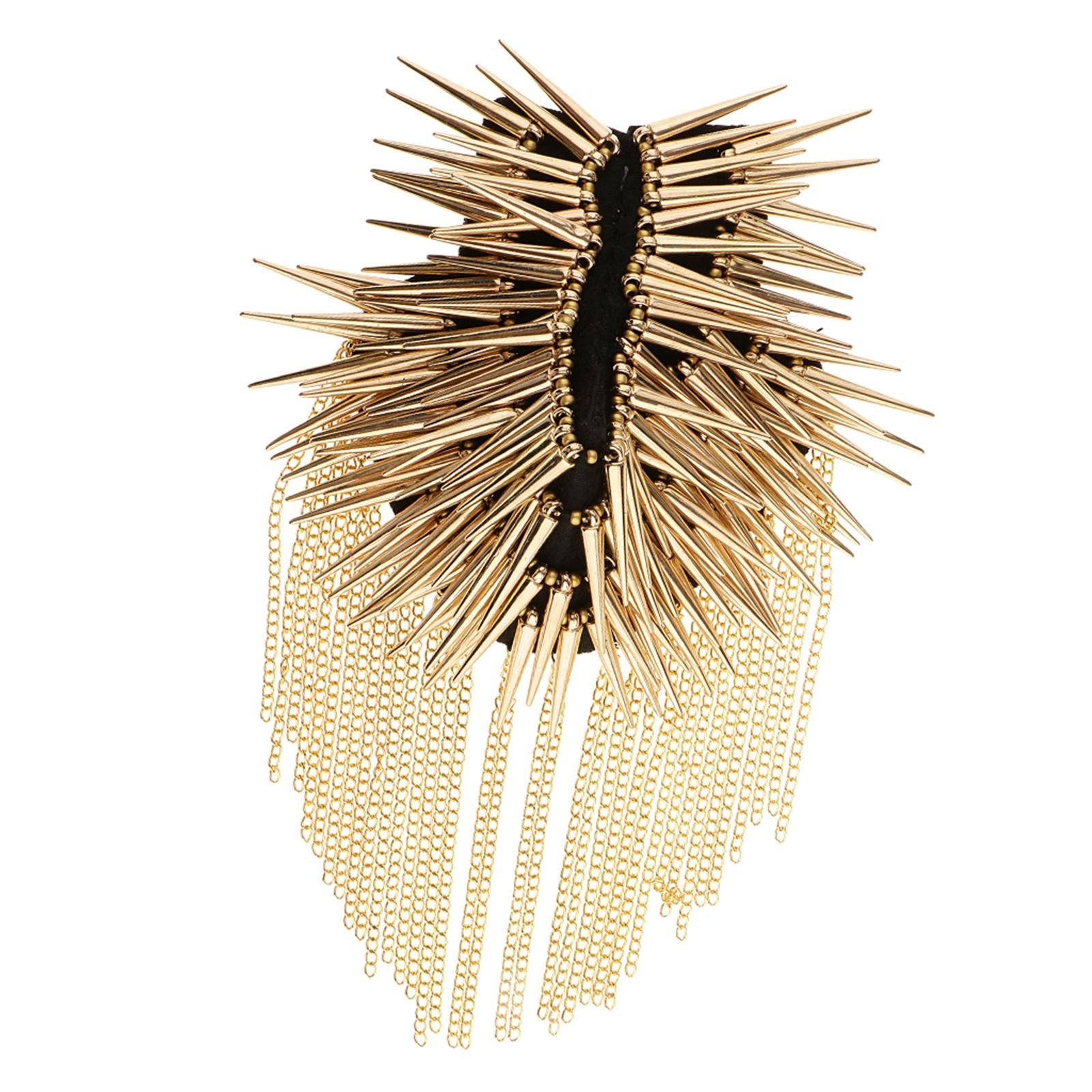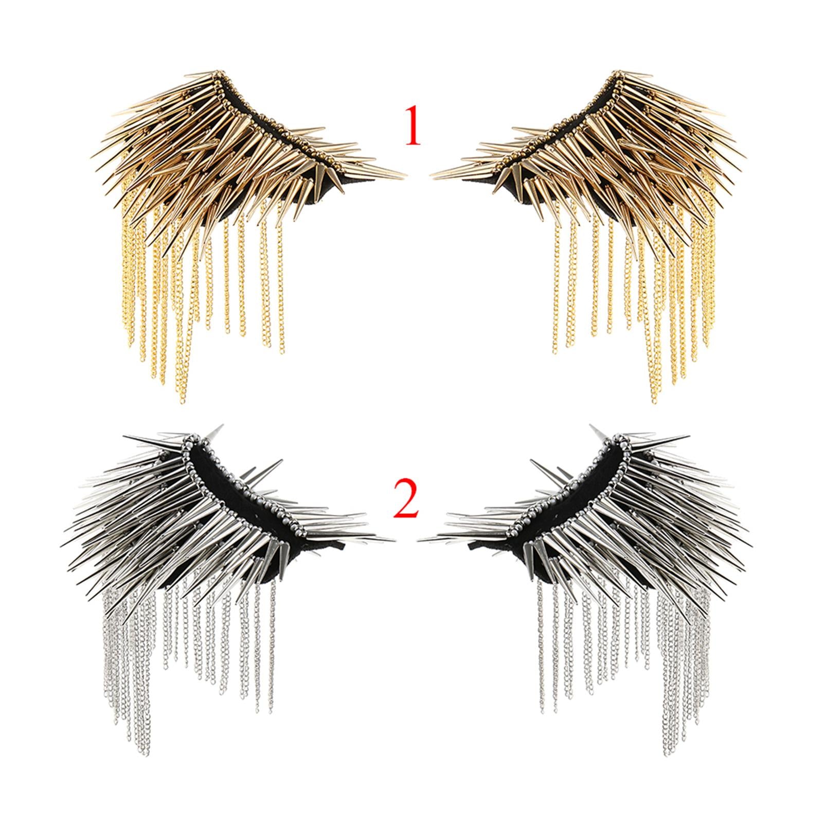 1 Pair Unisex Rivet Brooch Spike Tassel Epaulet Shoulder Board Mark Gold