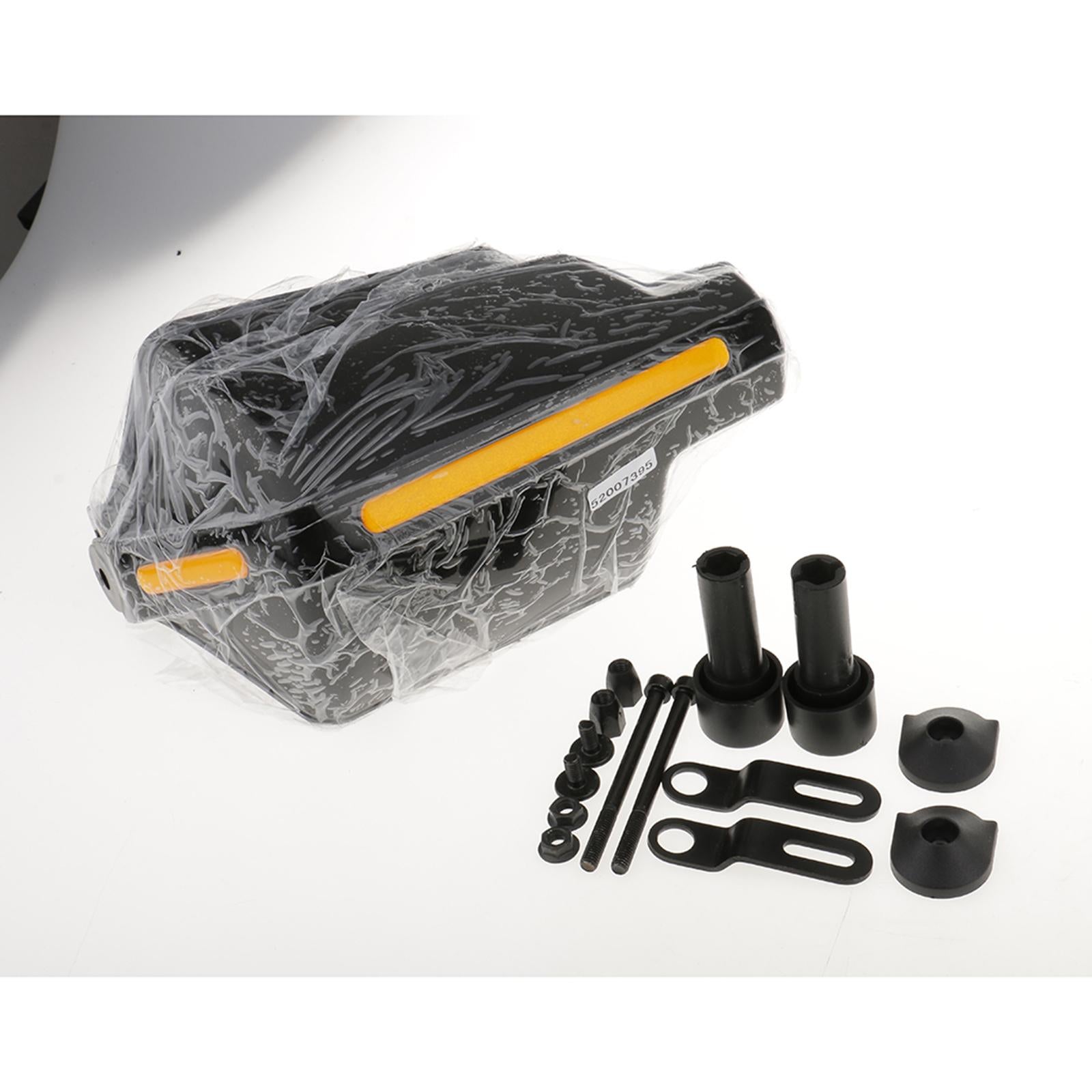 A plastic handguard designed for motorcycles ,street bikes, dual sports ,motards , scooters.