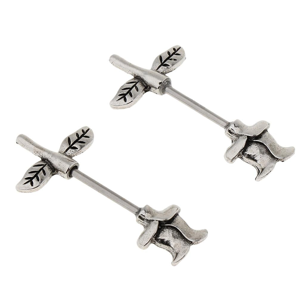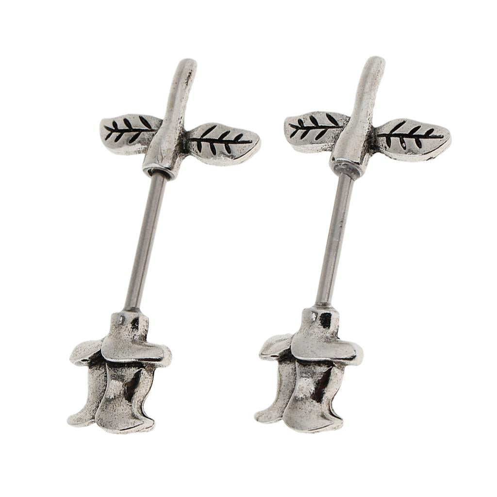 Gauge Size: 14Gauge =1.6 mm, vintage stainless steel rose flower straight bar barbell shield nipple shield rings;