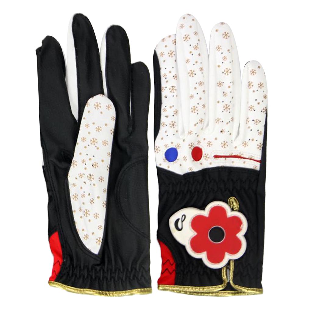 1 Pair Women Ladies Golf Gloves for Left and Right Hands Black White Size 18