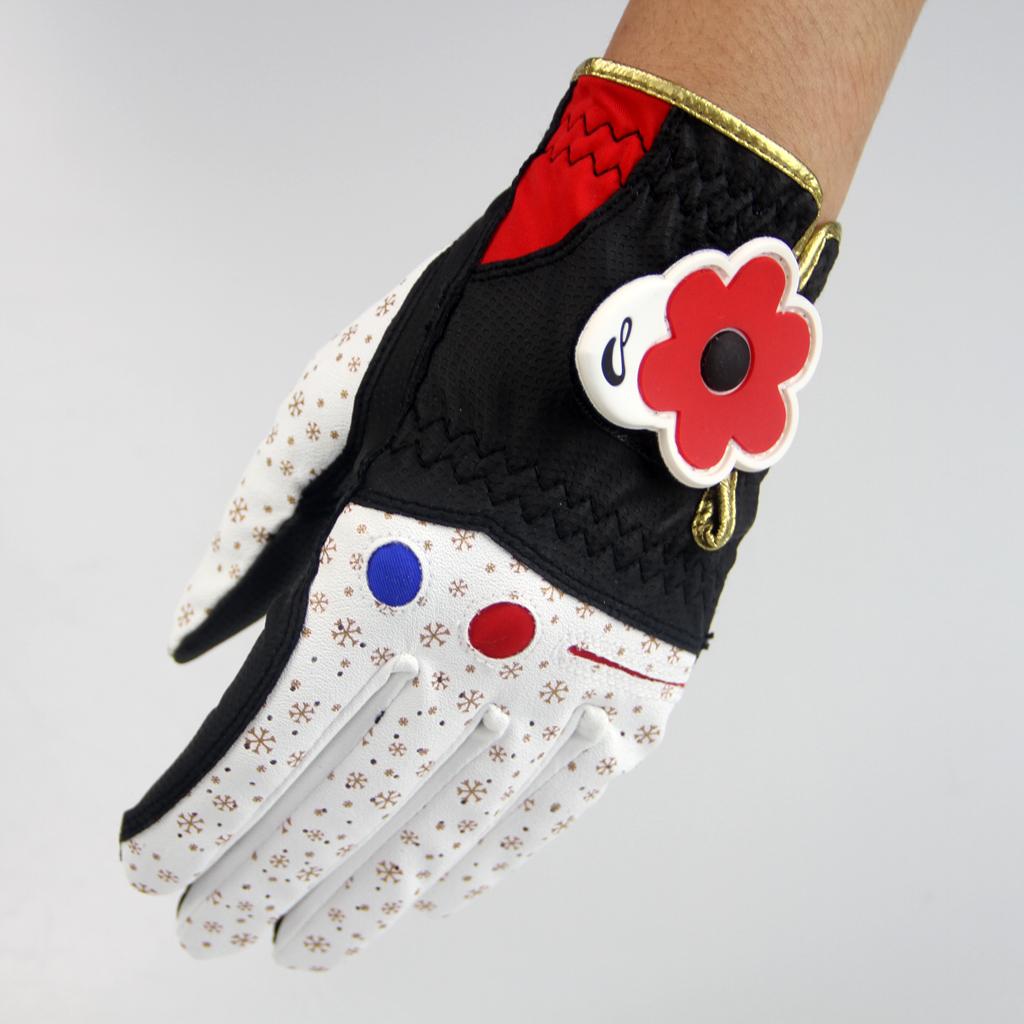 1 Pair premium PU women golf gloves for left and right hand with fashion flowers design