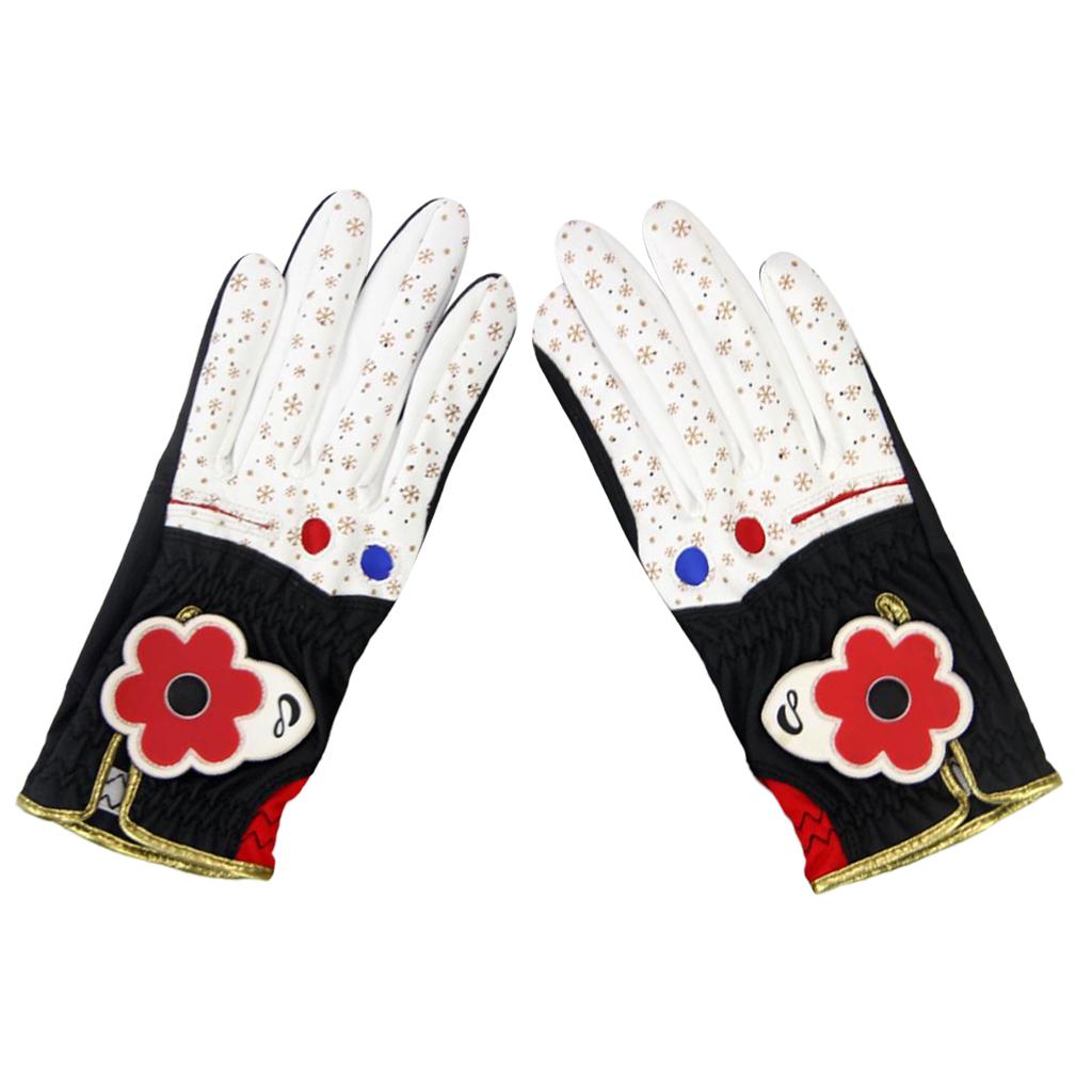 1 Pair premium PU women golf gloves for left and right hand with fashion flowers design