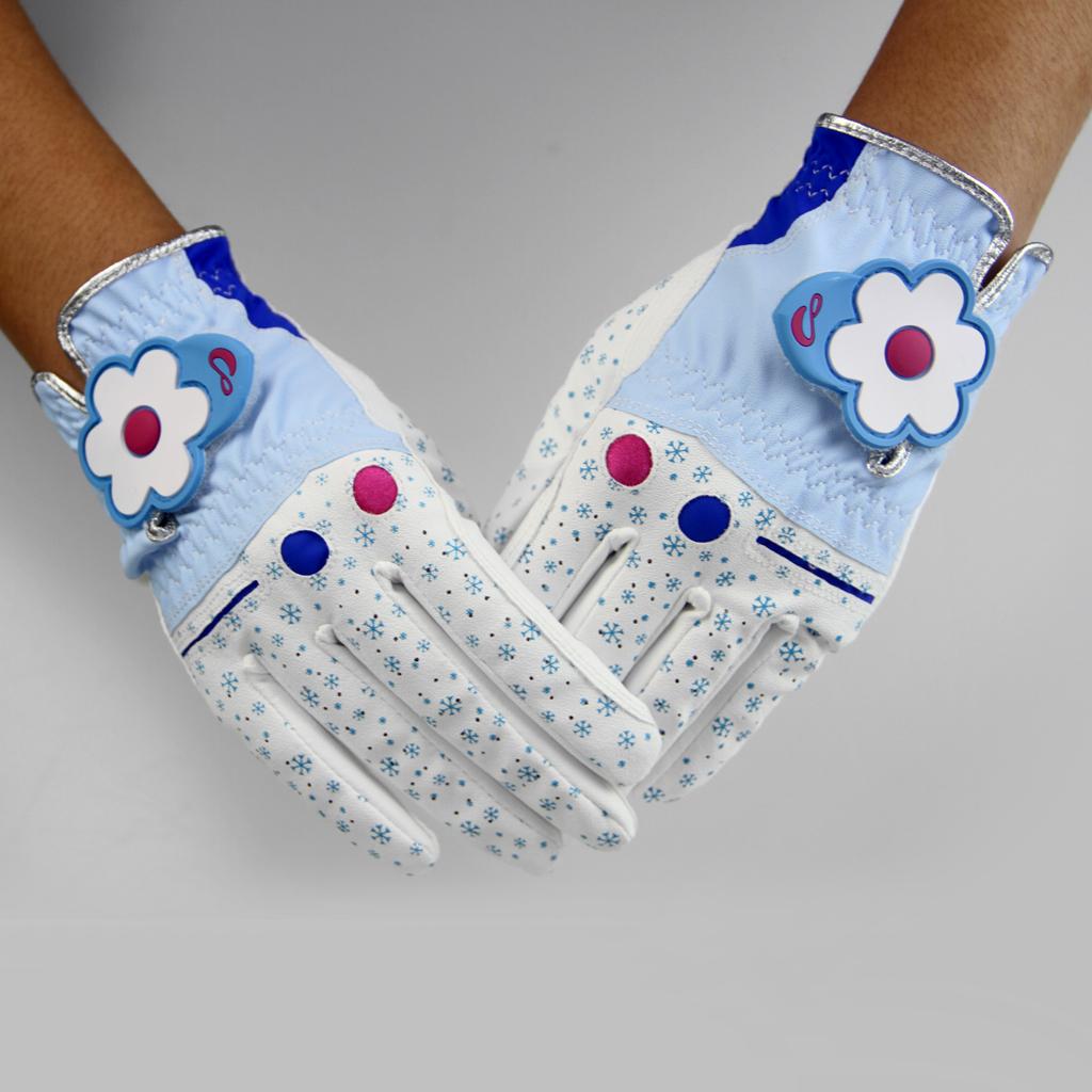 1 Pair premium PU women golf gloves for left and right hand with fashion flowers design