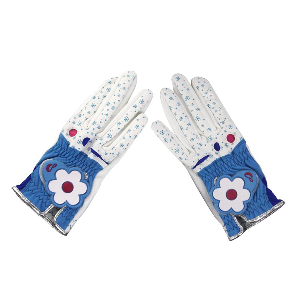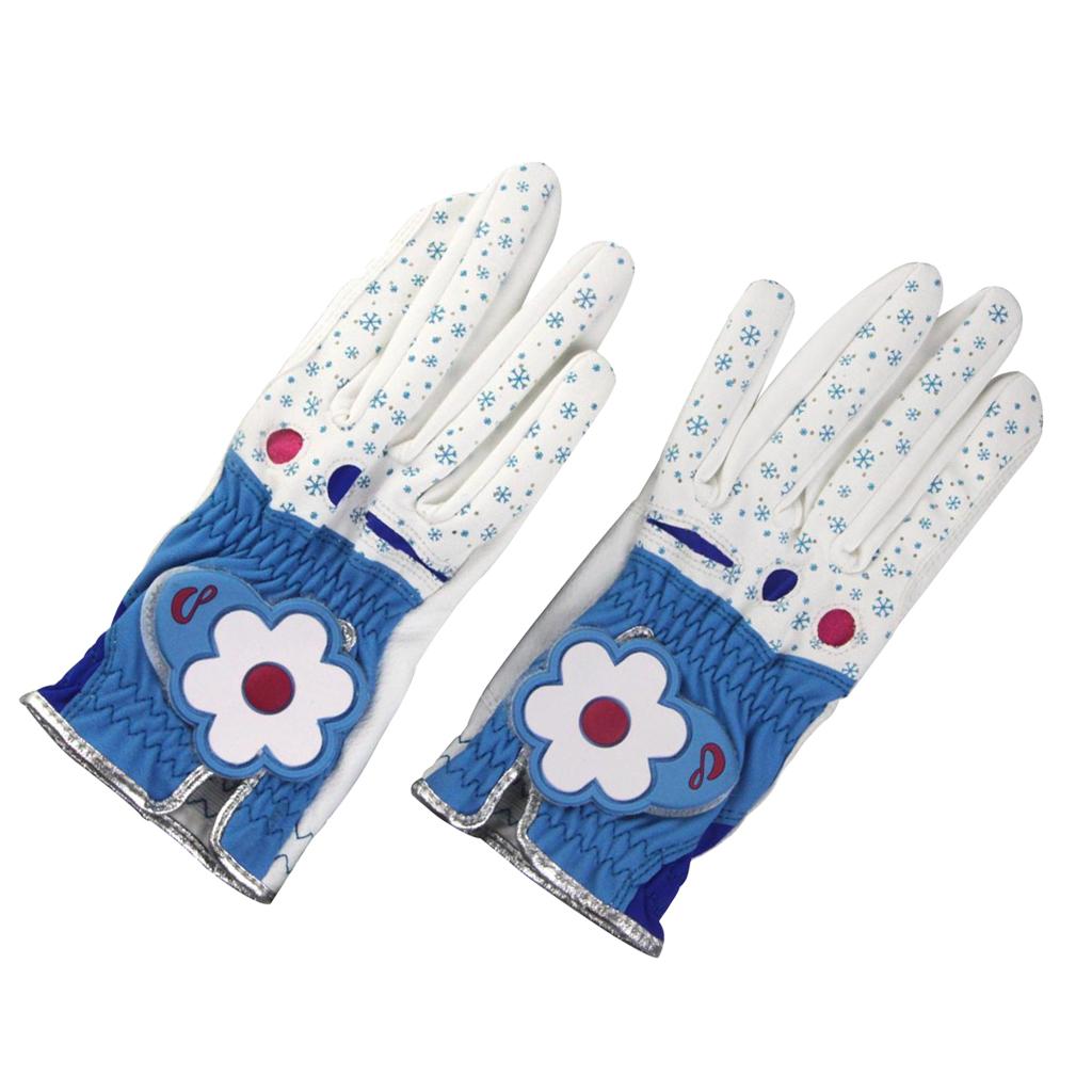 1 Pair Women Ladies Golf Gloves for Left and Right Hands Blue White Size 18