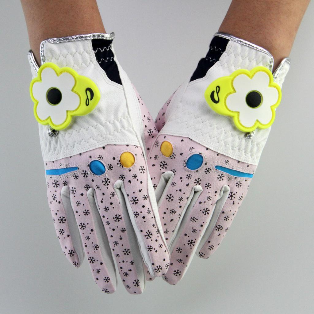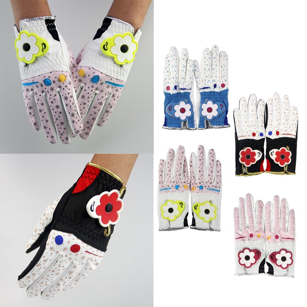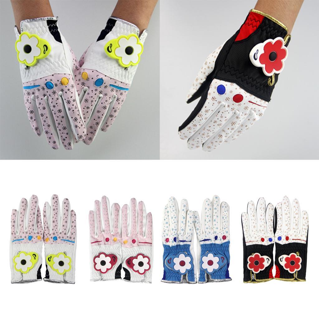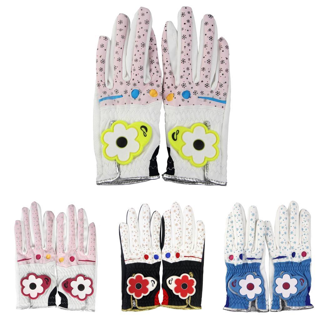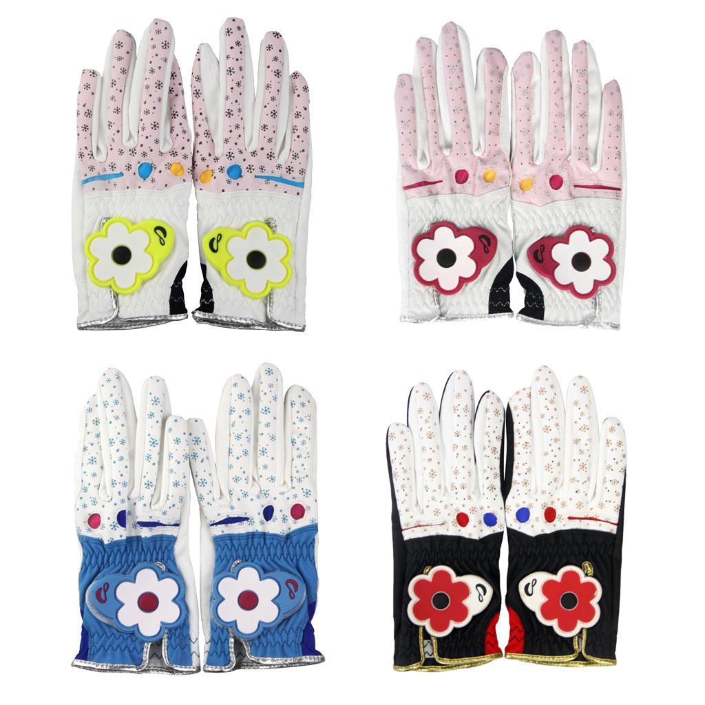1 Pair premium PU women golf gloves for left and right hand with fashion flowers design