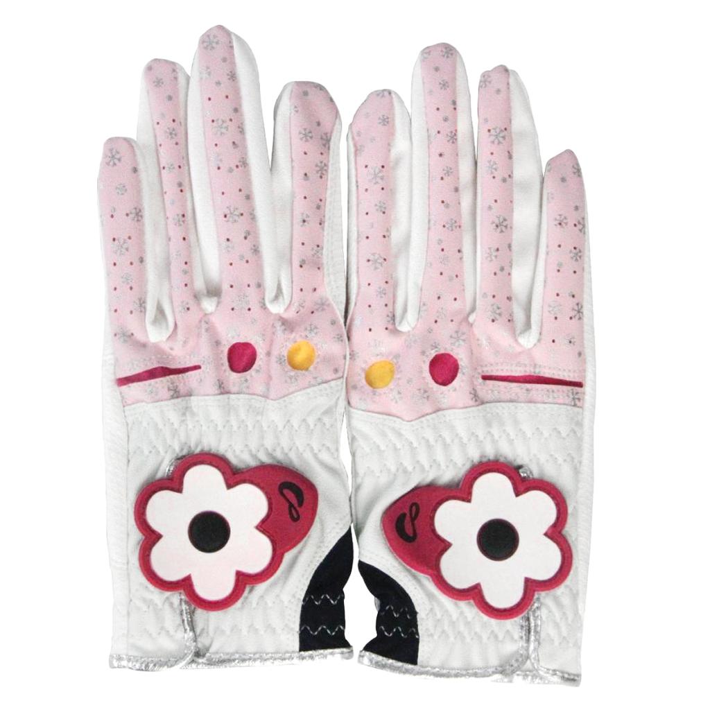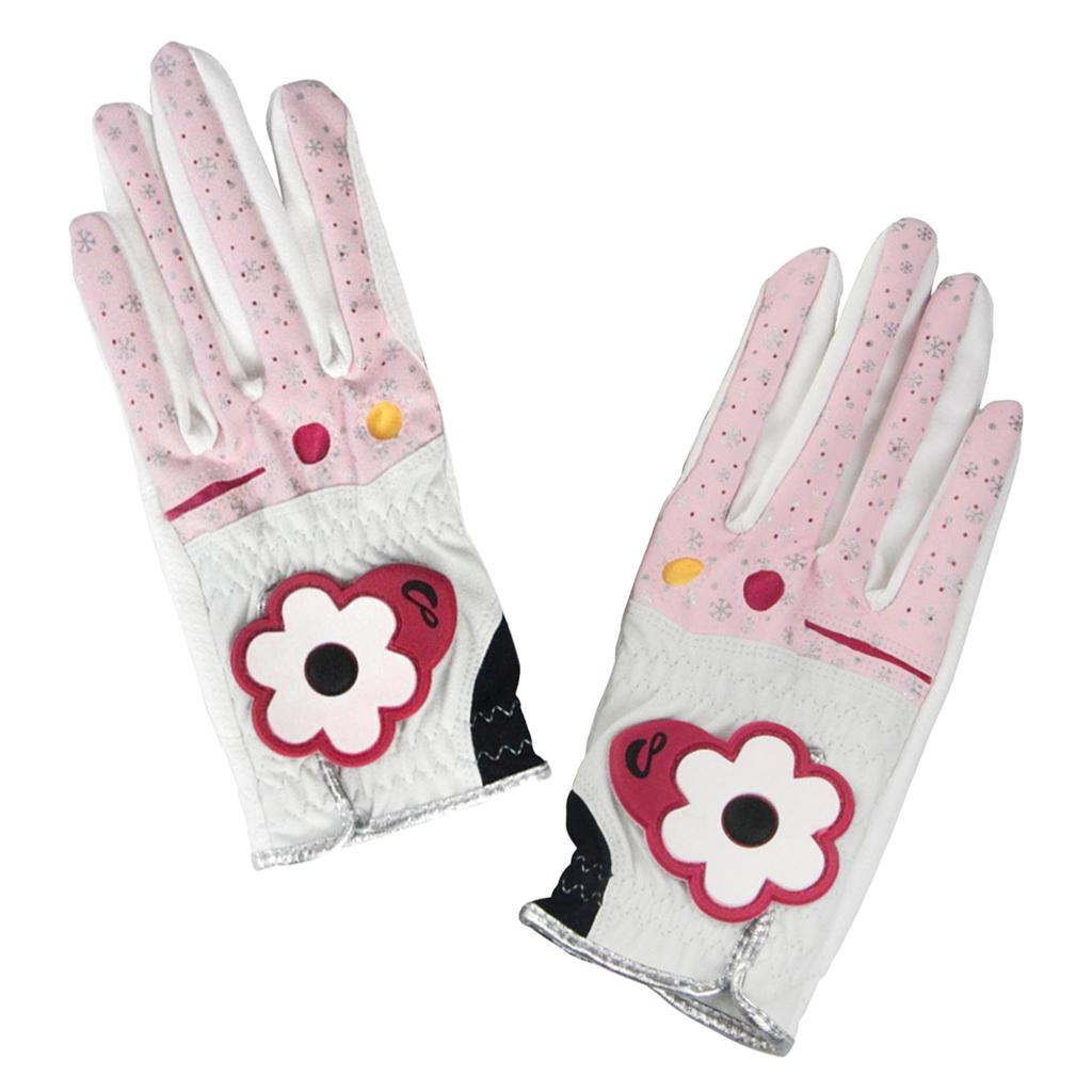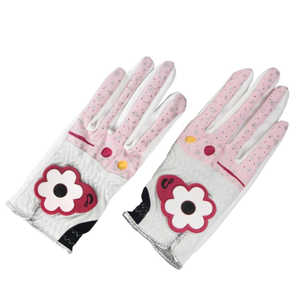 1 Pair premium PU women golf gloves for left and right hand with fashion flowers design