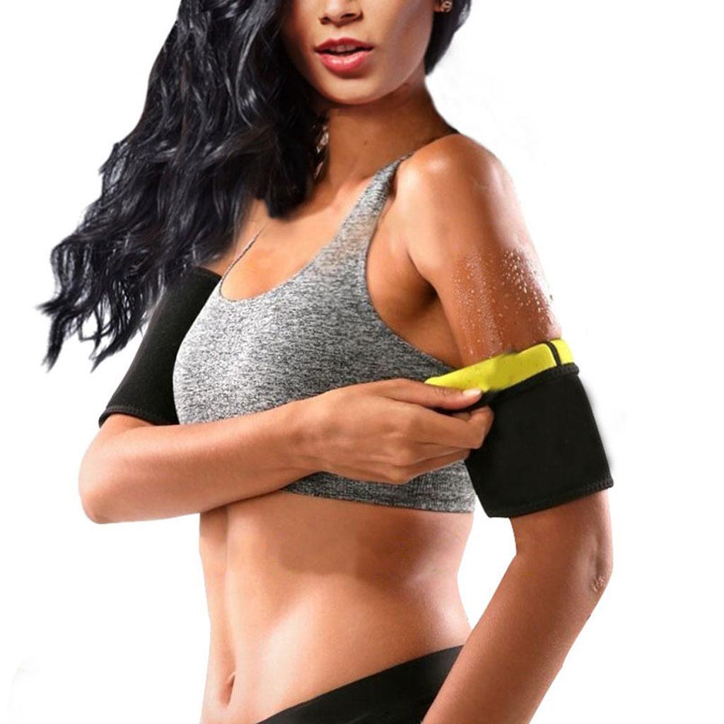 1 Pair Women Sudatory Shaper Gym Yoga Slimming Arm Trimmers Black Yellow-S
