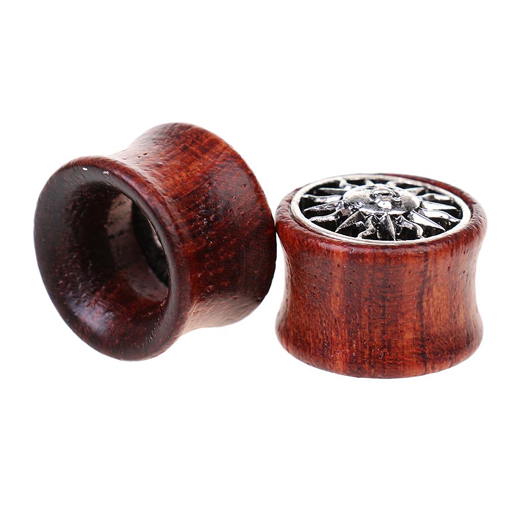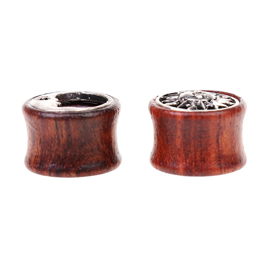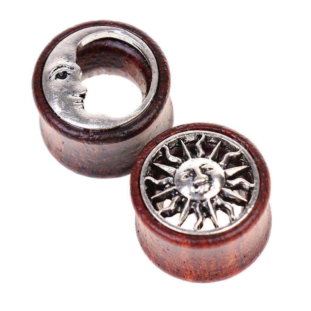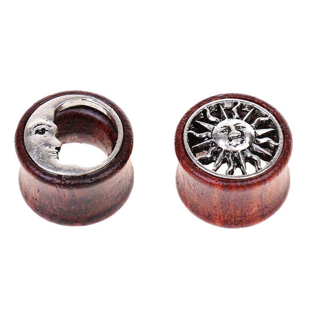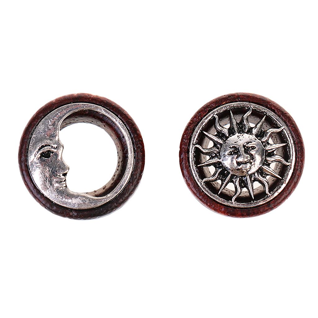 1 Pair Wooden Alloy Sun Moon Flared Ear Plug Tunnel Expanders Stretcher 16mm