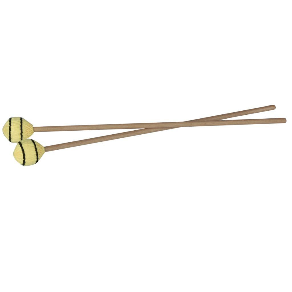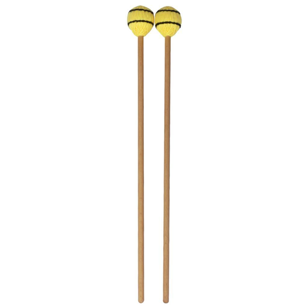 1 Pair Marimba Mallets with Beech Handle and Yellow Yarn Head.