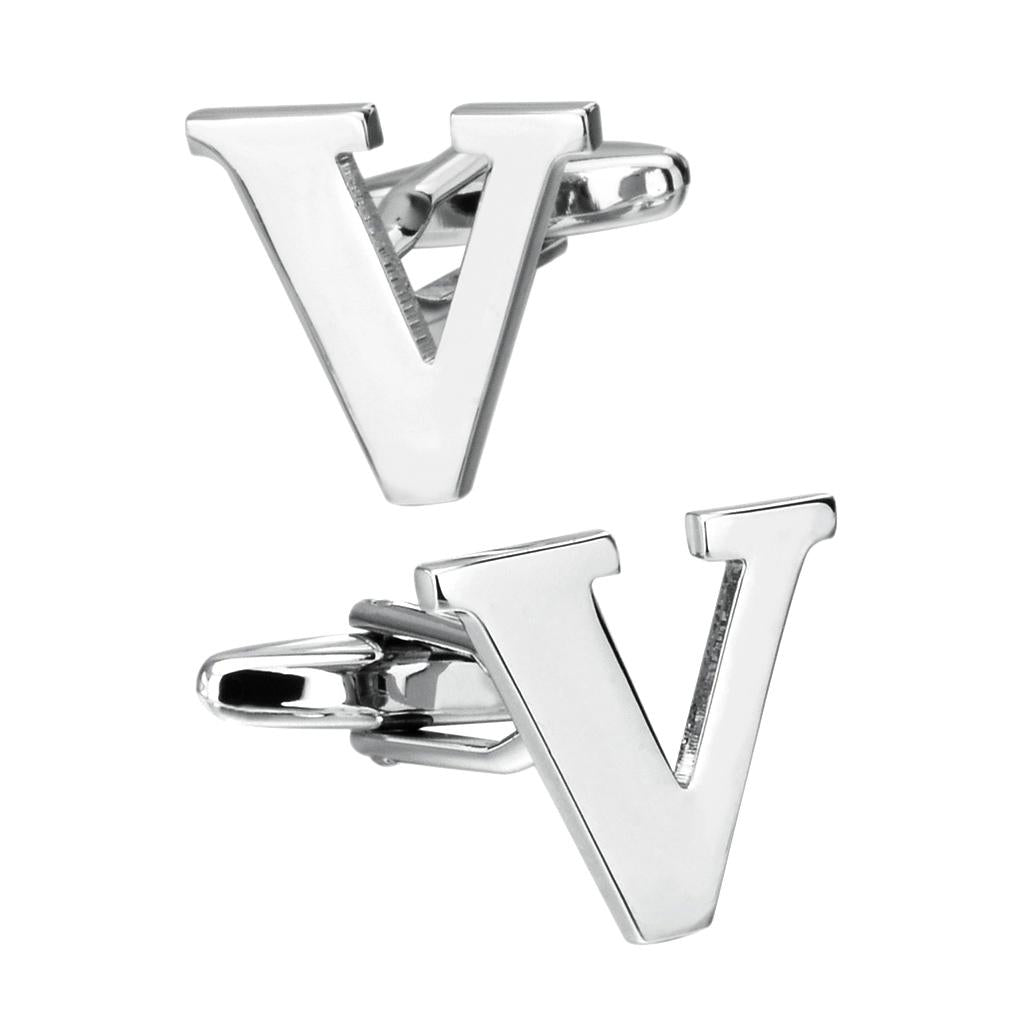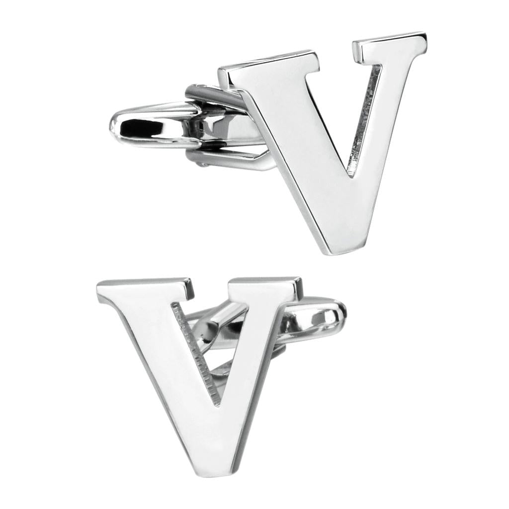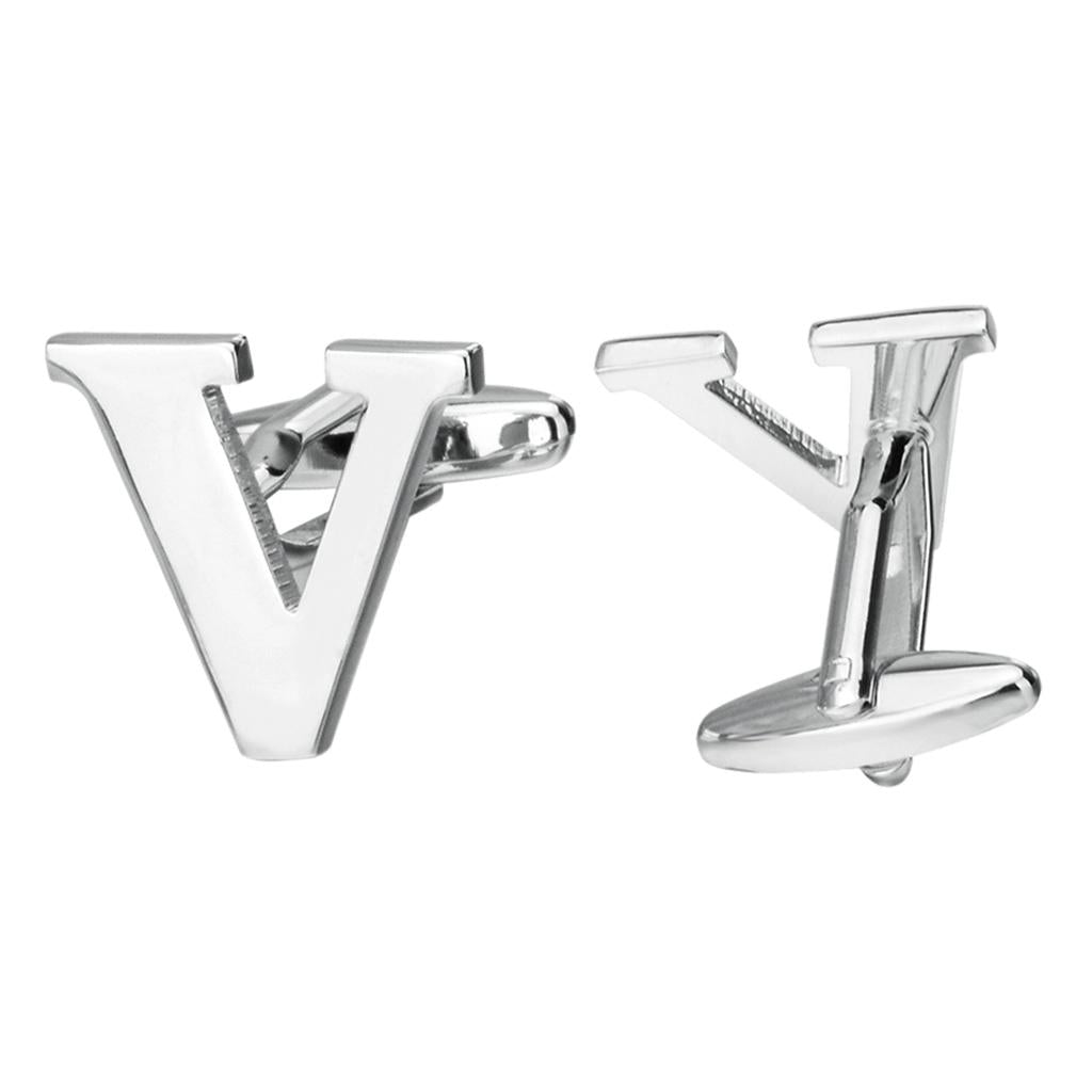 1 Pairs Silver Tone Cufflinks Initial Letter Alphabet Shirt Wedding Gift V