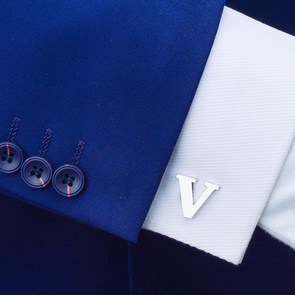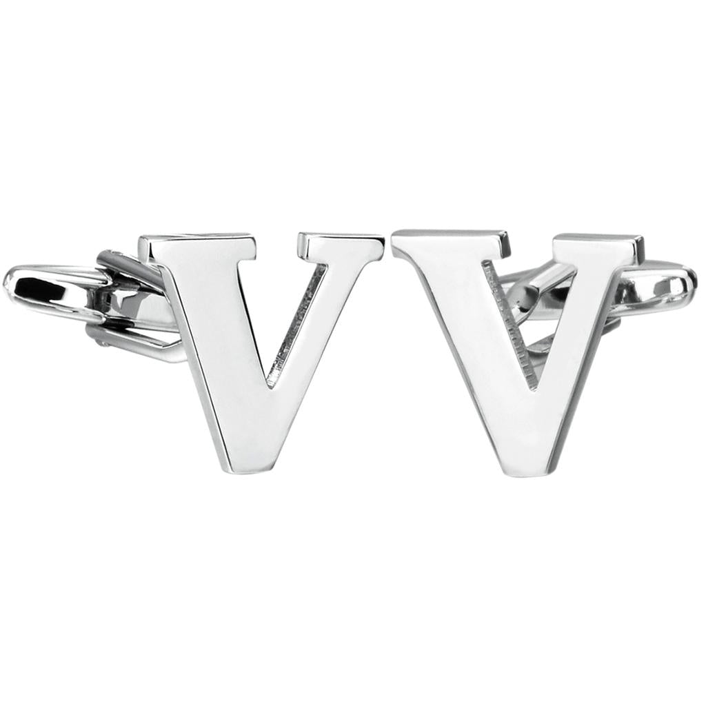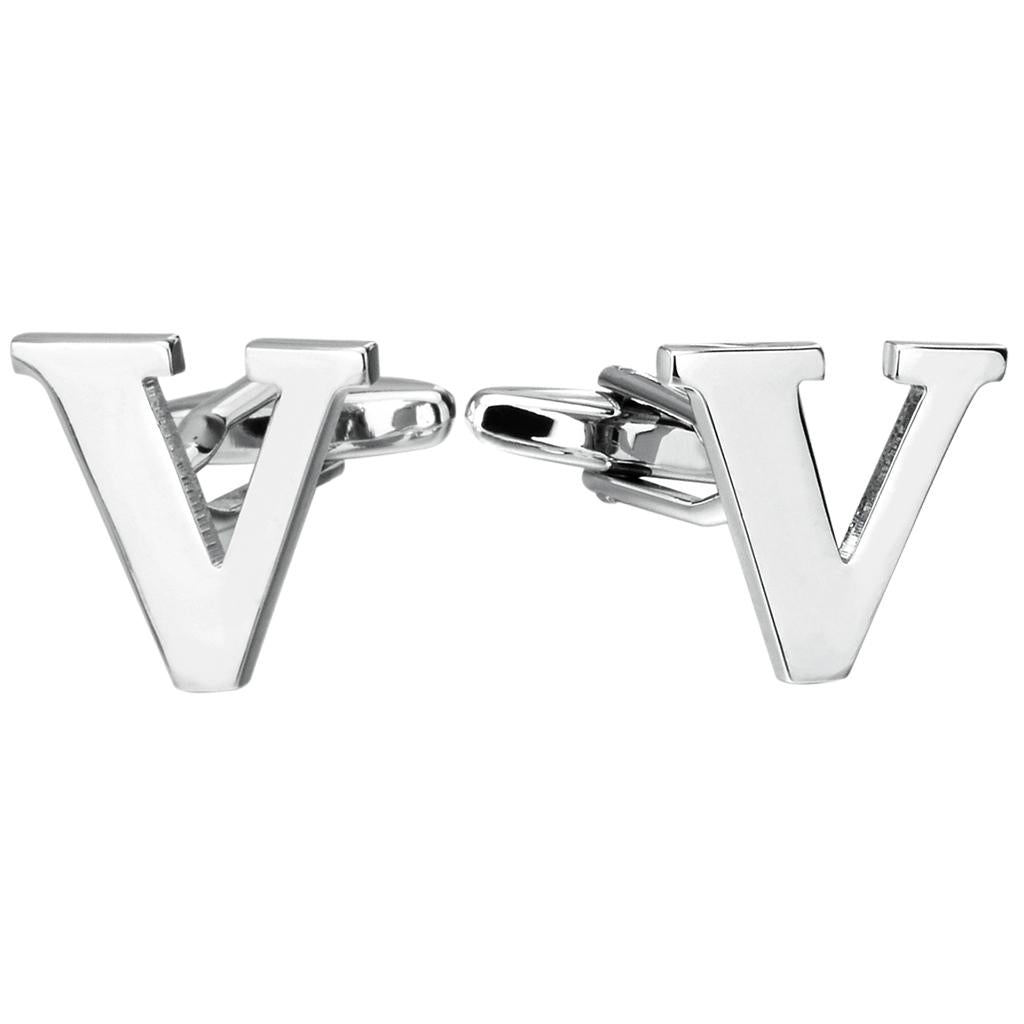 1 Pairs Silver Tone Cufflinks Initial Letter Alphabet Shirt Wedding Gift V