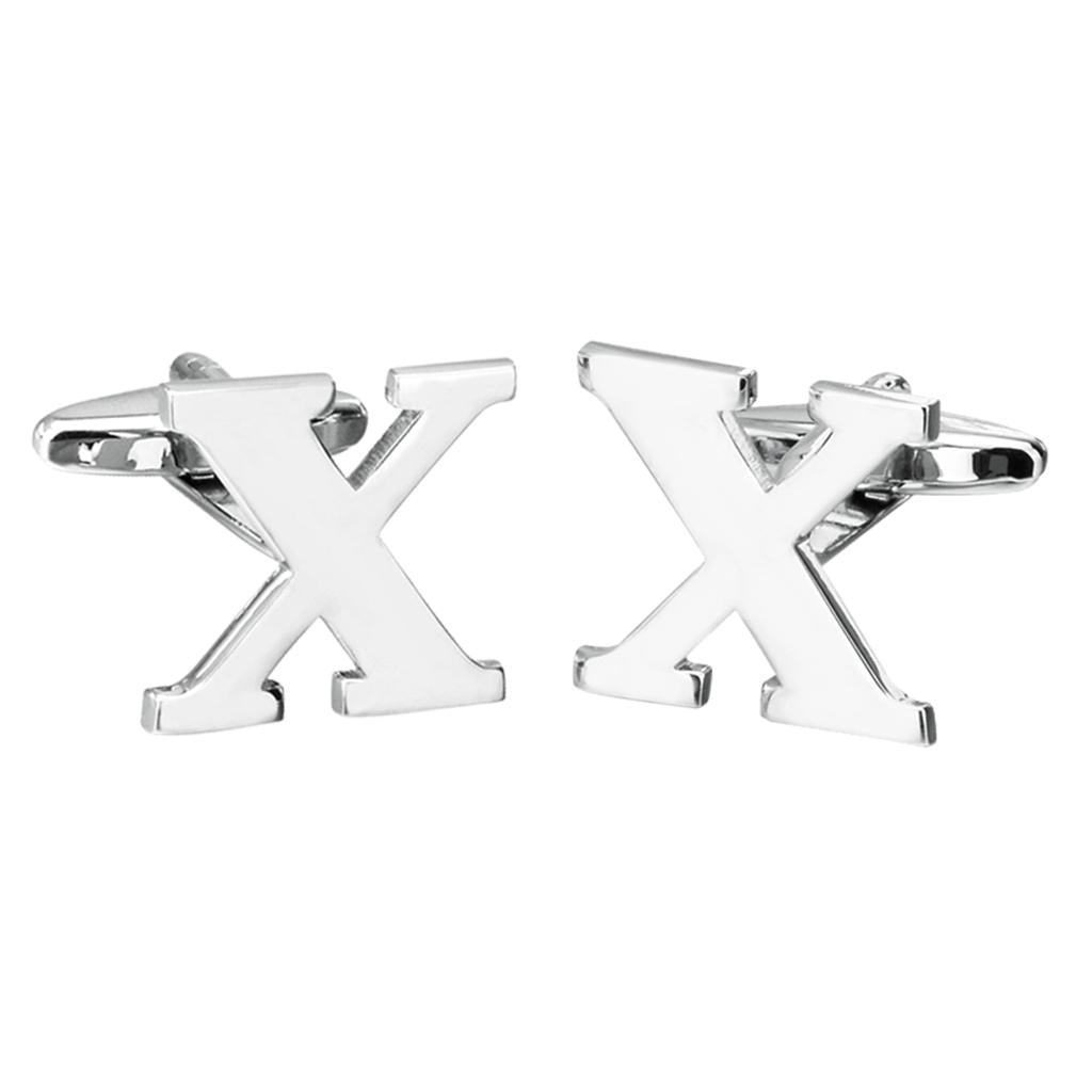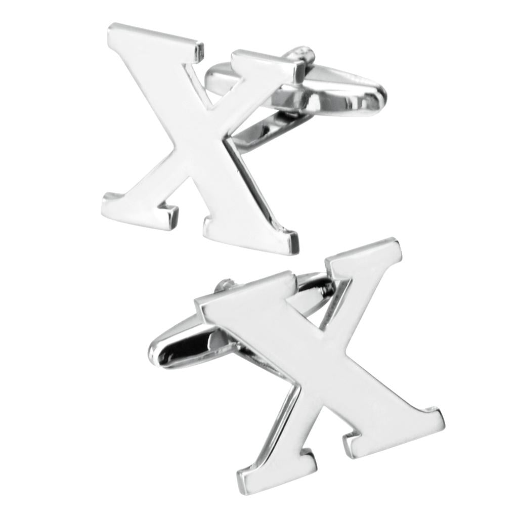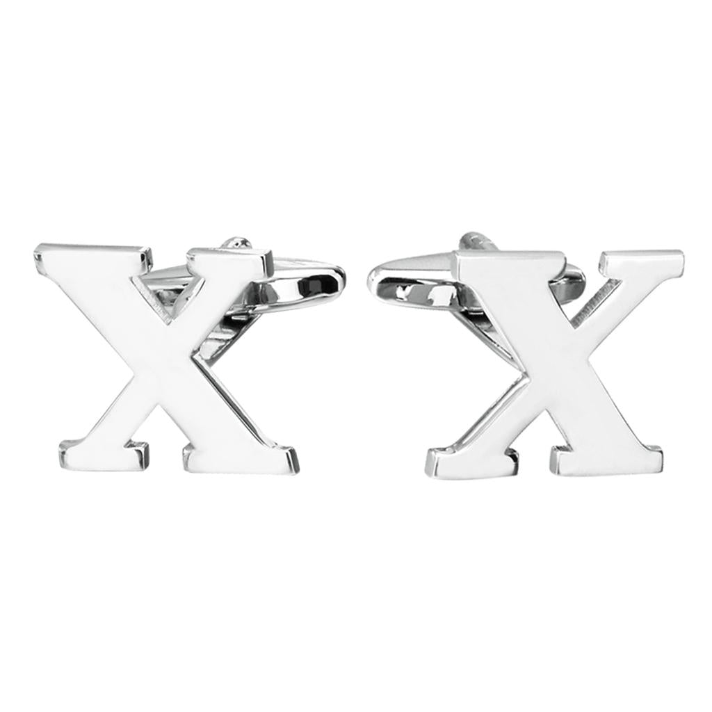 1 Pairs Silver Tone Cufflinks Initial Letter Alphabet Shirt Wedding Gift X
