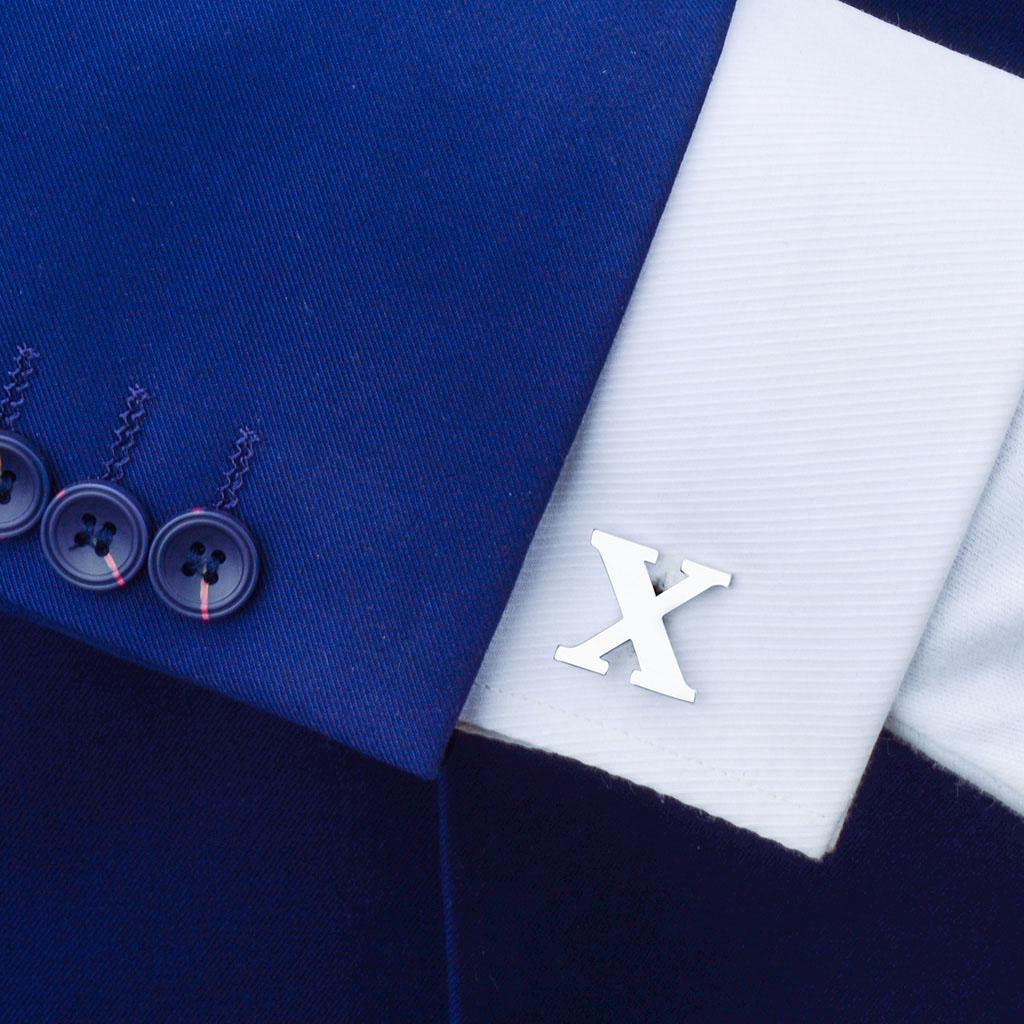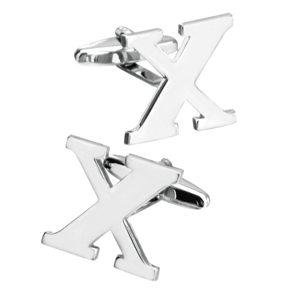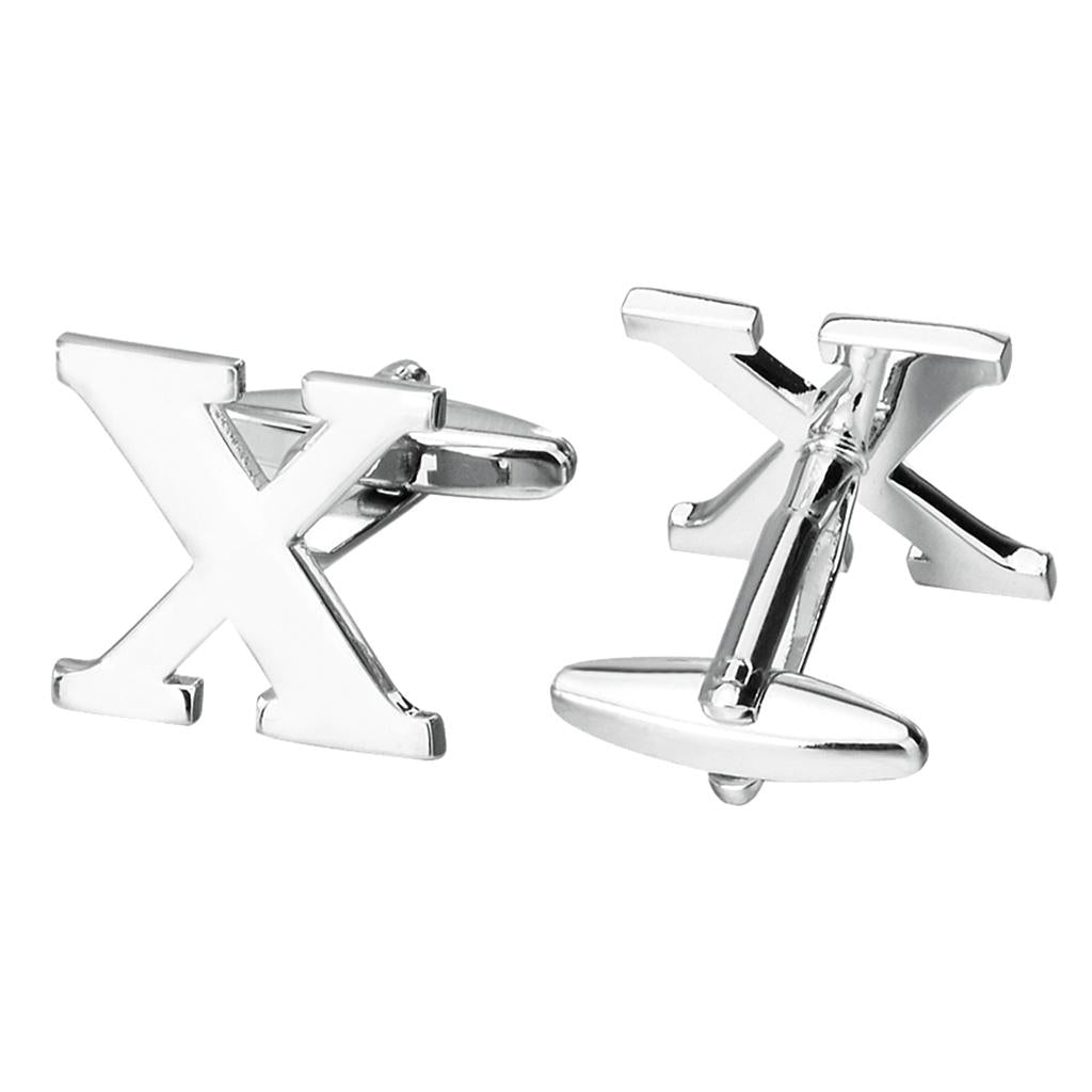 1 Pairs Silver Tone Cufflinks Initial Letter Alphabet Shirt Wedding Gift X