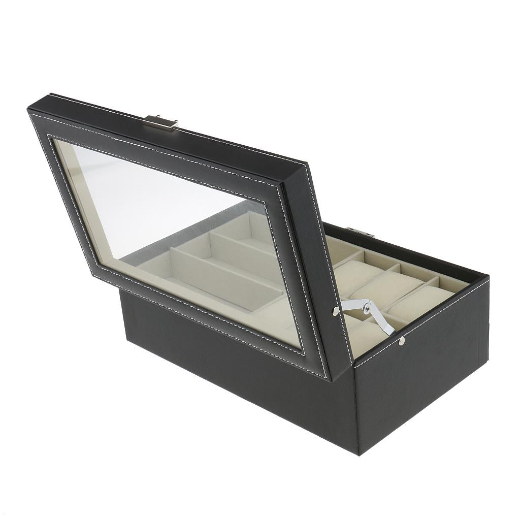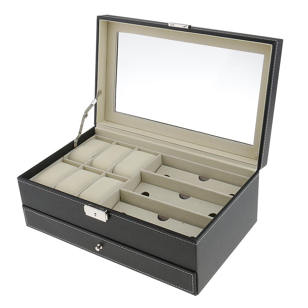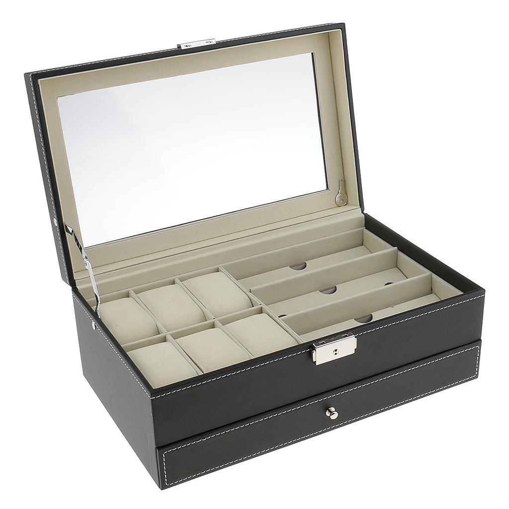 Rectangular case,luxury textured PU leather covered,a piece transparent glass on the top