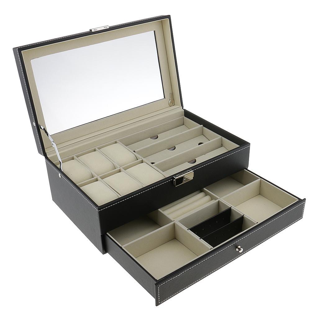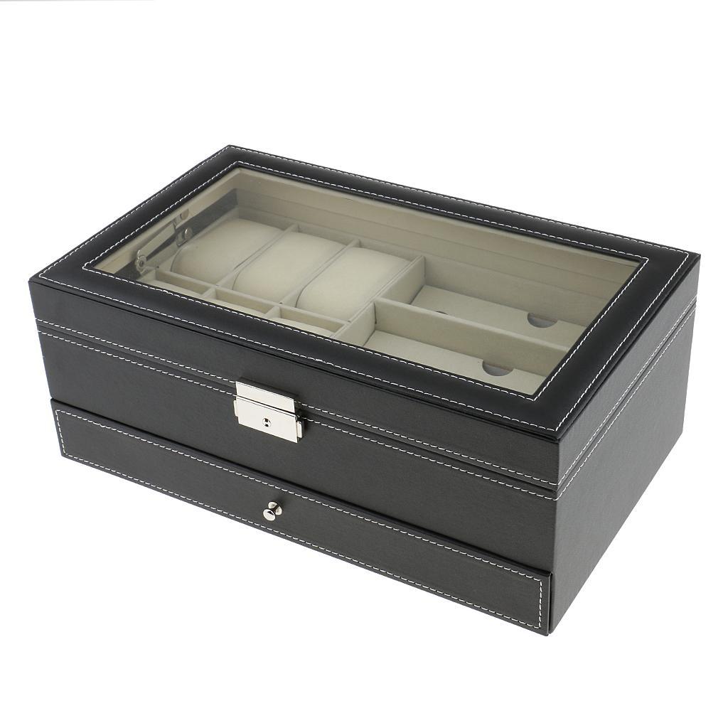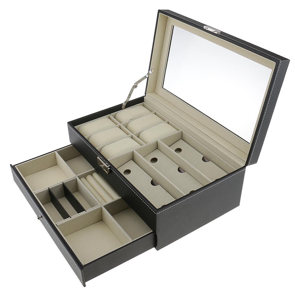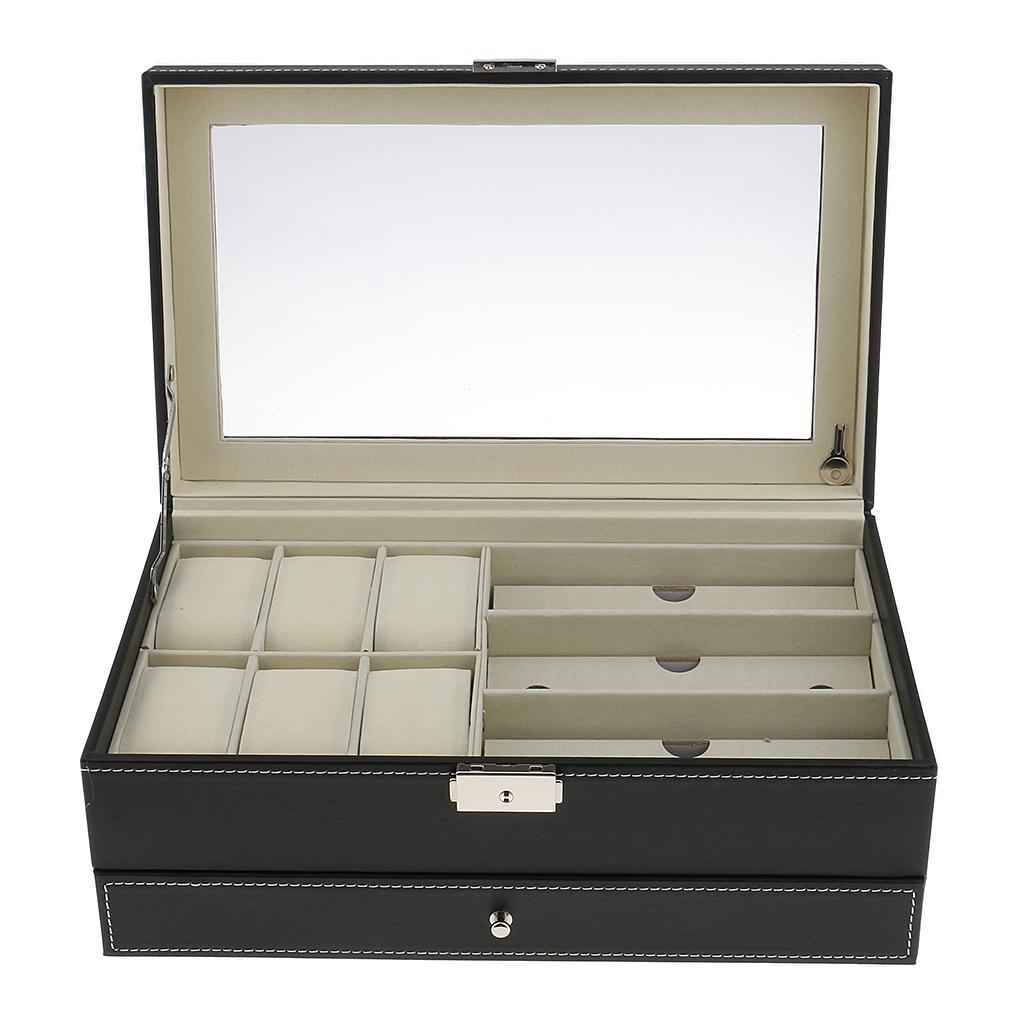 Rectangular case,luxury textured PU leather covered,a piece transparent glass on the top