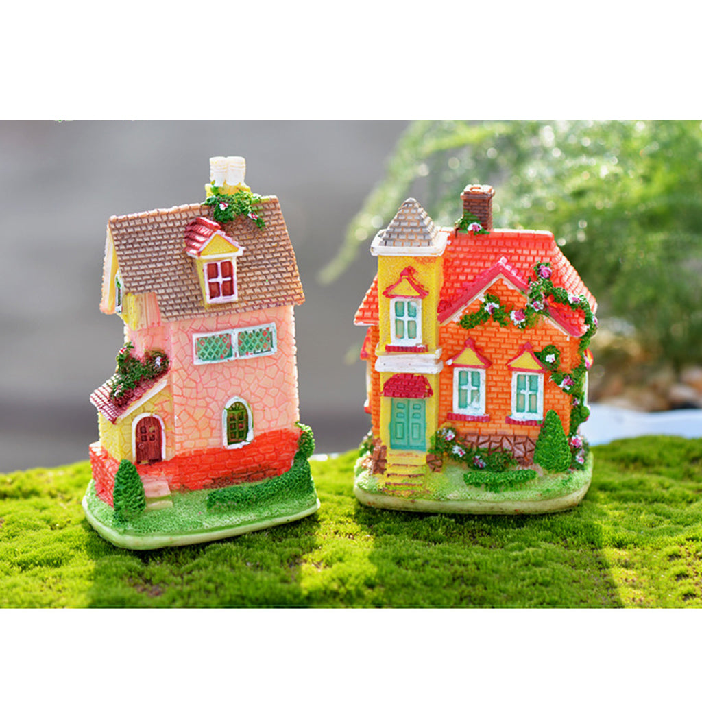 1 pcs Mini Resin Villa Statue DIY Moss Micro Landscape Decoration Garden