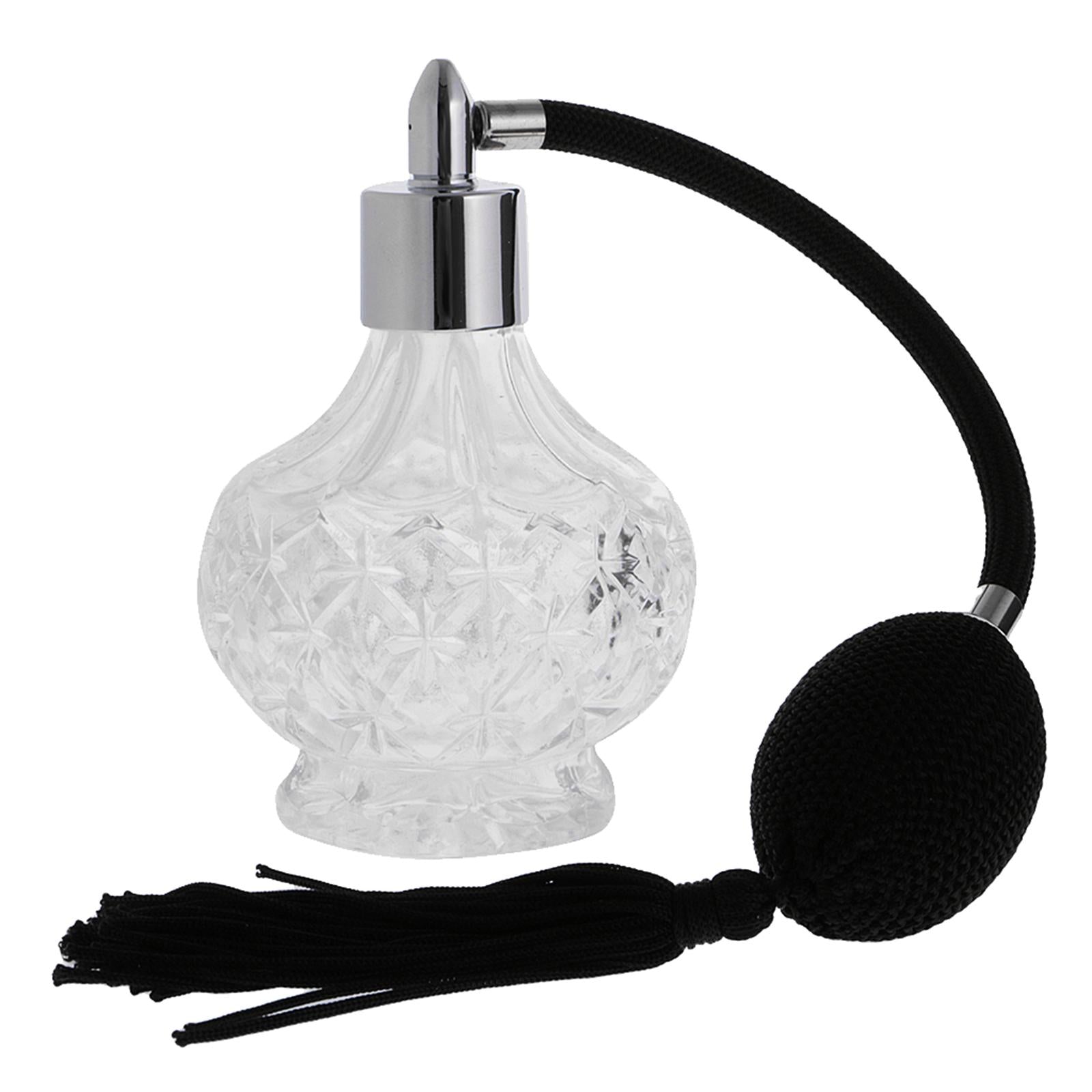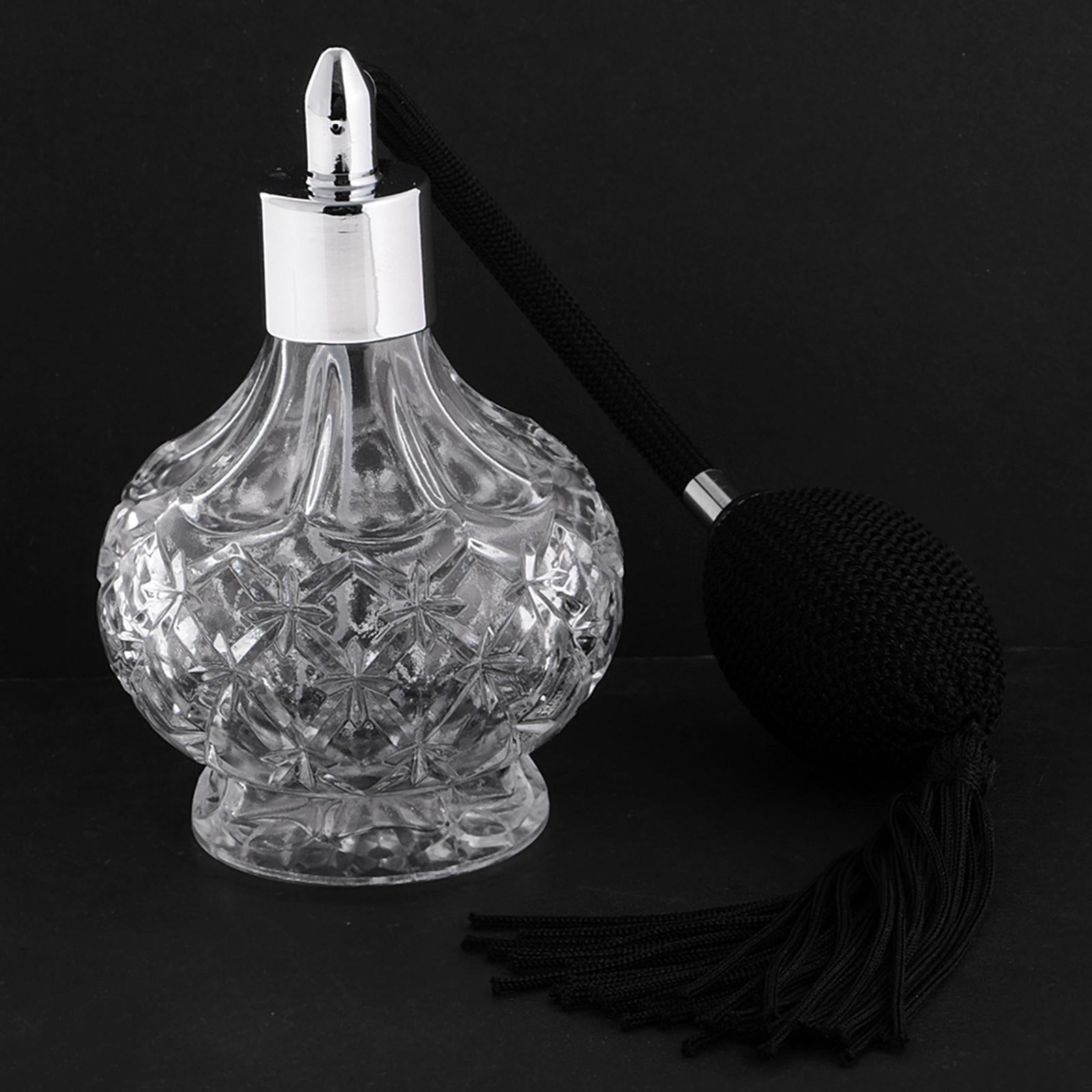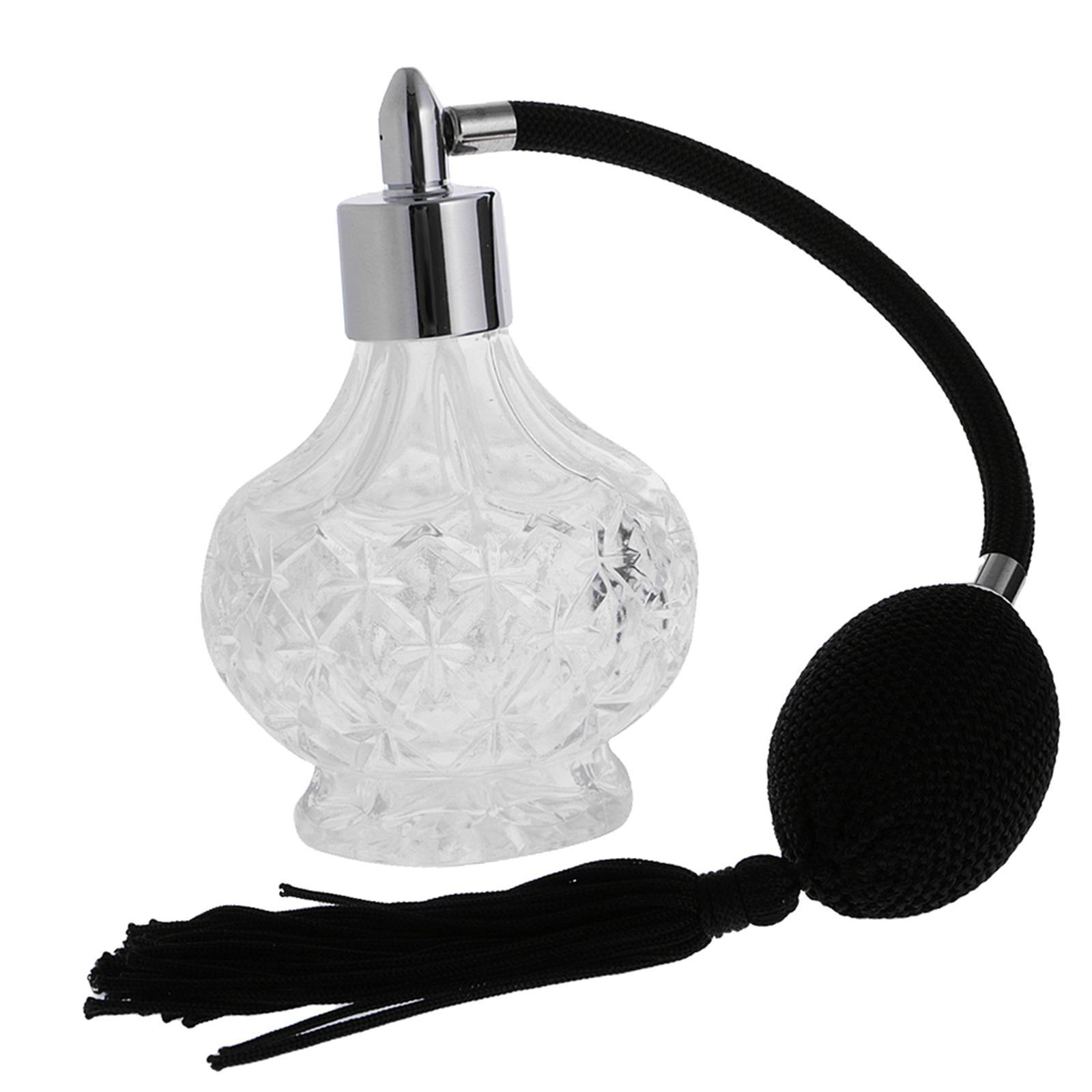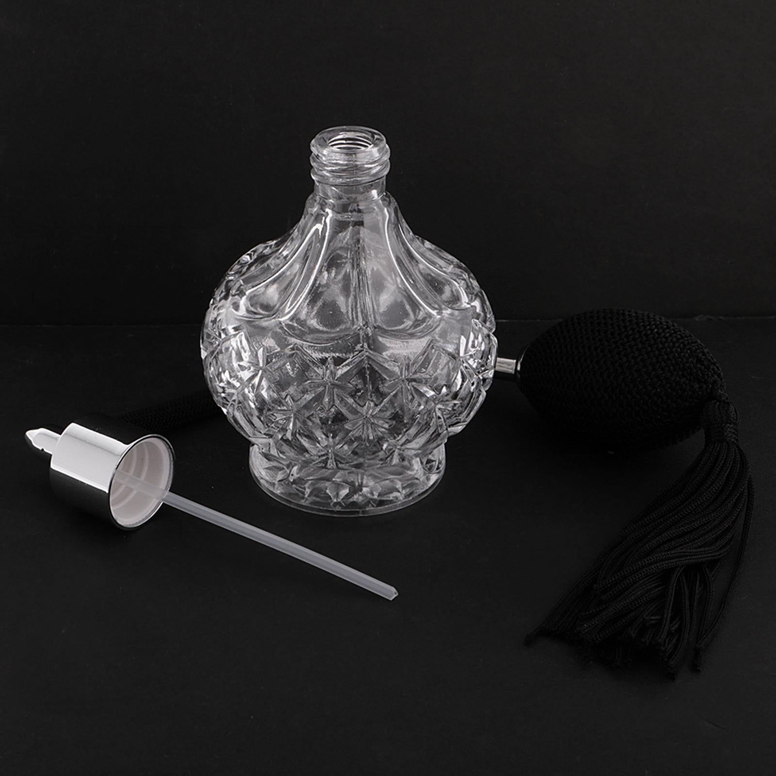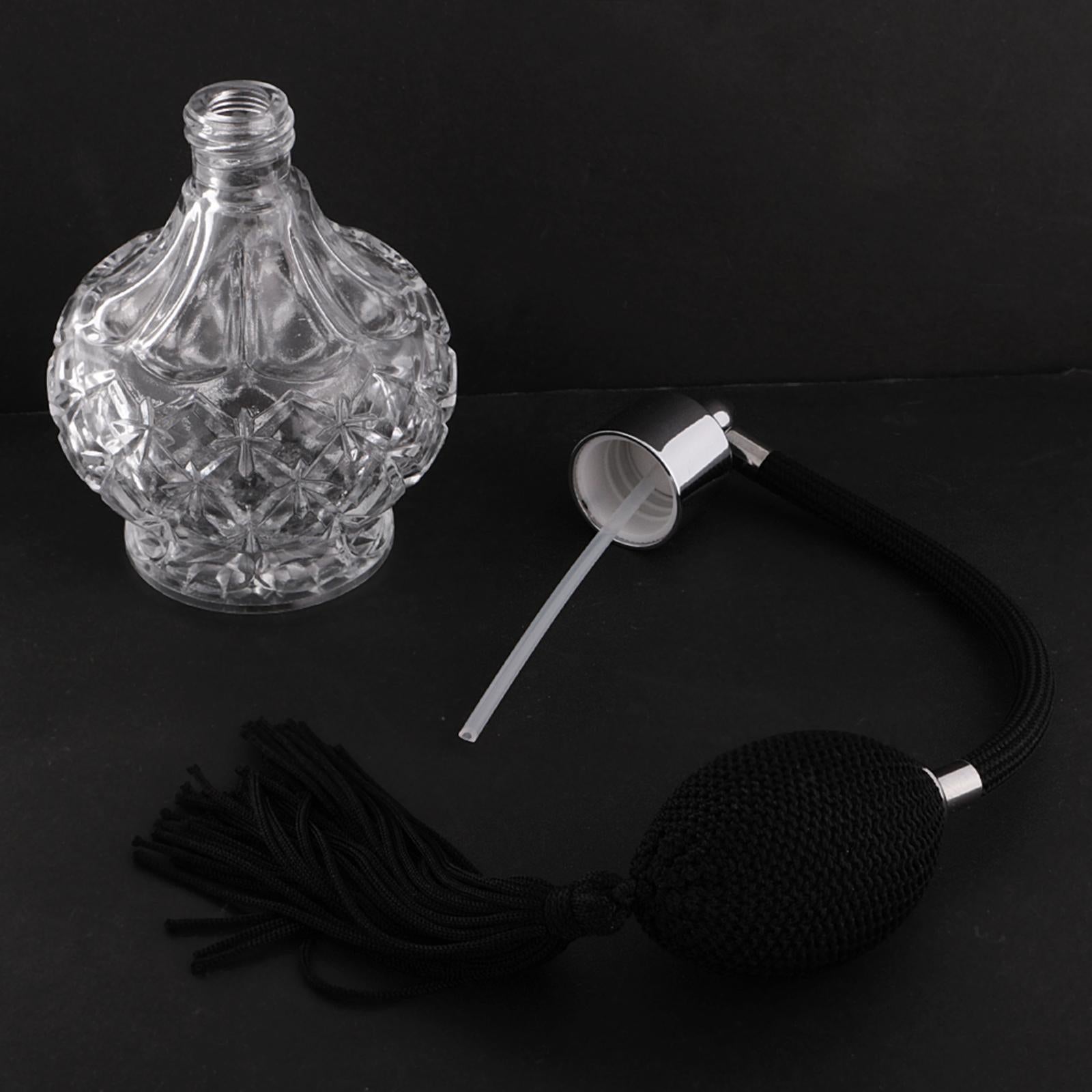 1 Piece of Vintage Crystal Clear Glass Empty Perfume Aftershave Bottle Long Spray Tassels Atomizer Refillable Lady Gift 100ml Black