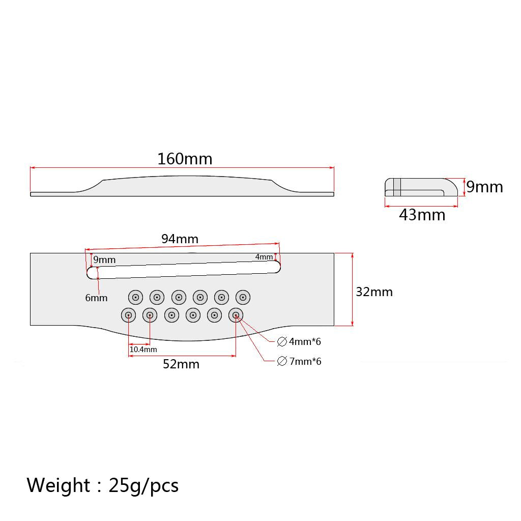 Brand new and high quality rosewood guitar bridgeSize Chart: