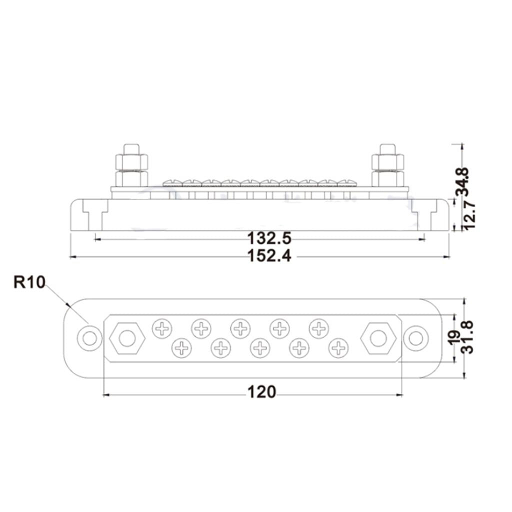 1 Piece Silver Bus Bar Electrical Terminal Junction 10P for Boat Marine
