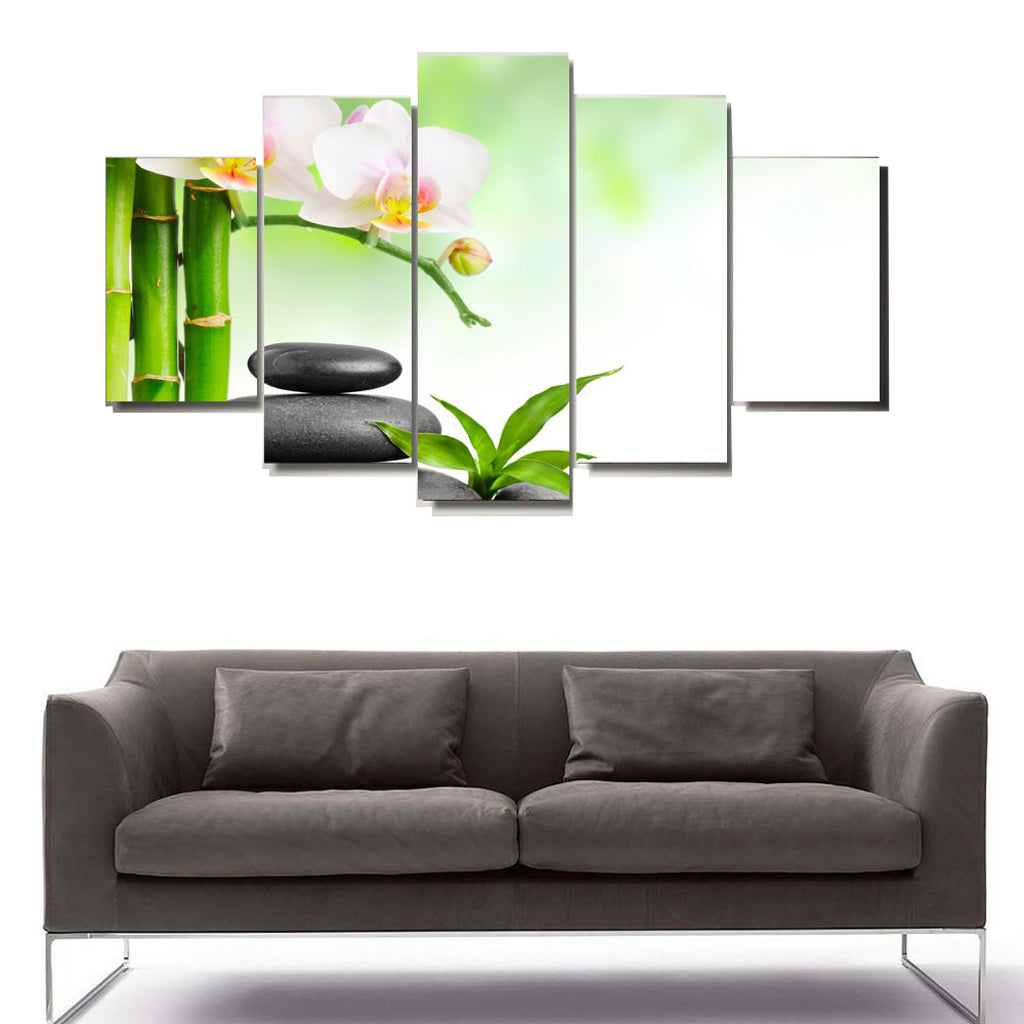 1 Set of 5PCS Canvas Painting for Home Bedroom Cafe Hotel Room Wall Art Wall Decor Paintings Orchid Stone Print Charms 20*30/40/50cm
