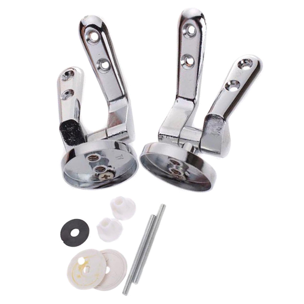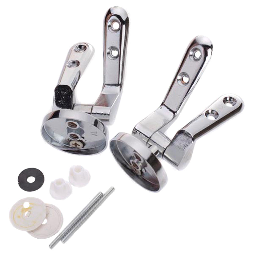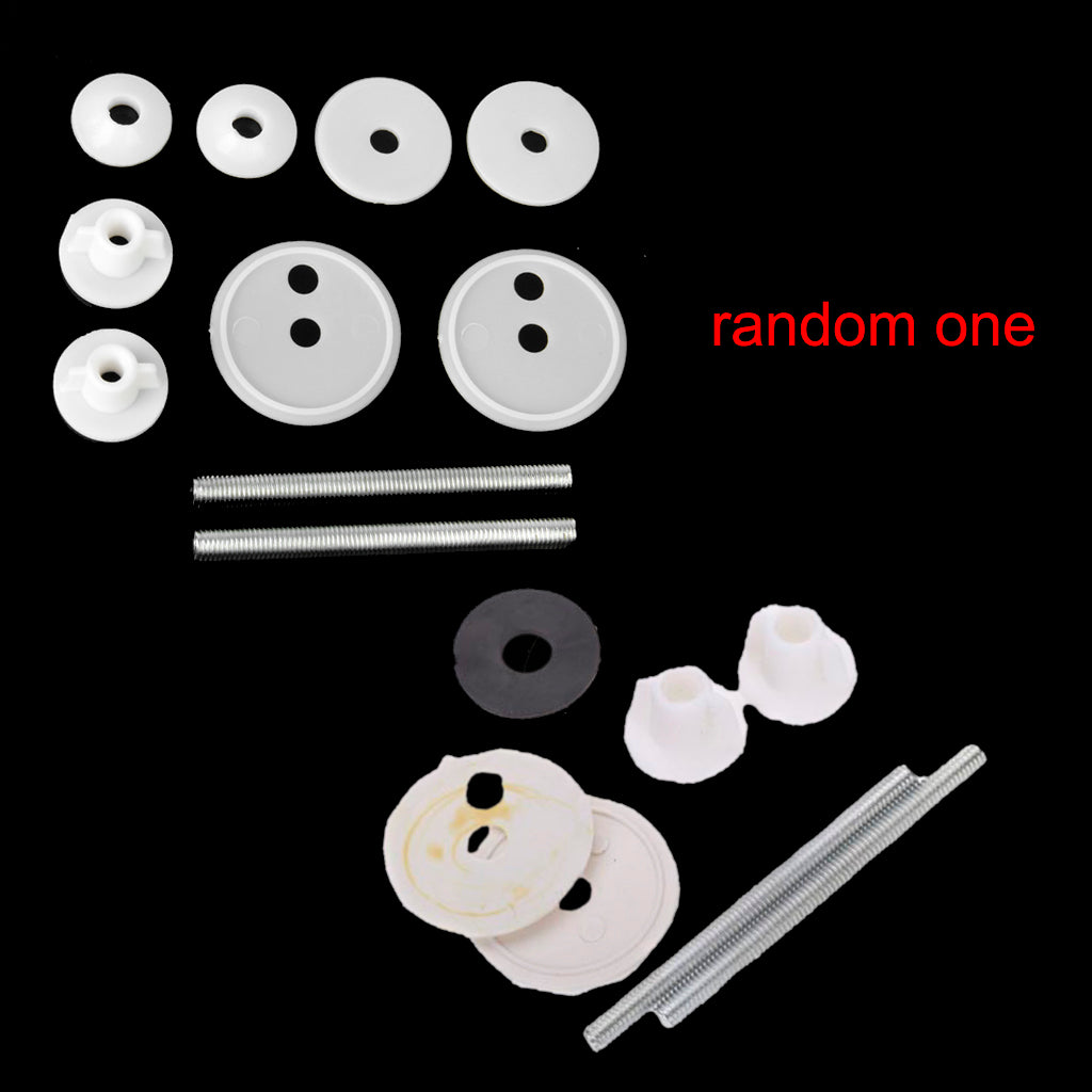 The set of toilet hinge featuring pretty easy to fit when you need to replace your old ones, if fit for most toilet seat. The set of toilet hinge included two threaded rods, two nuts, four gaskets. The threaded rod is screwed into the hinge mount, you can loosen the screw at bottom allows the mount to rotate, changing the relative position of two alternative holes, and then fit the gaskets into the threaded rod, at last tightened underneath with a plasctic wing nut.