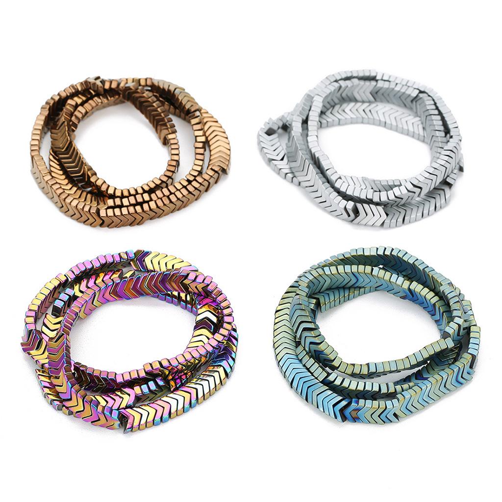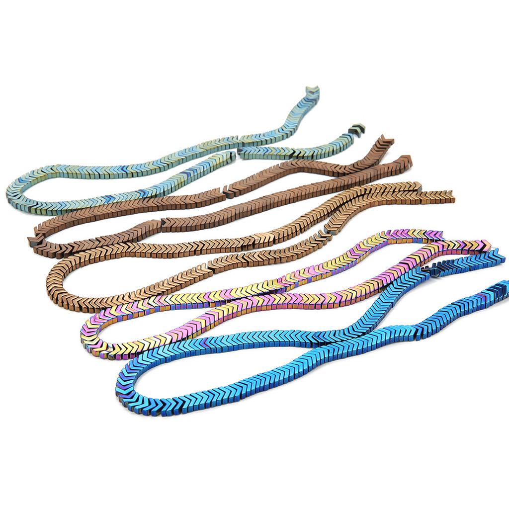 Natural Hematite No magnetic V Shape colored Metallic Coated, used Vacuum plating skill so the bead will fadeless and rustless with shiny gloss.