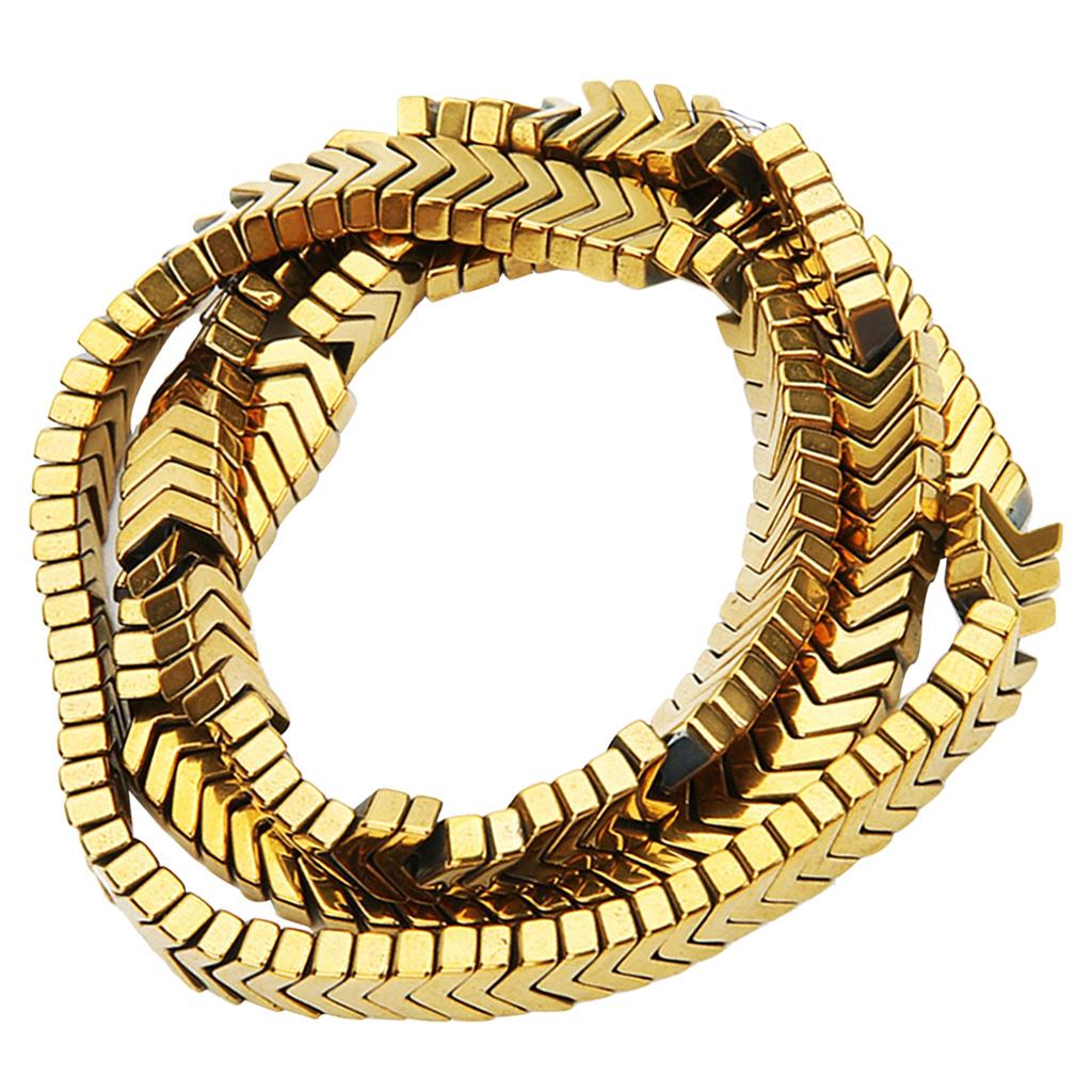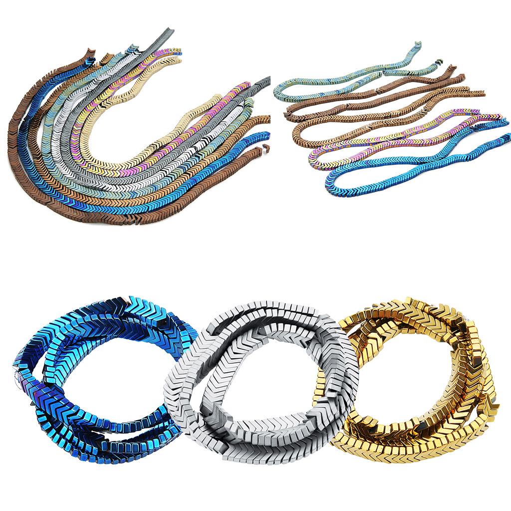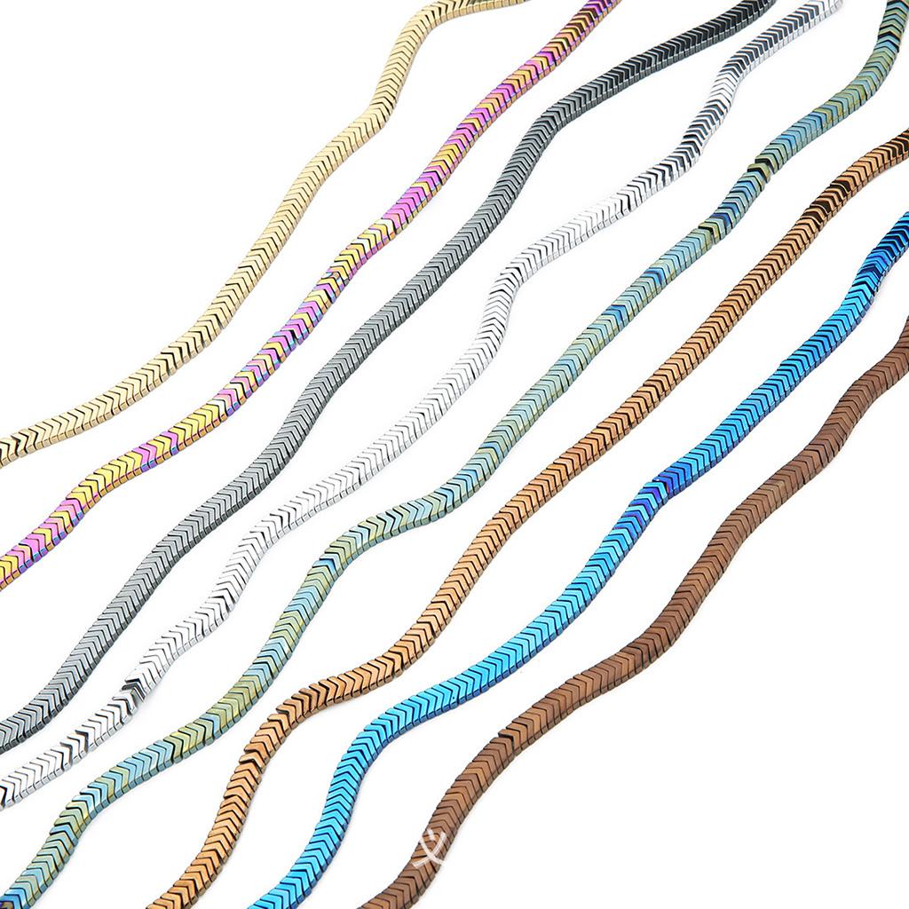 Natural Hematite No magnetic V Shape colored Metallic Coated, used Vacuum plating skill so the bead will fadeless and rustless with shiny gloss.