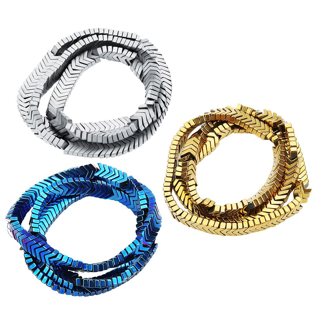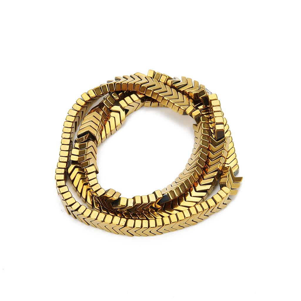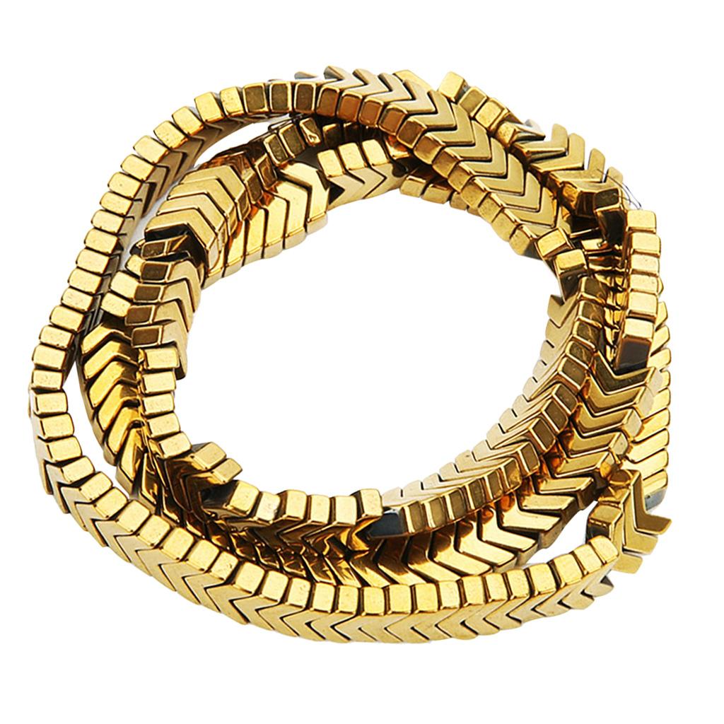 Natural Hematite No magnetic V Shape colored Metallic Coated, used Vacuum plating skill so the bead will fadeless and rustless with shiny gloss.