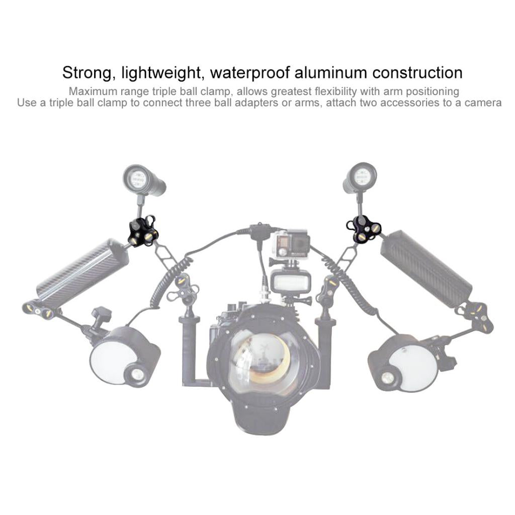 Triple Ball Clamp Mount Underwater 1/4" Screw Flash Butterfly Clip for 1" Ball Arm and Accessories.