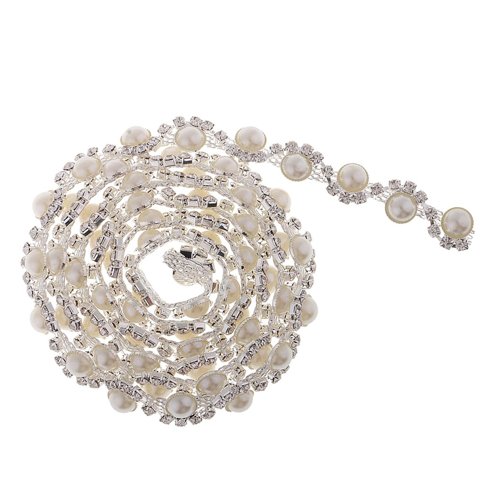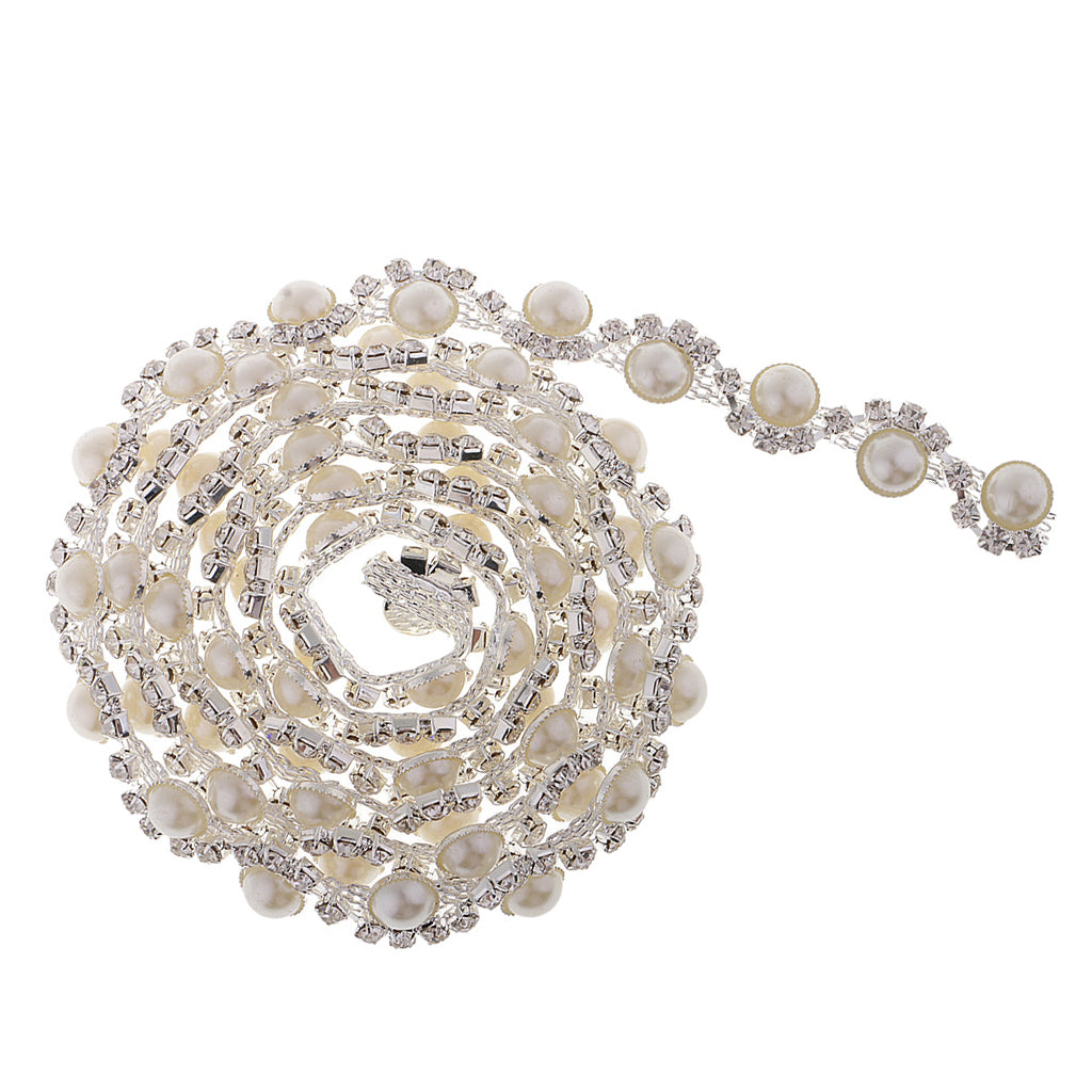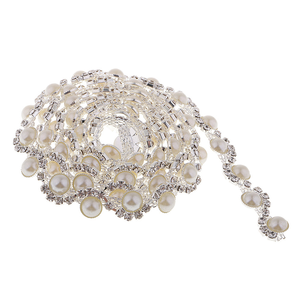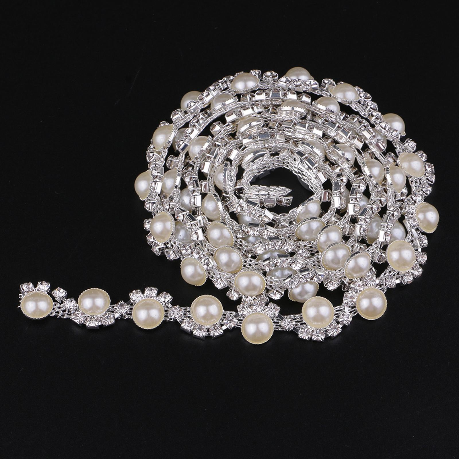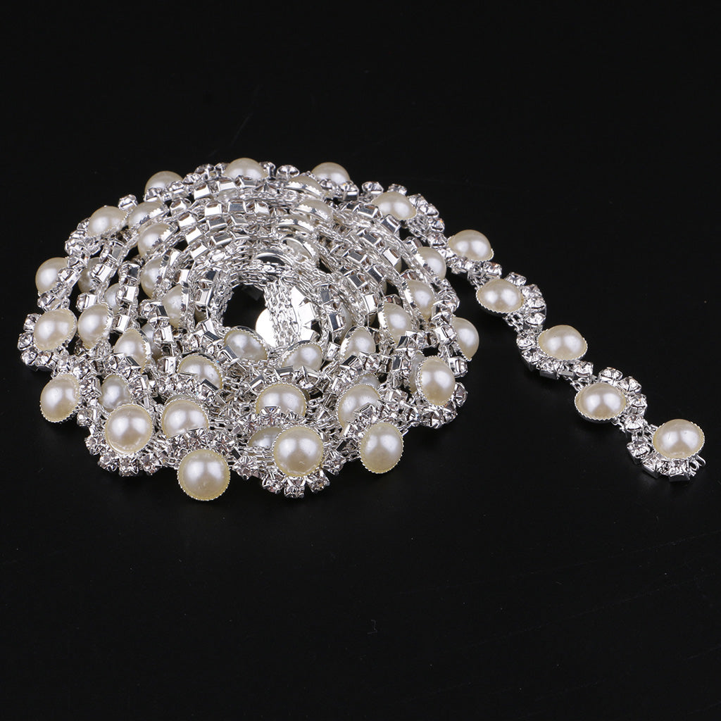 1 Yard length pearl and rhinestone chain sewing trim for DIY accessories.