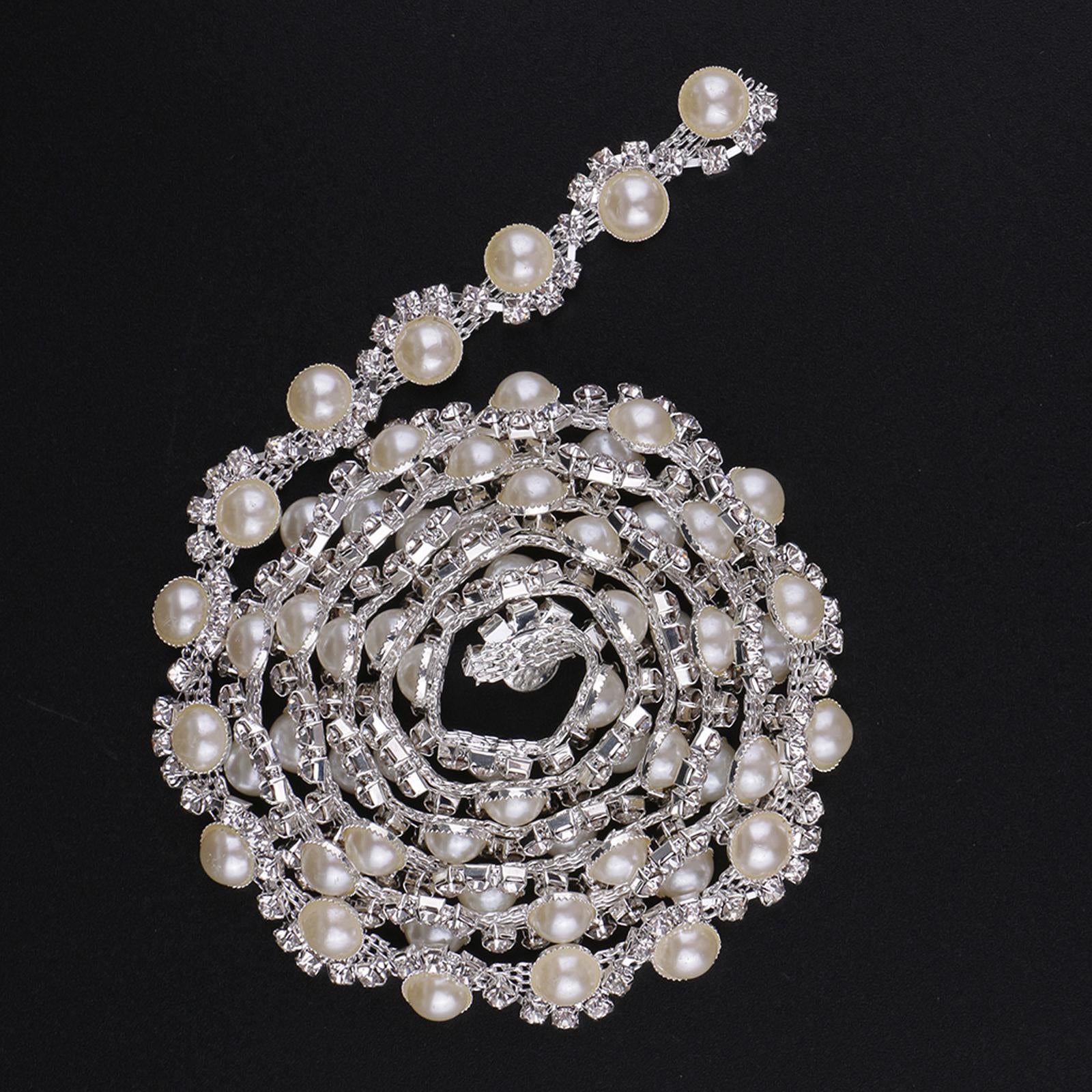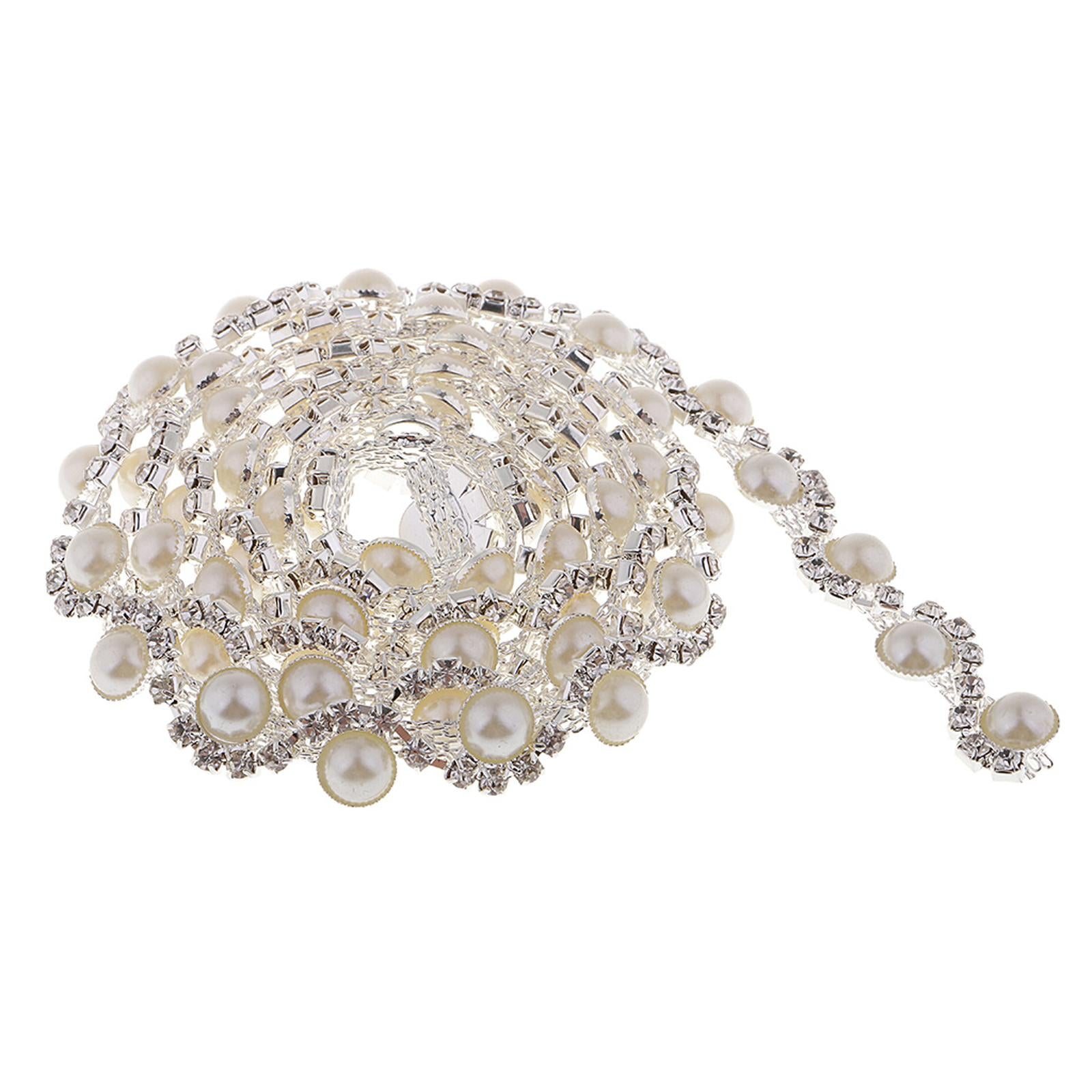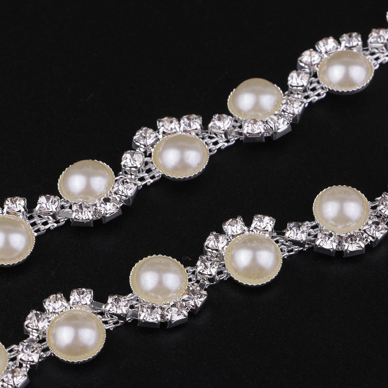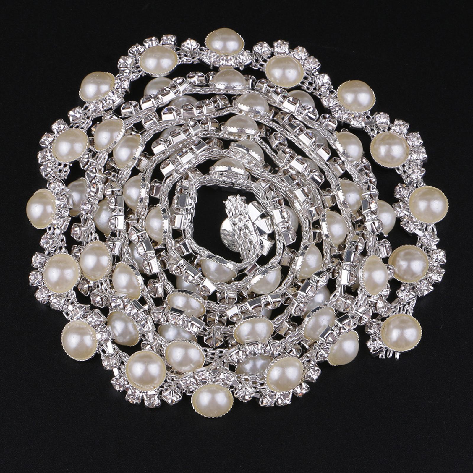 1 Yard length pearl and rhinestone chain sewing trim for DIY accessories.