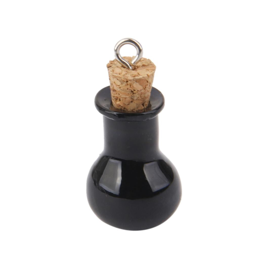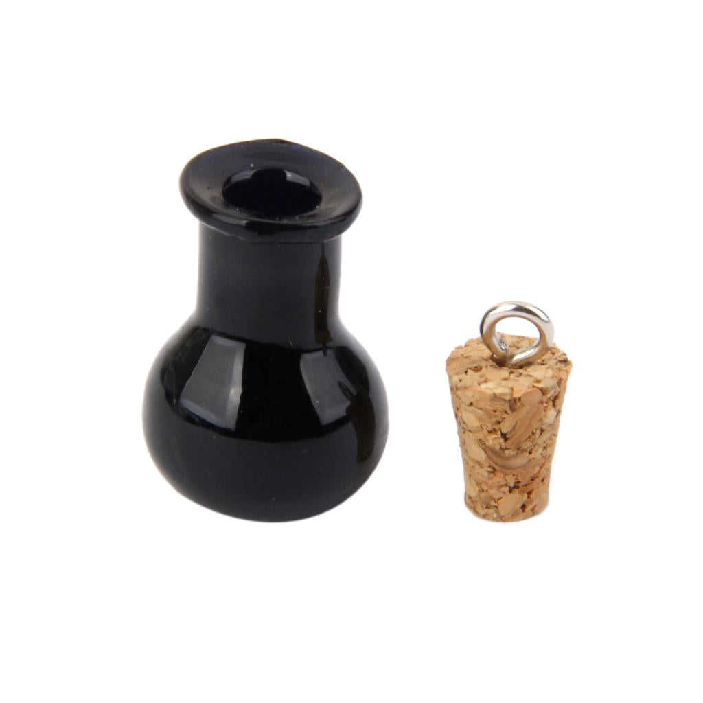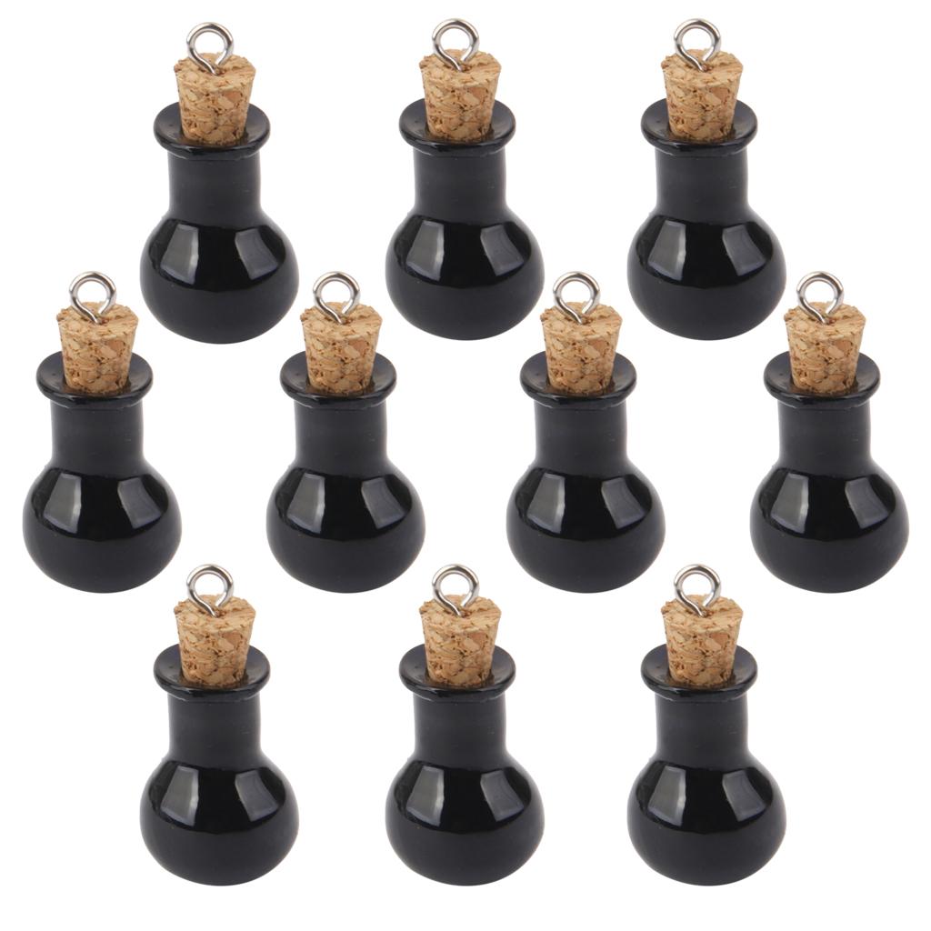 10 Glass Cork Bottle Flat Bulb Jars Vials Wishing Bottles DIY Pendant Black
