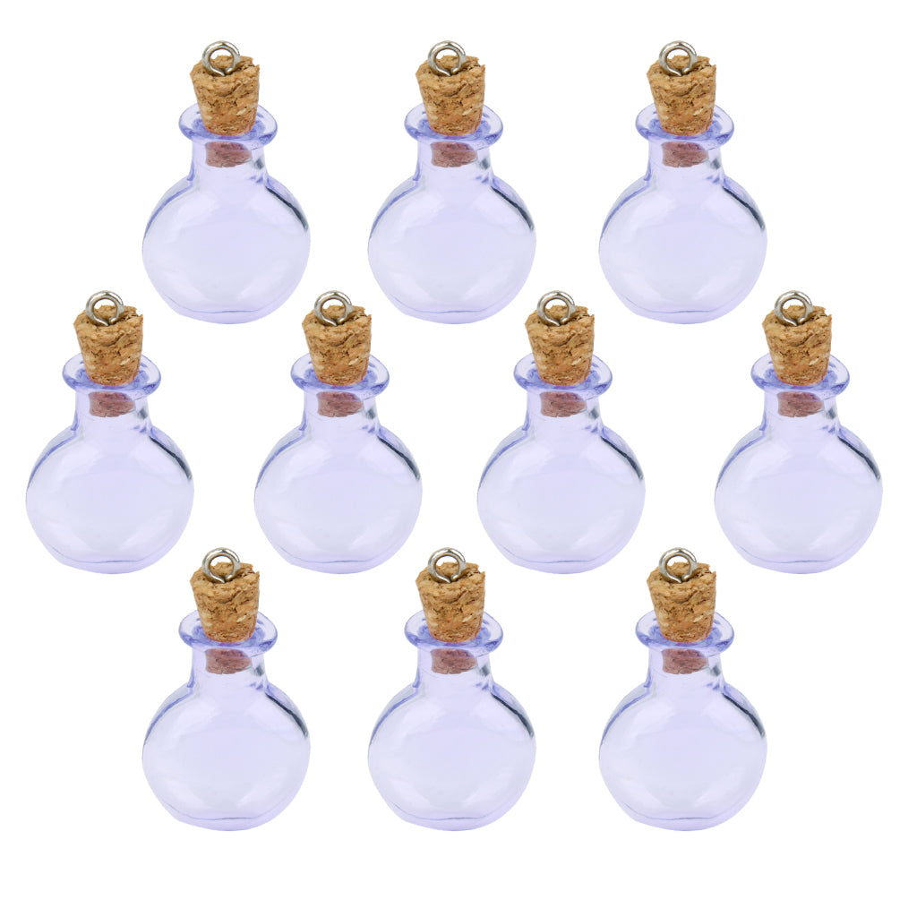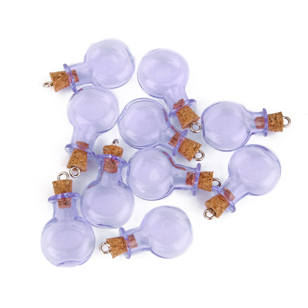 10 Glass Cork Bottles Flat Round Vial Wishing Bottle DIY Pendant Loop Purple