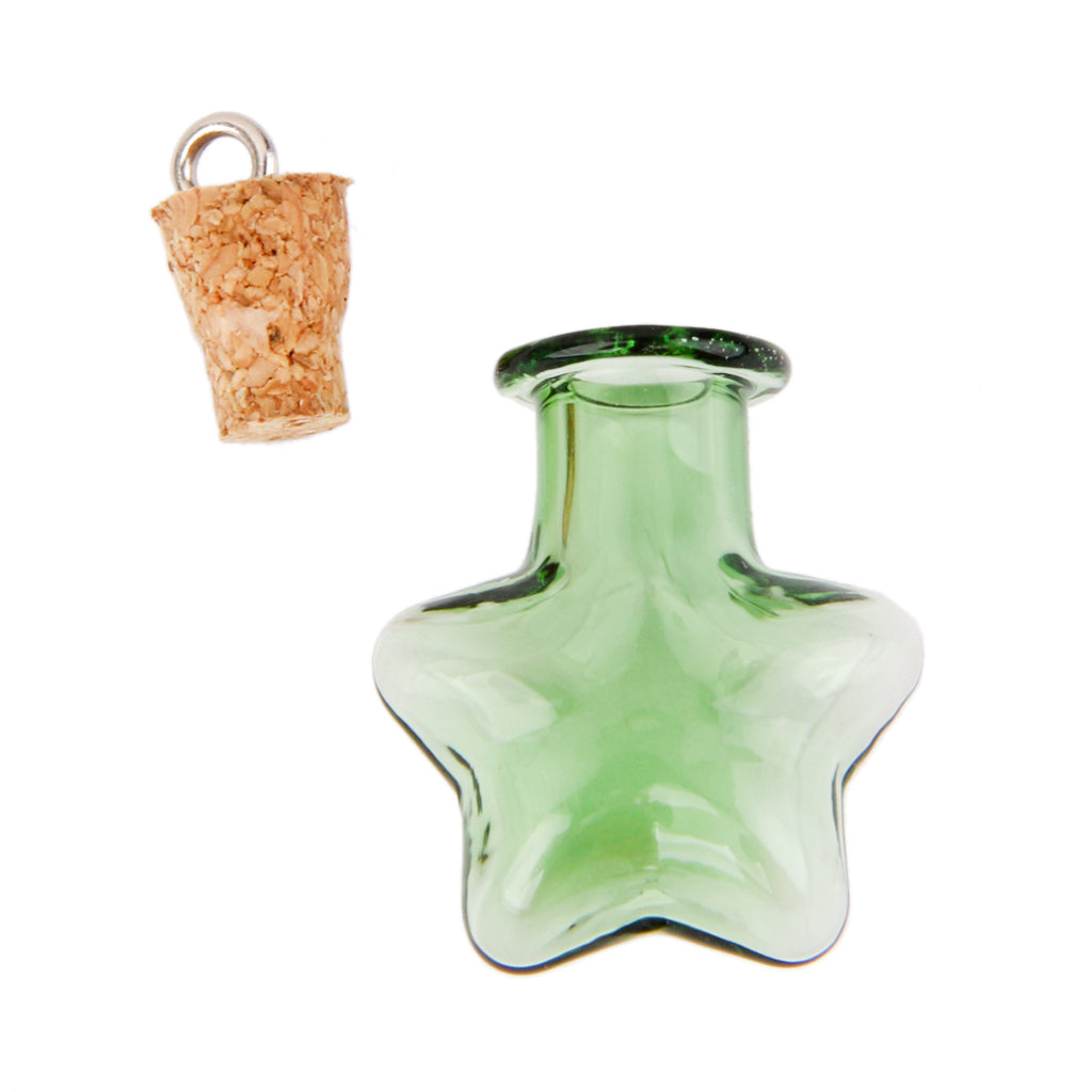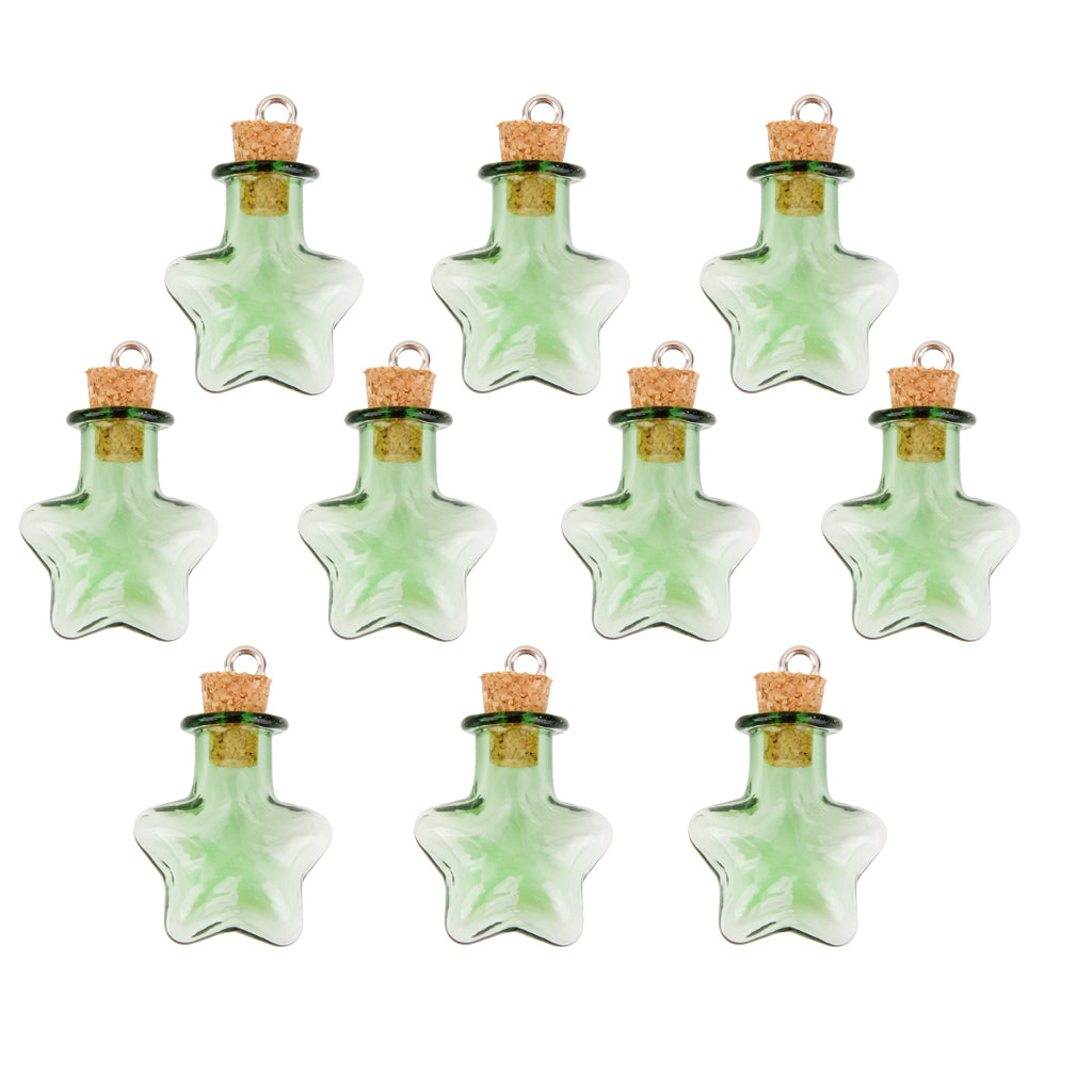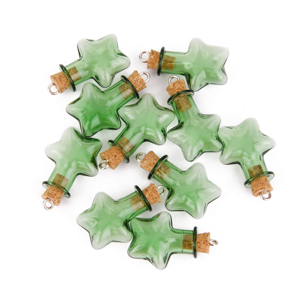 10 Glass Cork Five StarJars Vial Wishing Bottle w/ Loop DIY Pendants Green