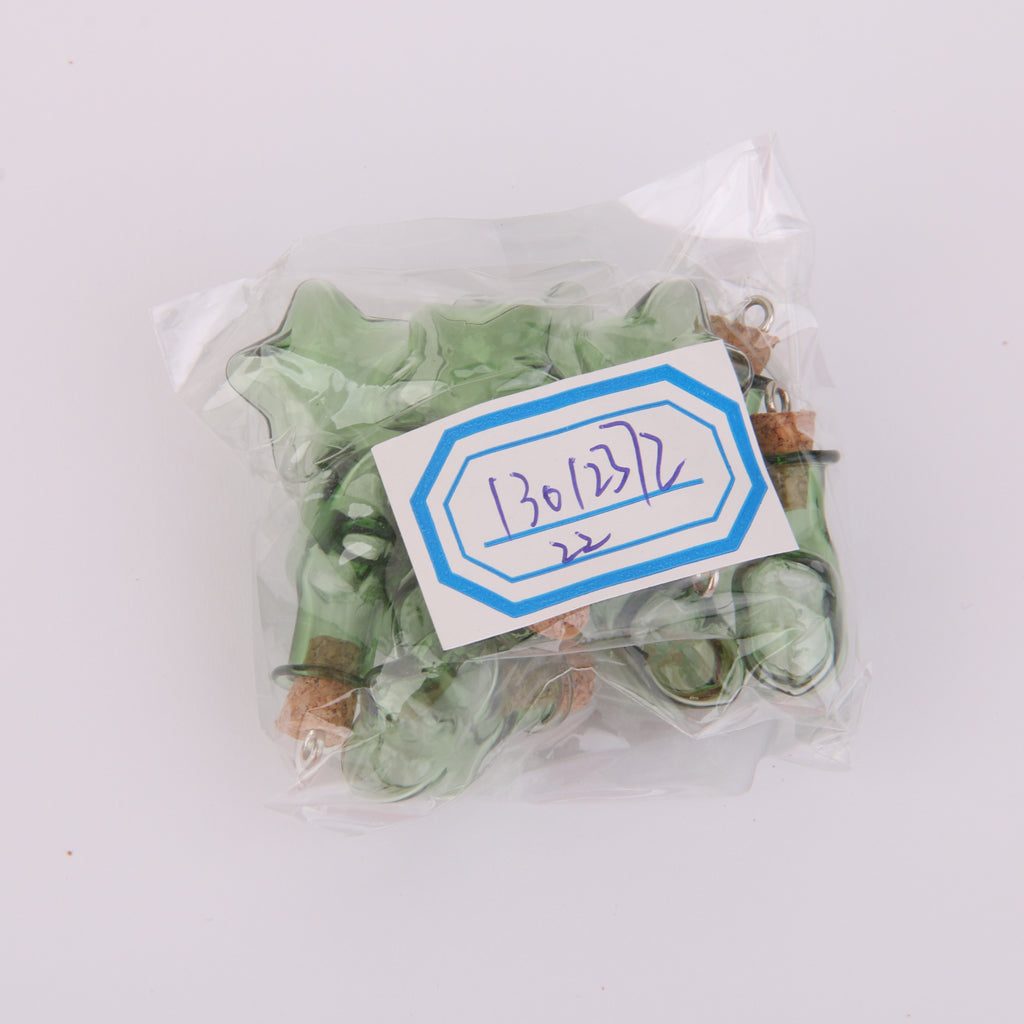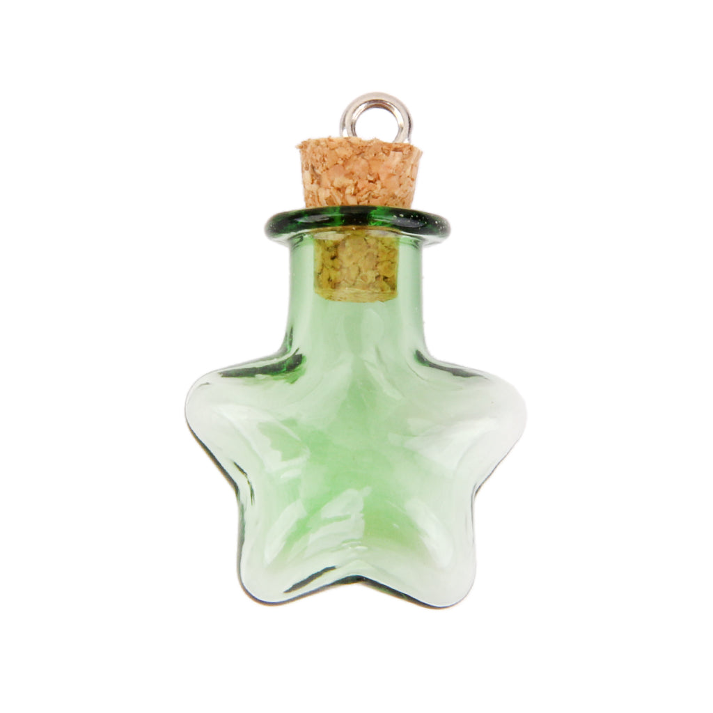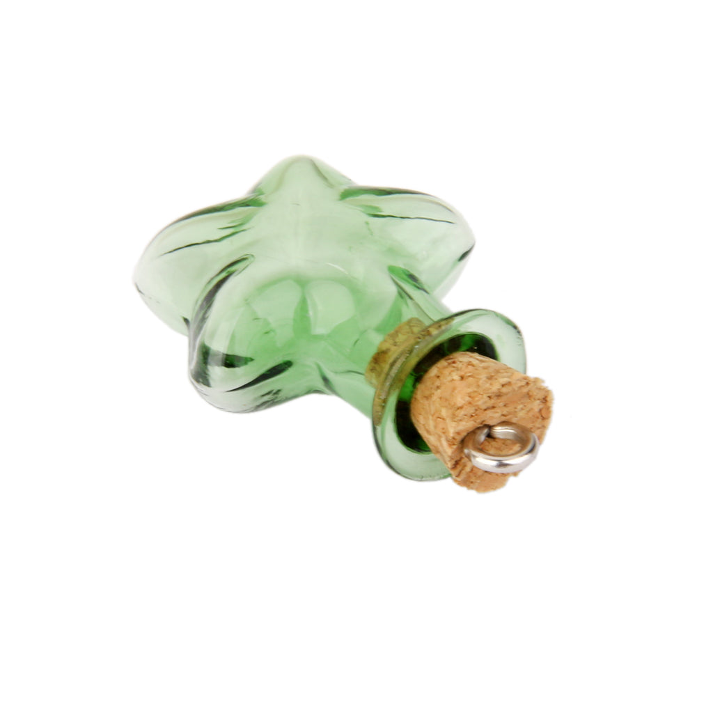 10 Glass Cork Five StarJars Vial Wishing Bottle w/ Loop DIY Pendants Green