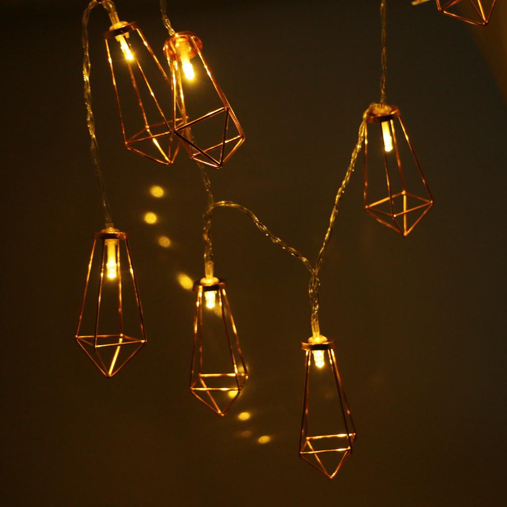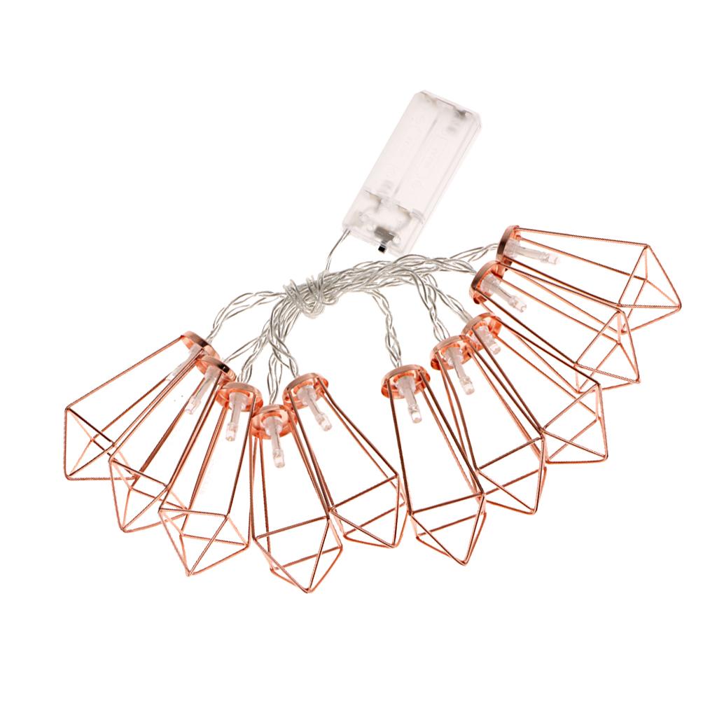 1. 10 LED metal rose gold diamond geometric string lightsPackage Includes: