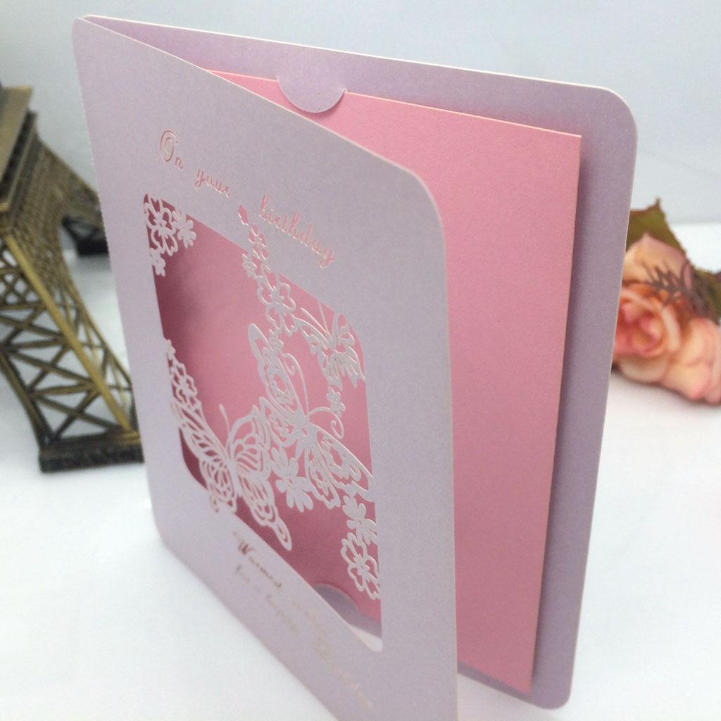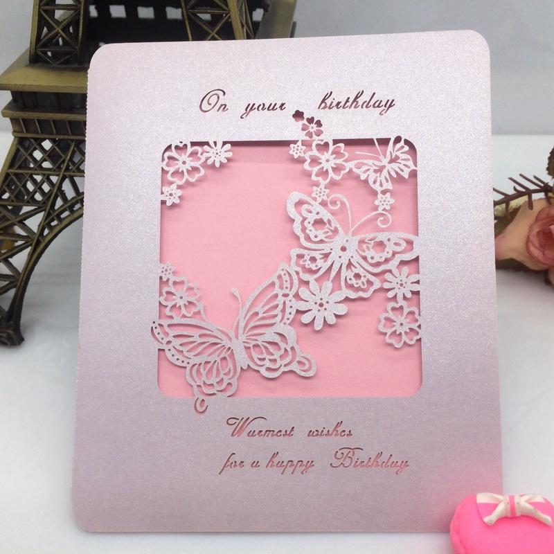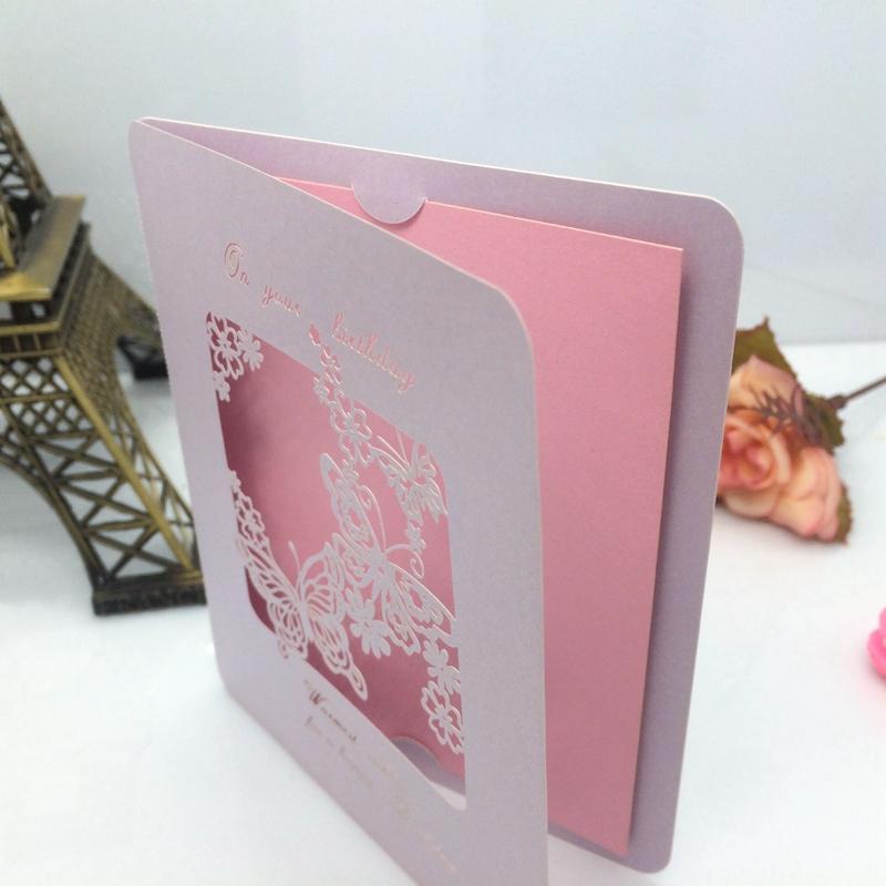 10/lot Handmade HAPPY BIRTHDAY Greeting Card Hollow out Butterfly Cover-Pink