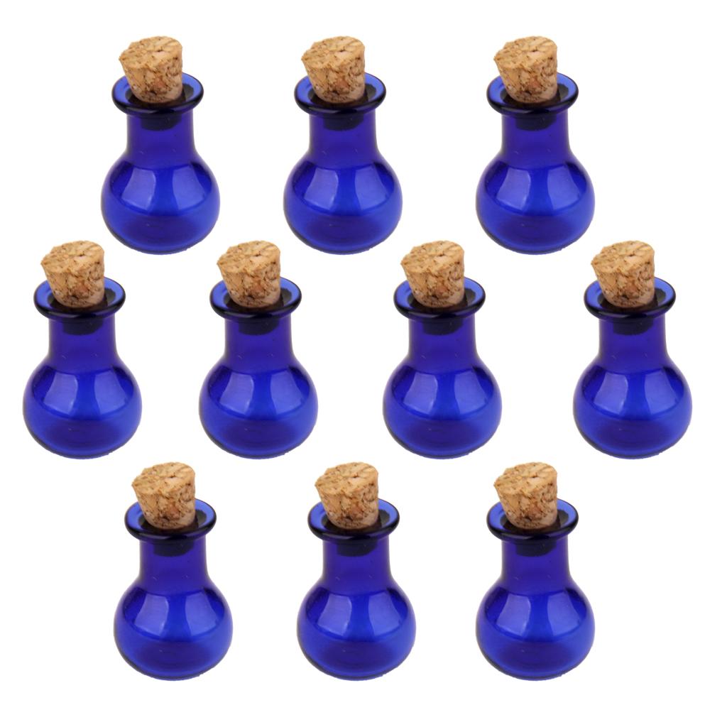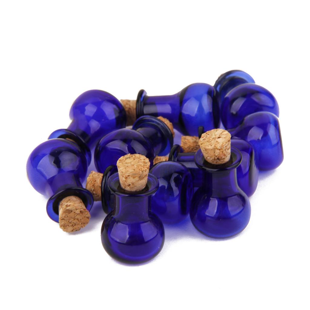 10 Mini Glass Bottle Jars Vials Bottle Pendant with Corks - Flat Bulb