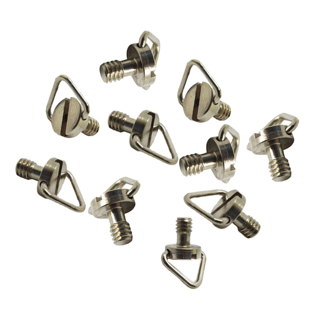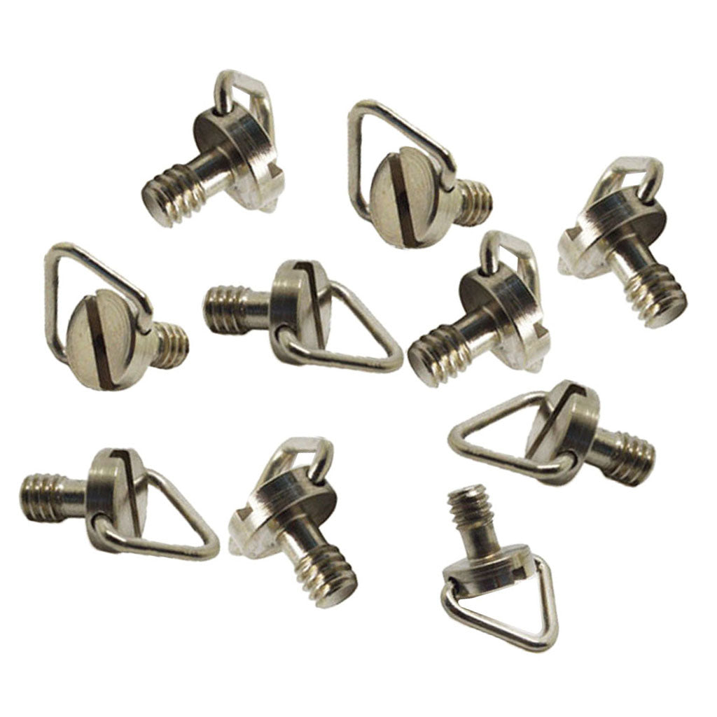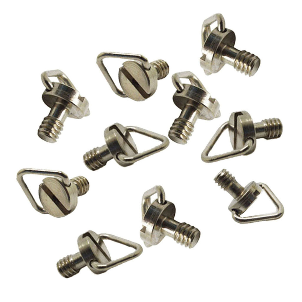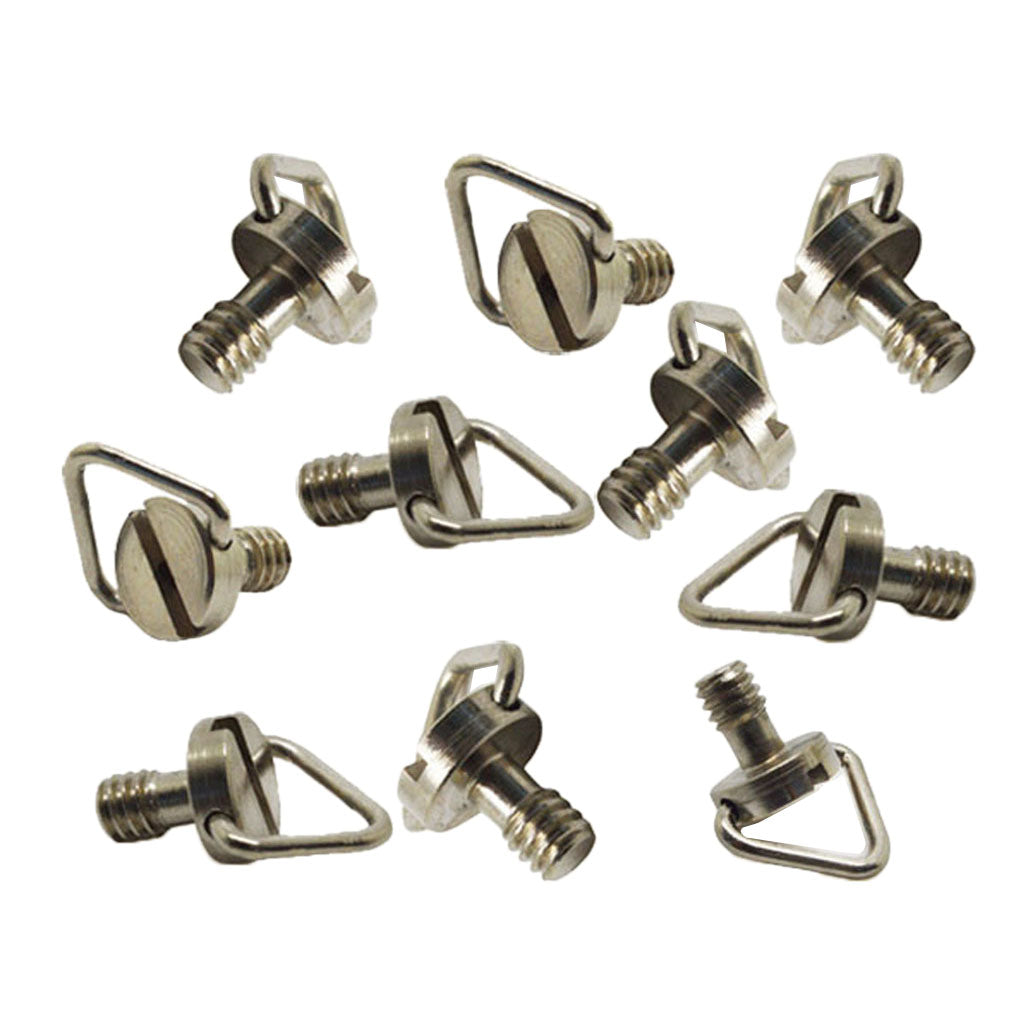 10 pieces 1/4"" 20 thread stainless steel (metal) camera screws with a lanyard hole triangle ring.