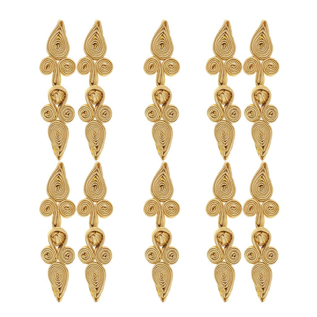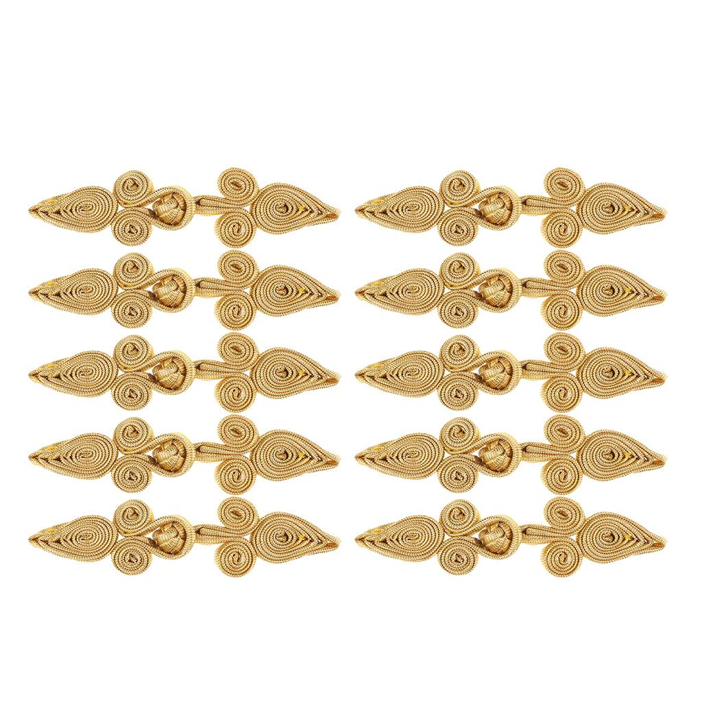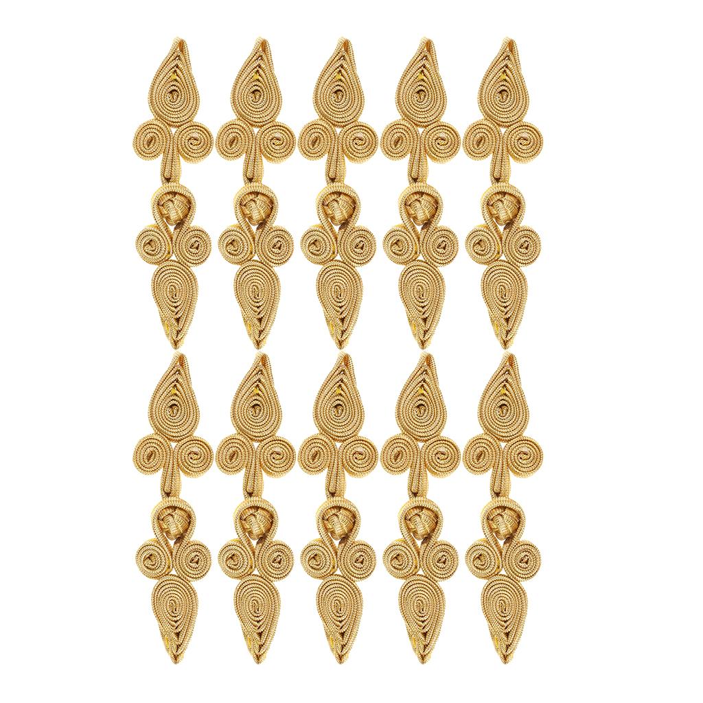 10 Pairs Chinese Frog Closure Buttons Knot Sewing Fasteners Gold