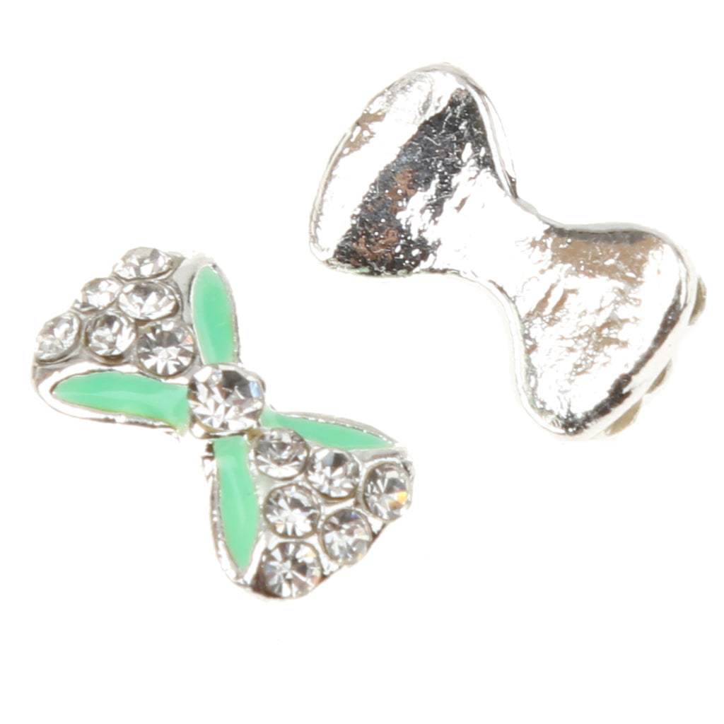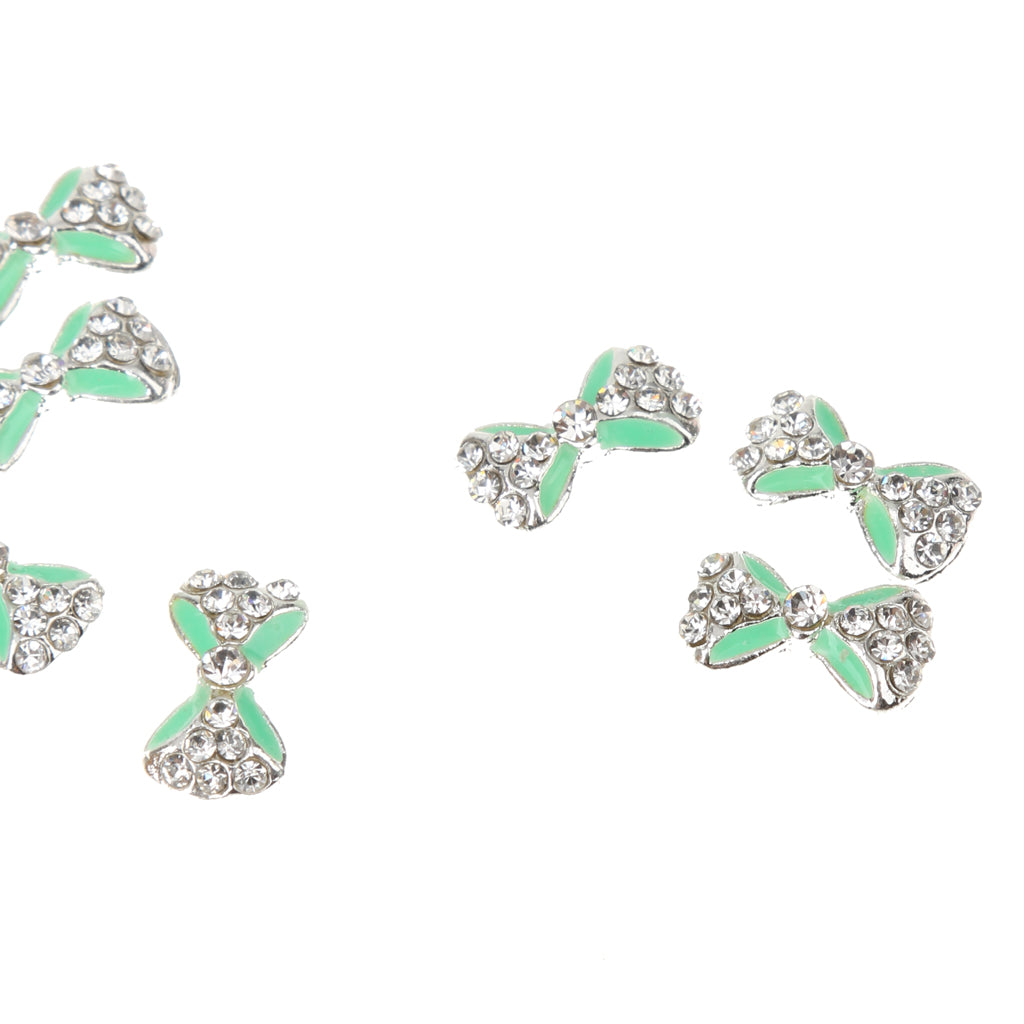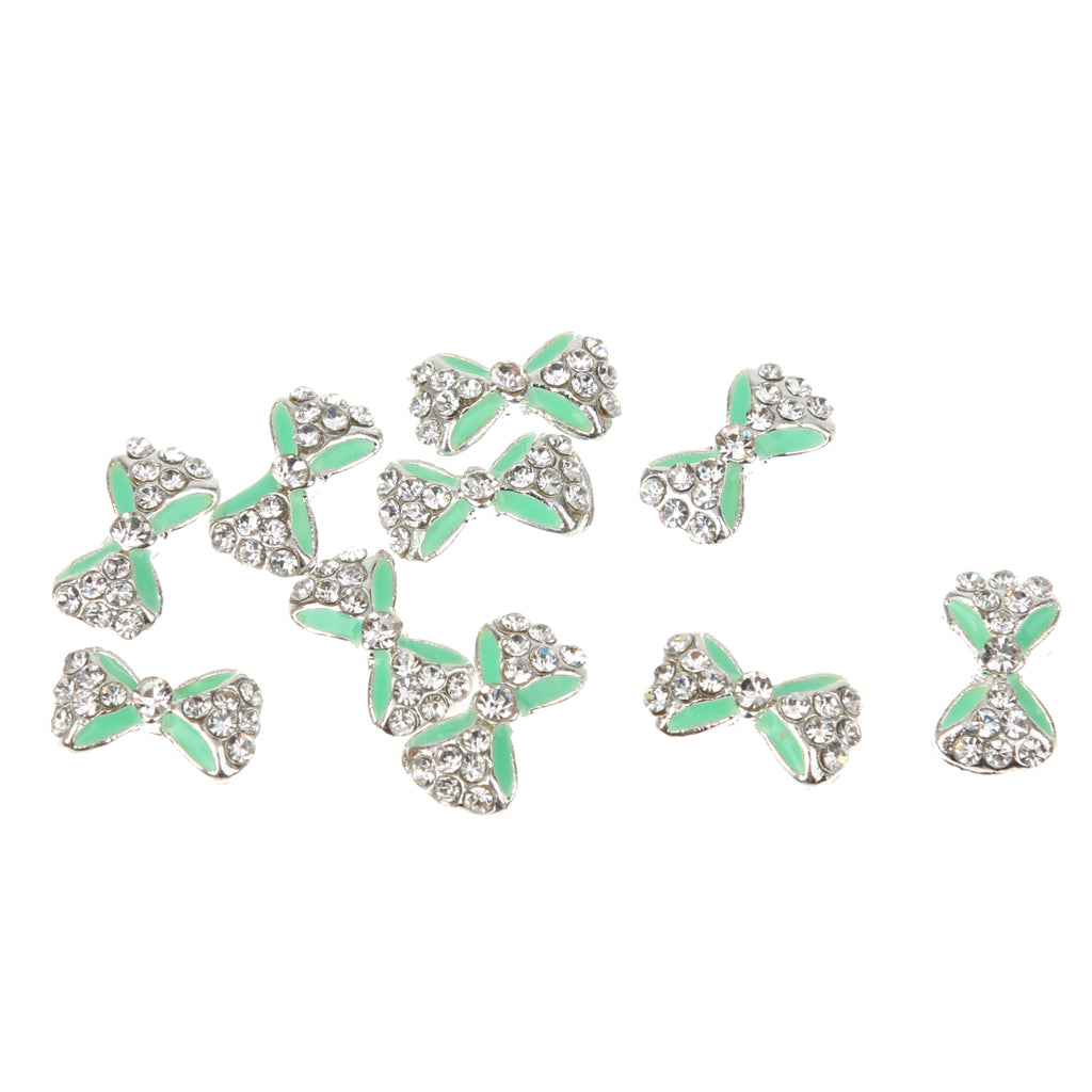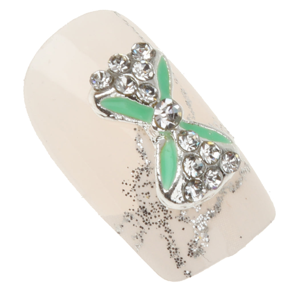 10 Pcs 3D Nail Art Tips Green Rhinestones Nail Tips