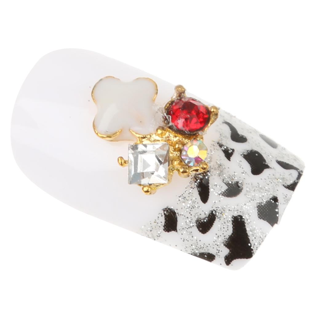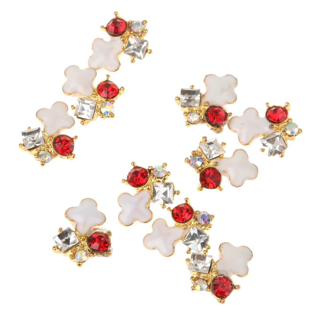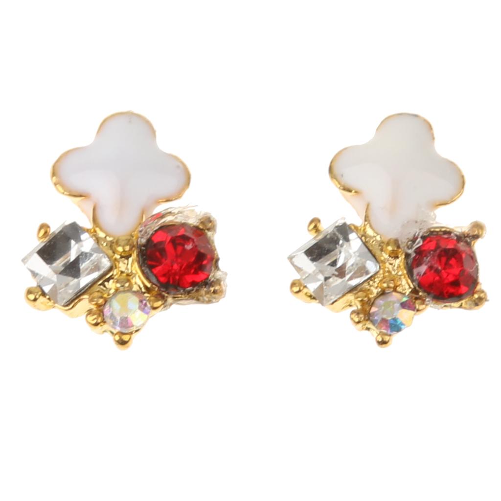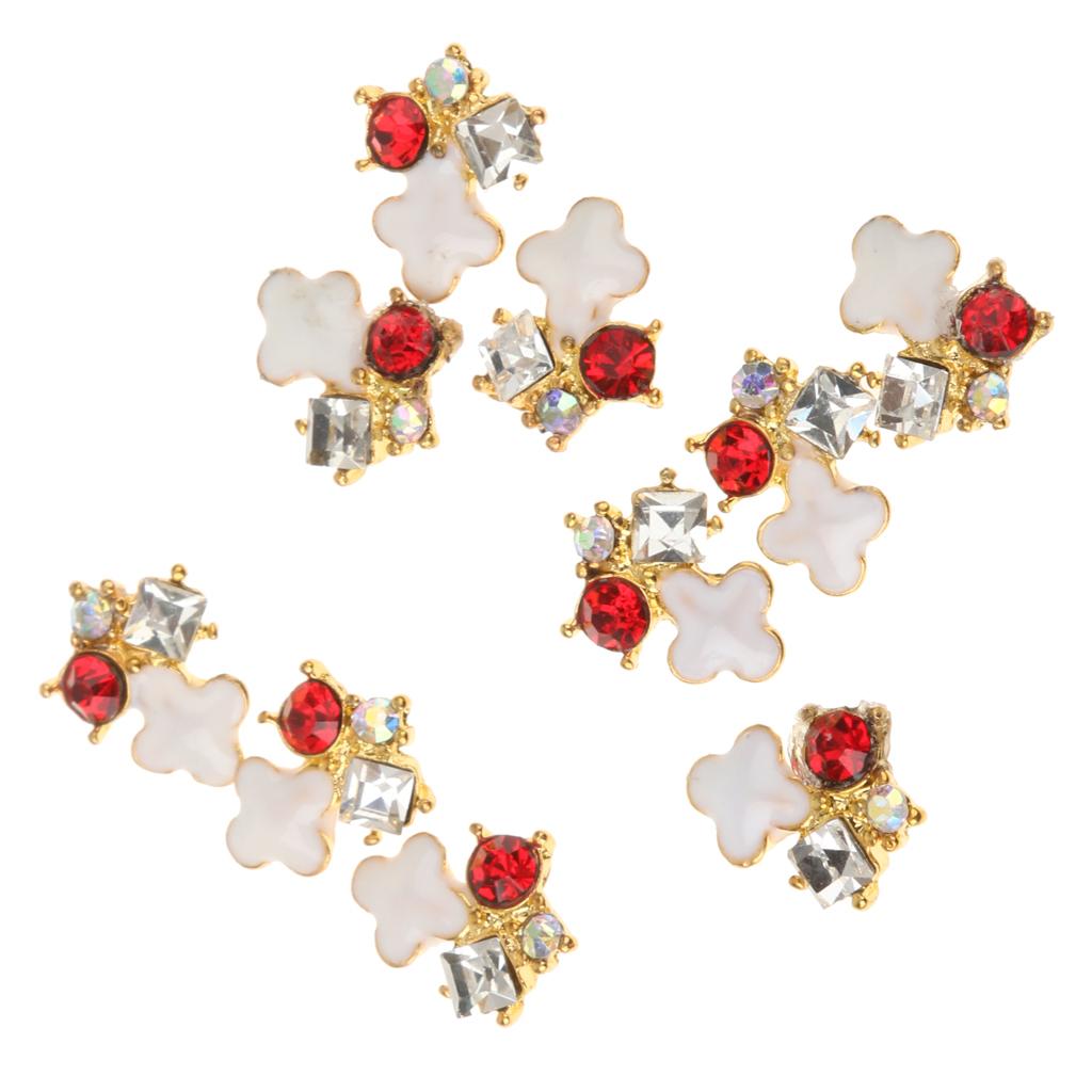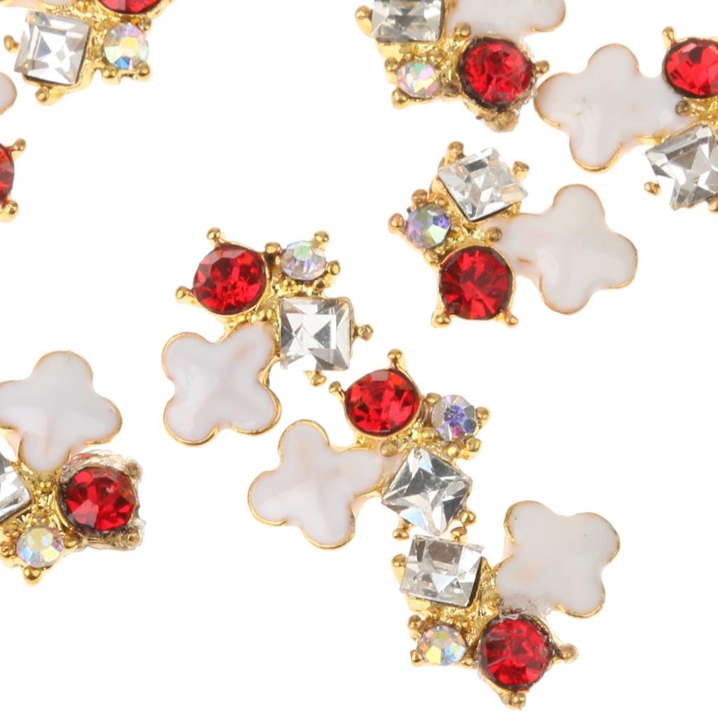 10 Pcs 3D Nail Art Tips Red Rhinestones Nail Tips