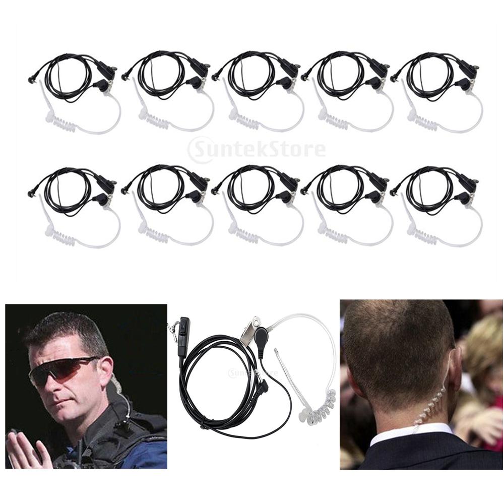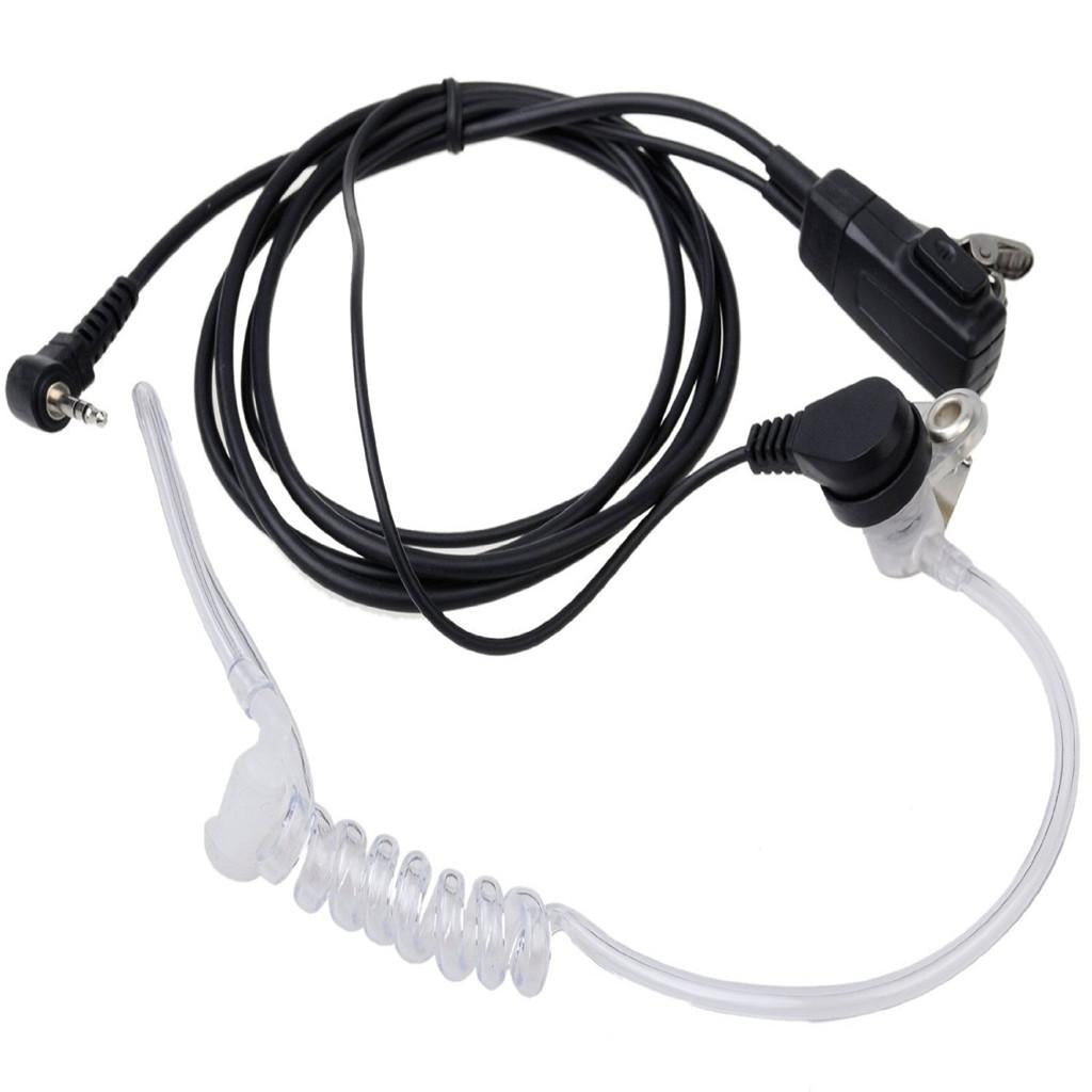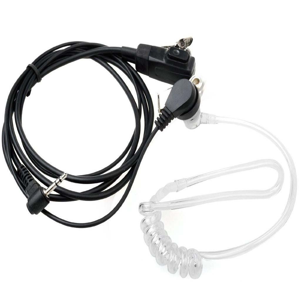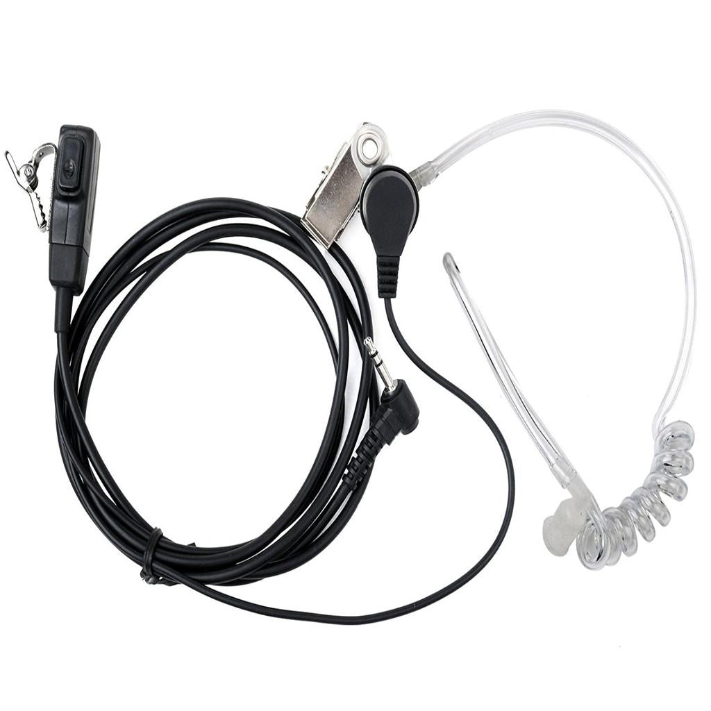 Walkie-talkie button-type transparent covert acoustic tube headset with hidden microphone inside PTT button.