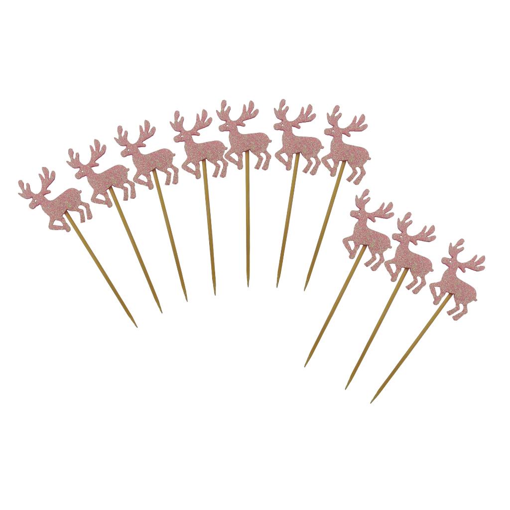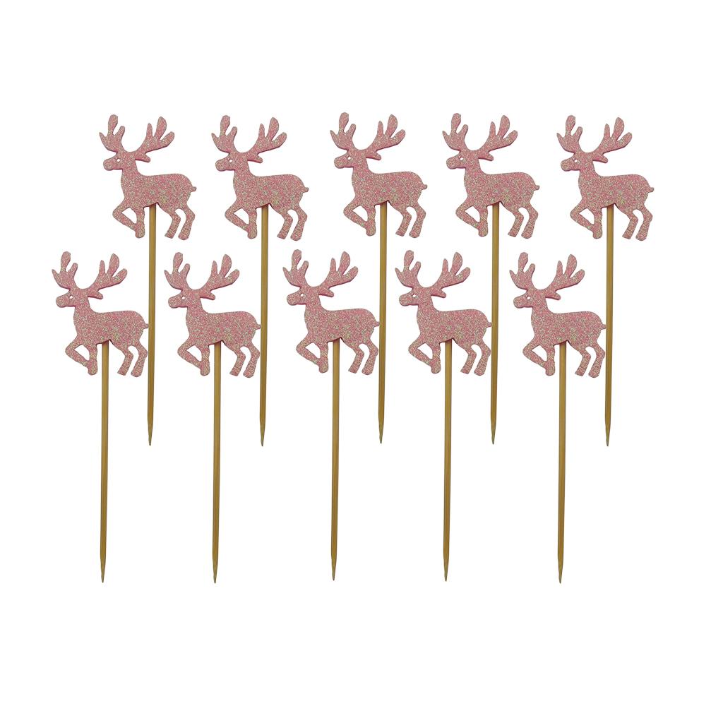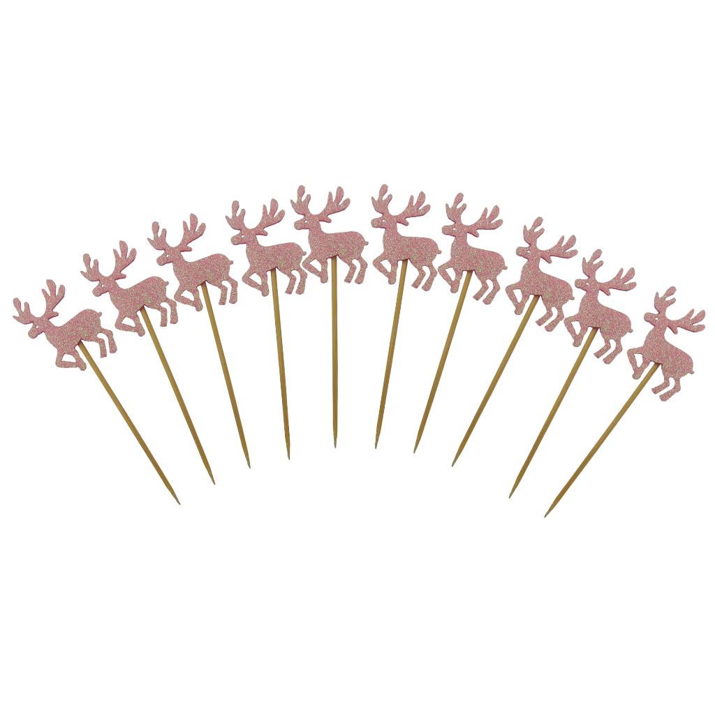 10 Pcs Reindeer Shape Birthday Cake Cake Topper Flags for Cake Decor Pink