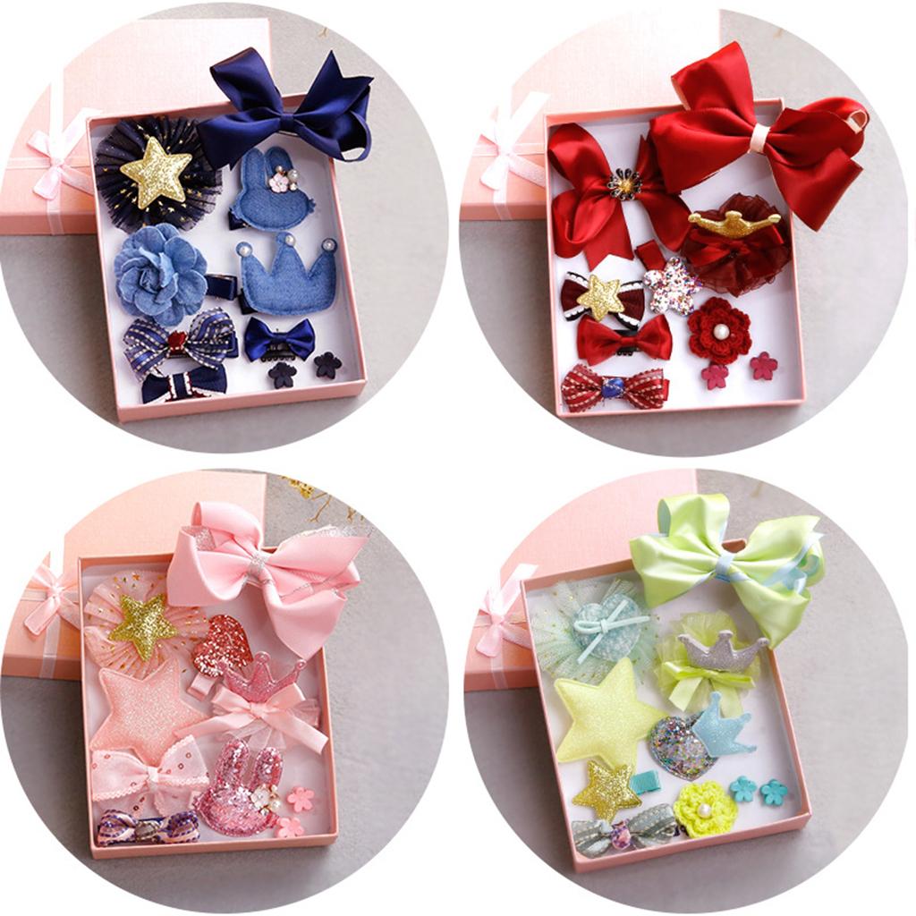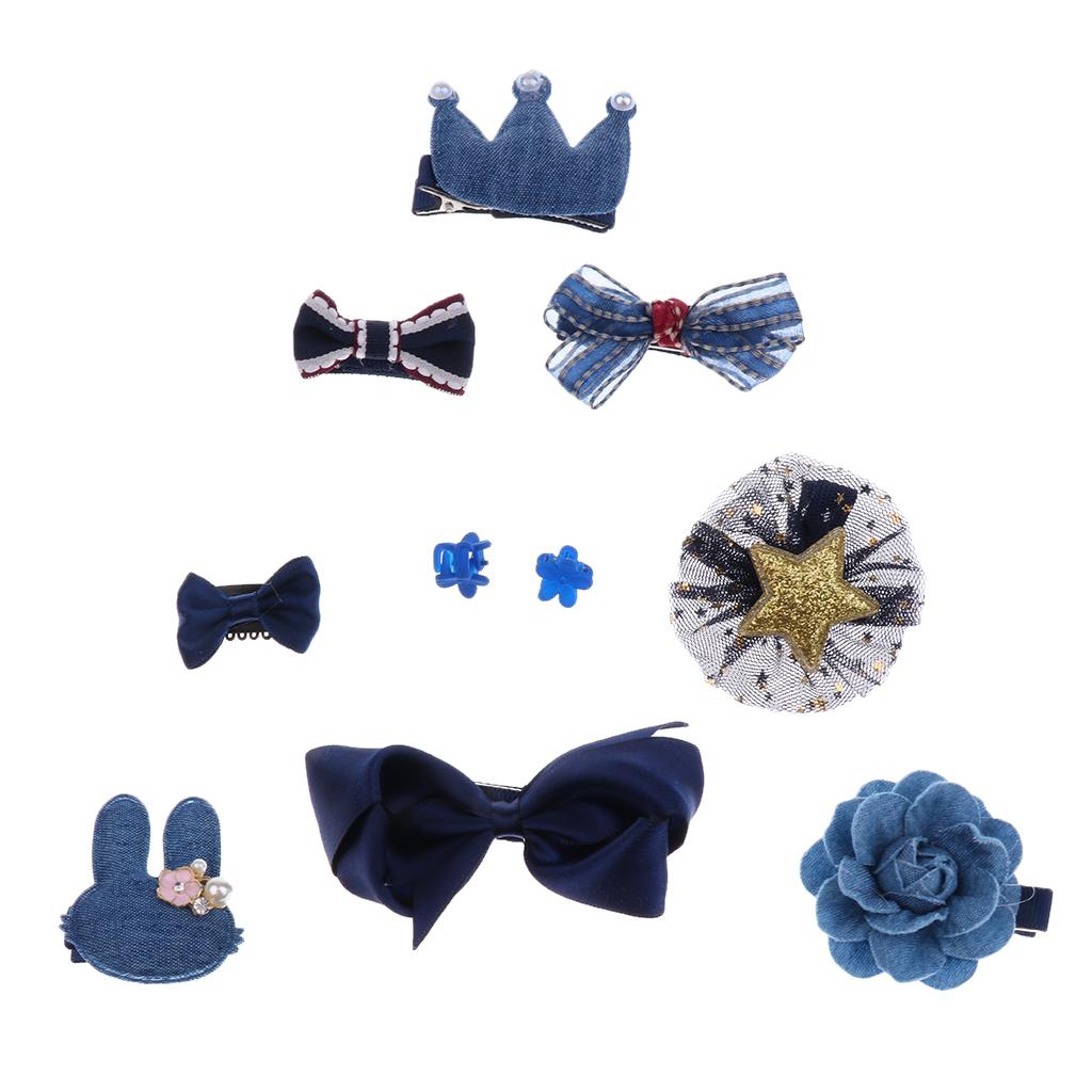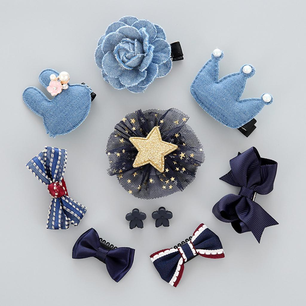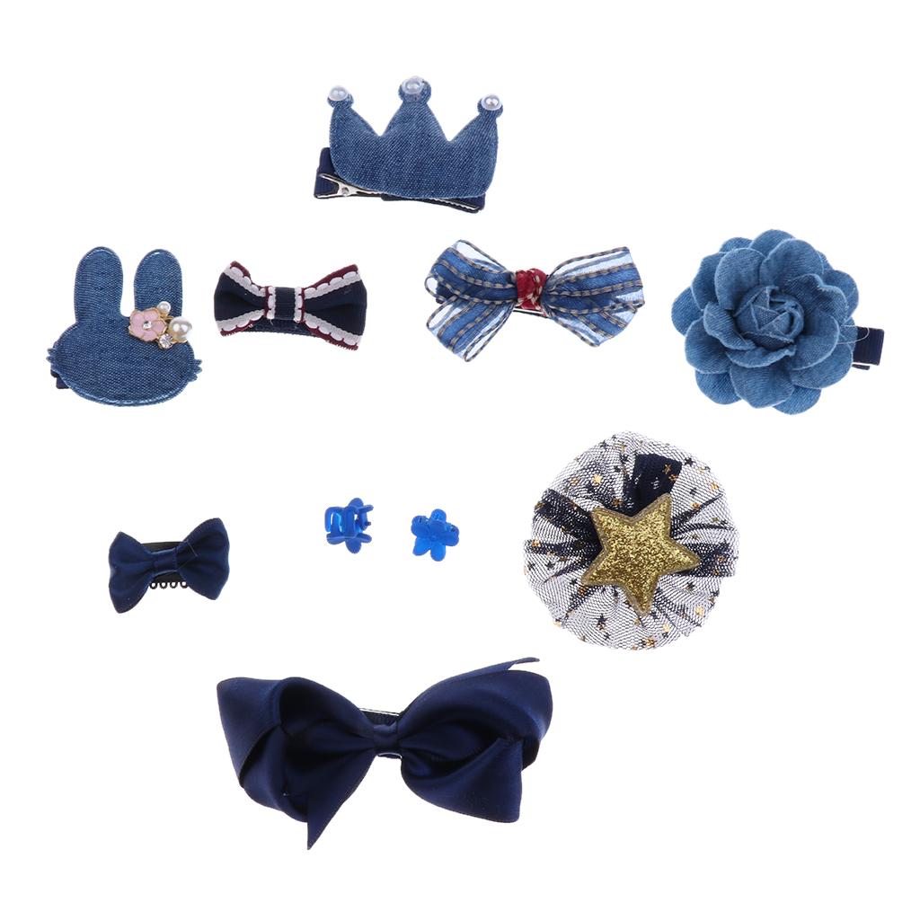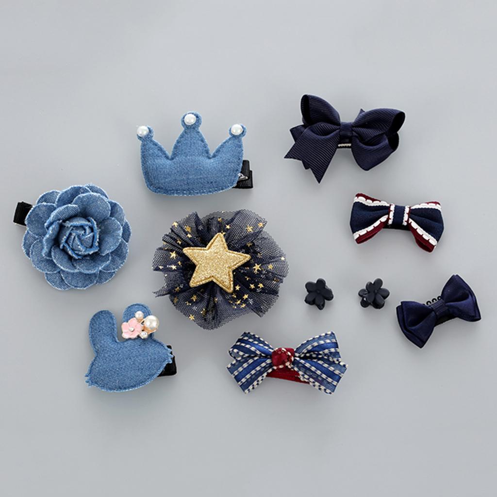 10 Pcs/set Kids Baby Girl Flower Bowknot Princess Hair Clip Hairpin Set Blue