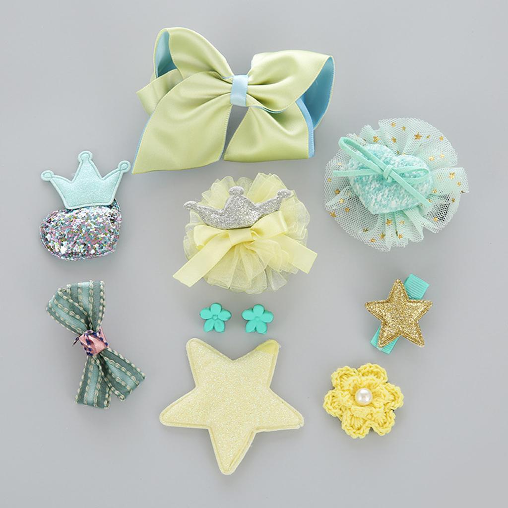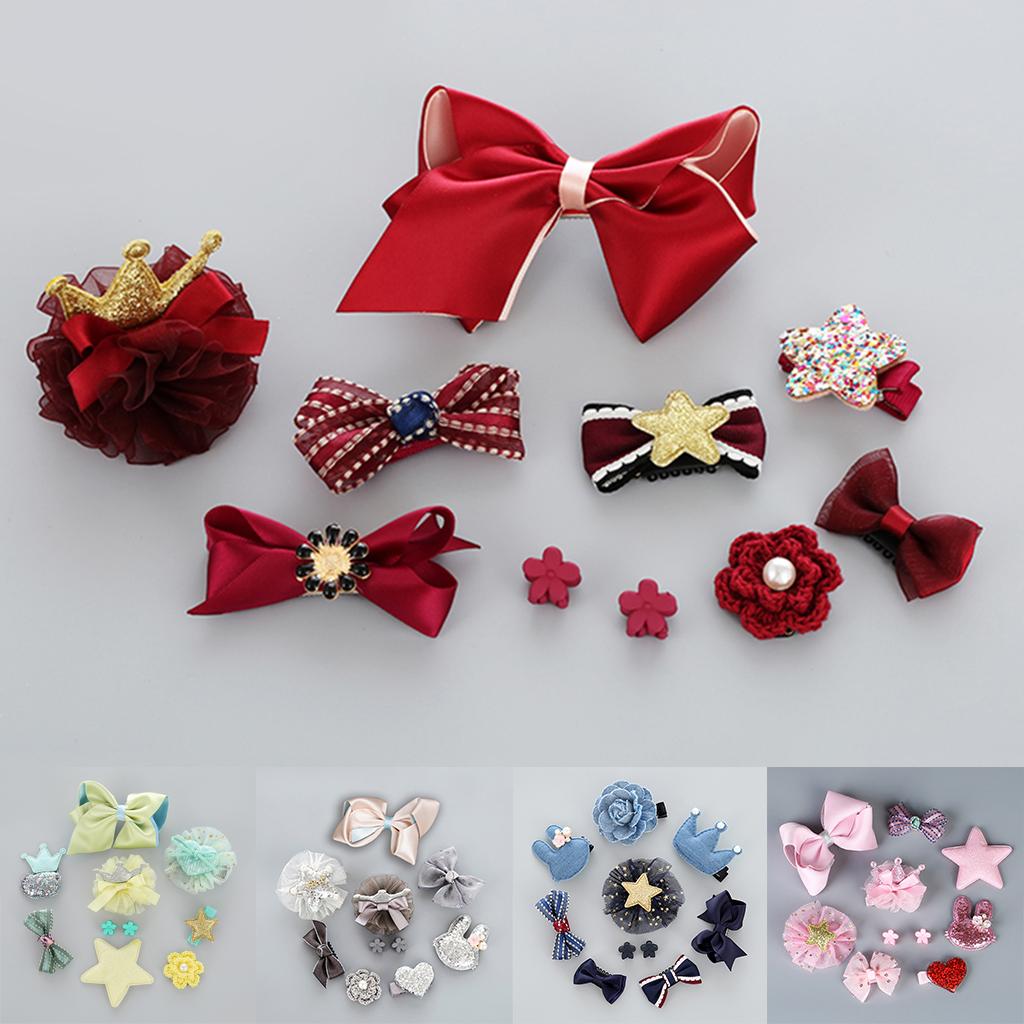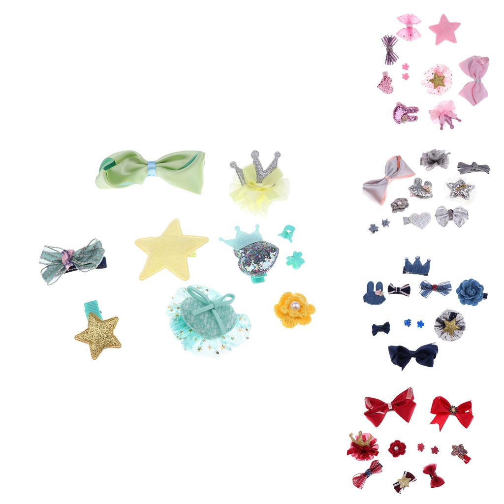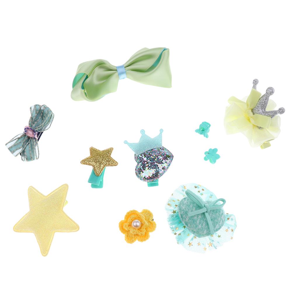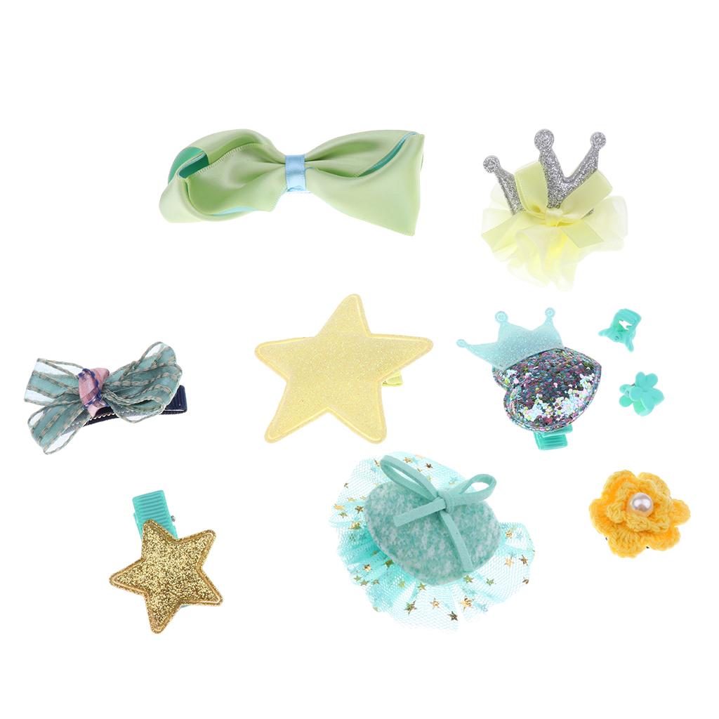 10 Pcs Ribbon Bow Flower Mixed Design Baby Girl Toddler Hair Clips.