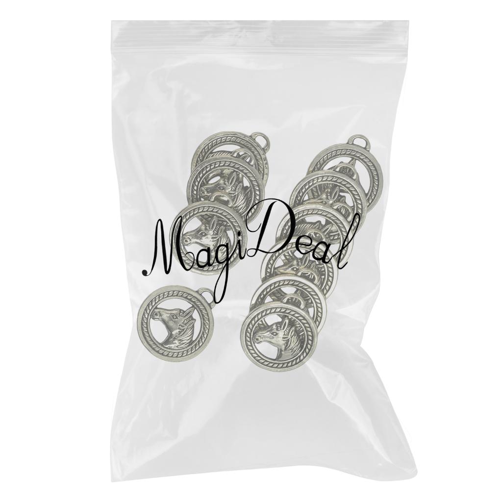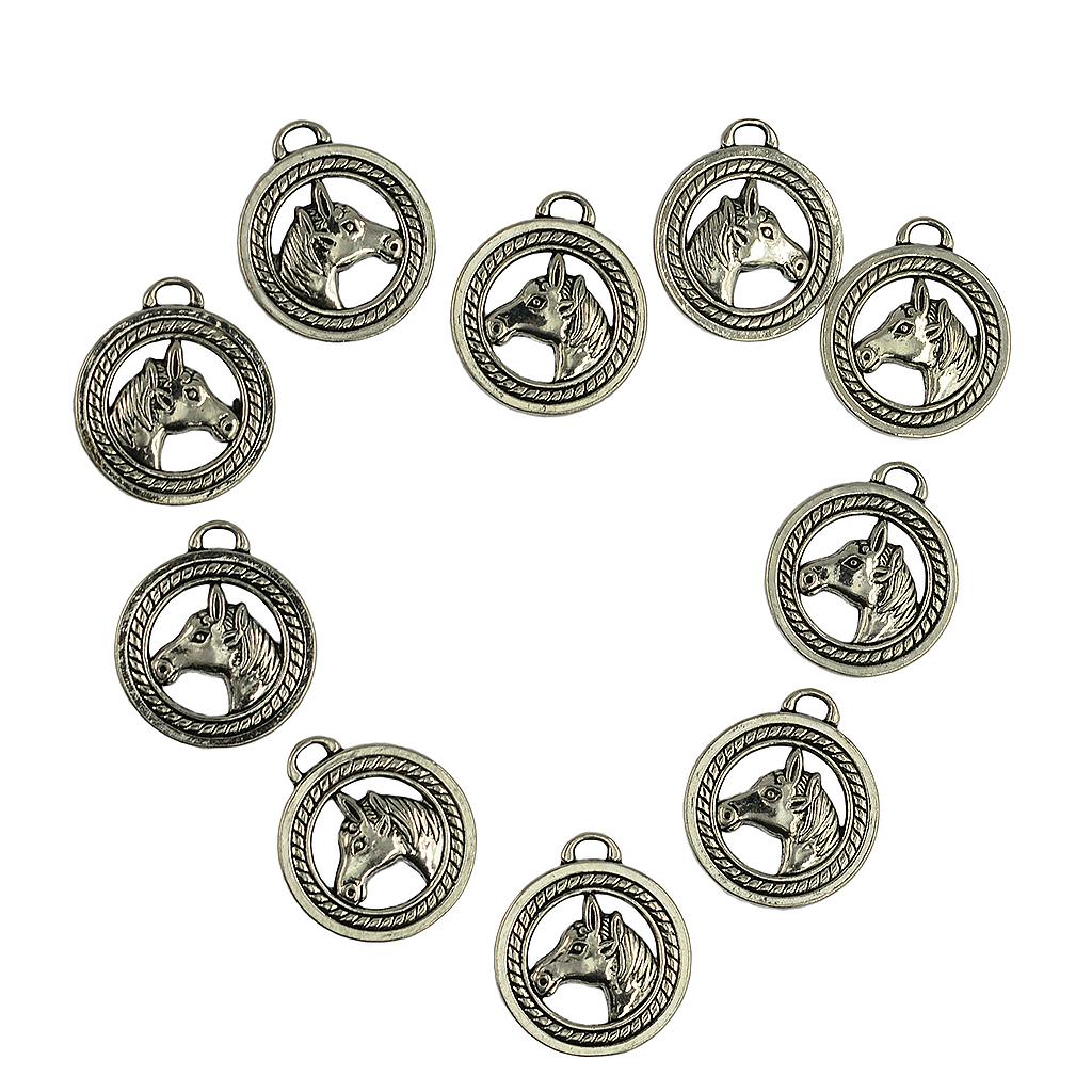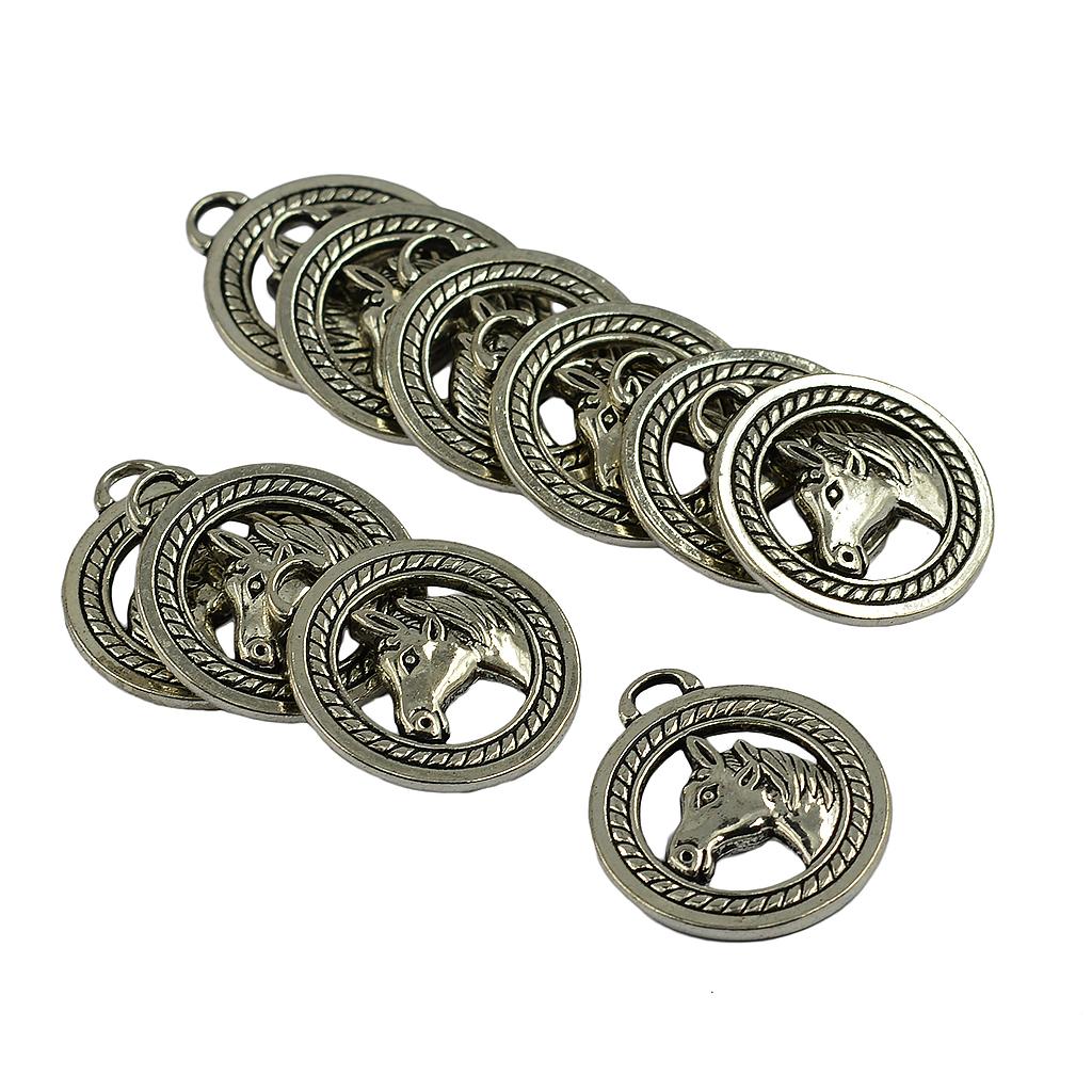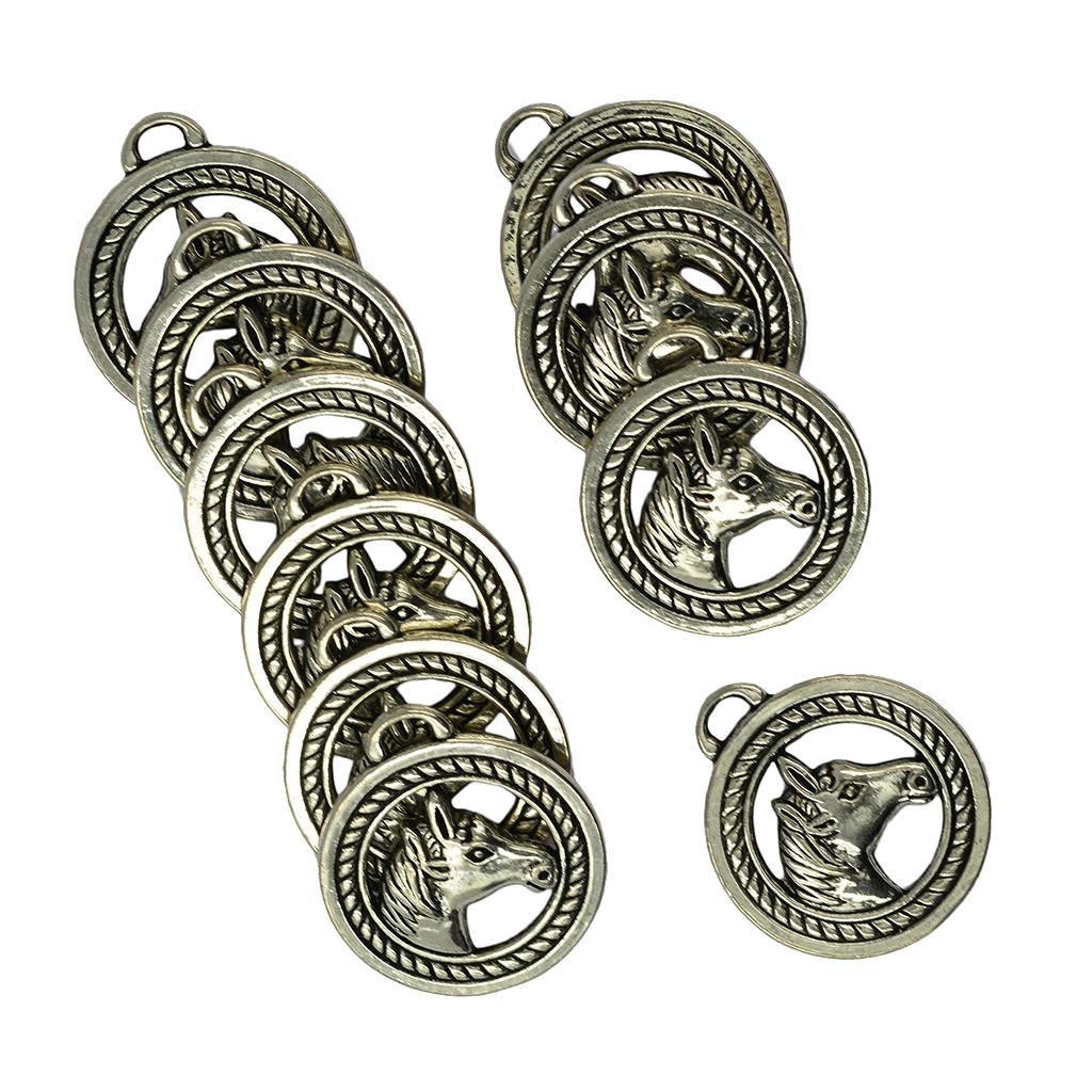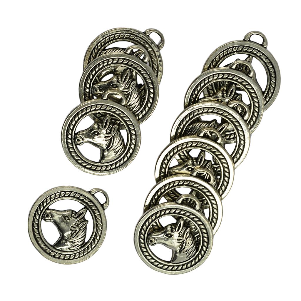 10 Pcs Tibetan Silver Western Horse Round Charms Pendants Jewelry DIY Making