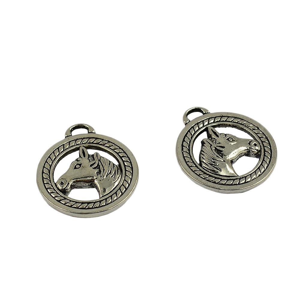 • 10Pcs Tibetan Silver Horse Head Round Charms Pendants