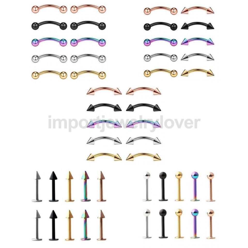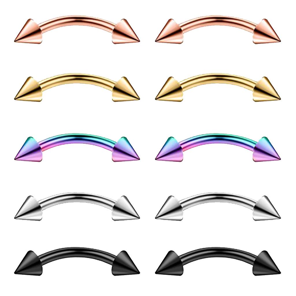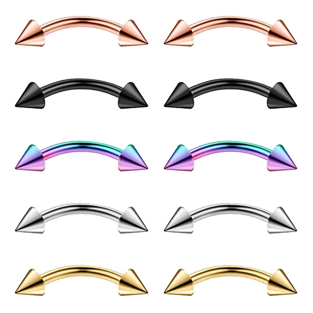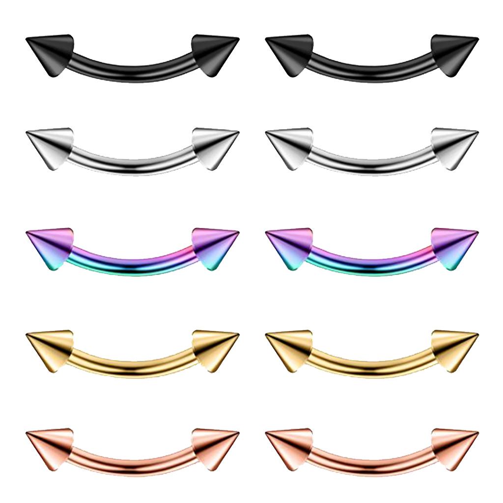 316L Stainless Steel Eyebrow Curved Bar Spike Barbell Body Piercing Ring.