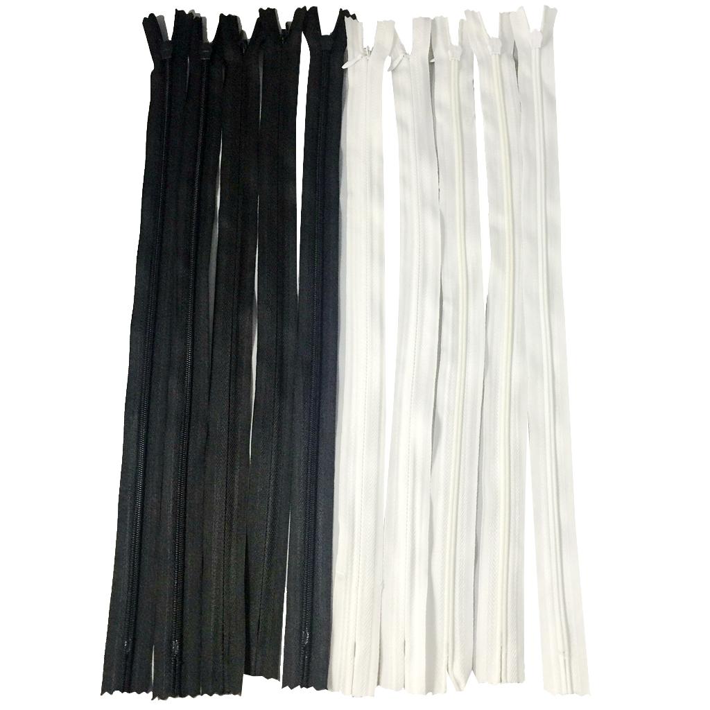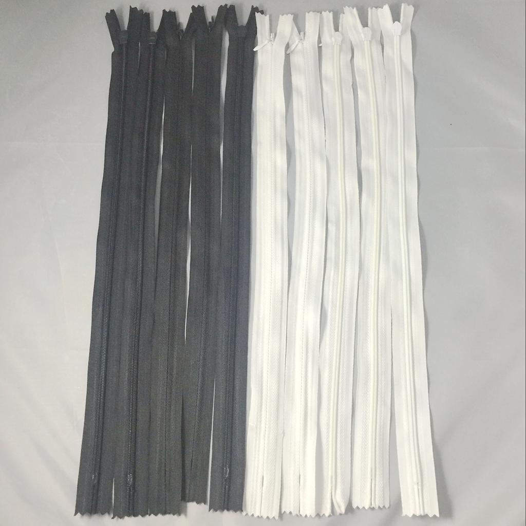 10pcs 40cm Black and white high quality invisible nylon zippers in new condition
